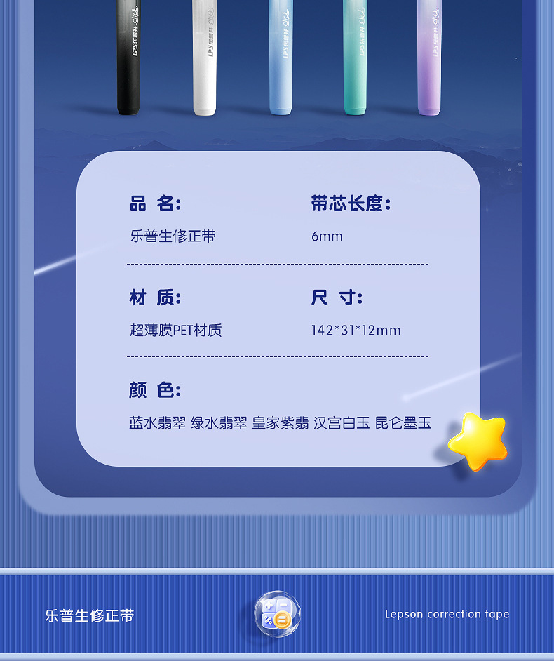 LePasheng 학생을위한 펜 보정 테이프 휴대용 교체 가능한 코어 보정 테이프 높은 색상 값 보정 테이프