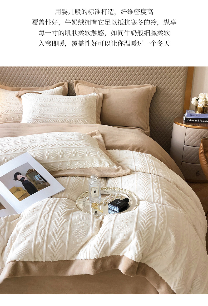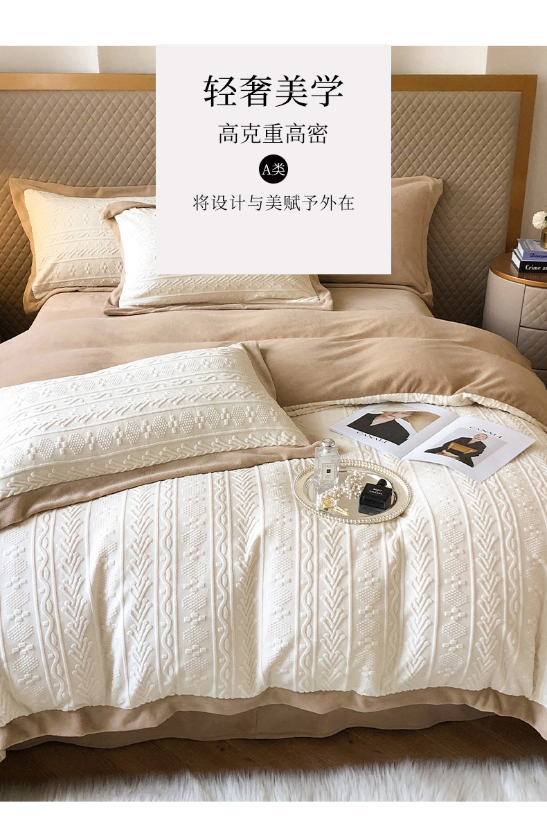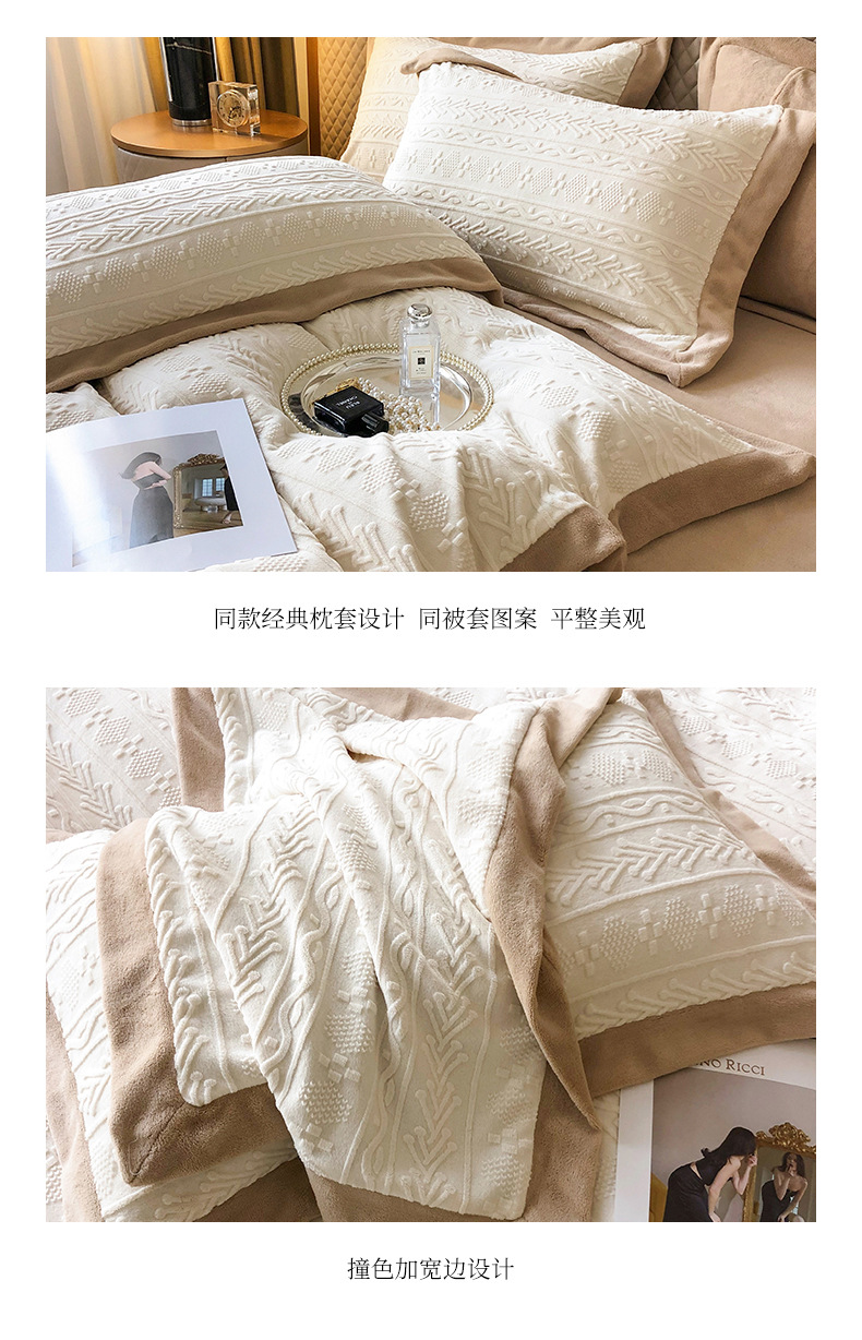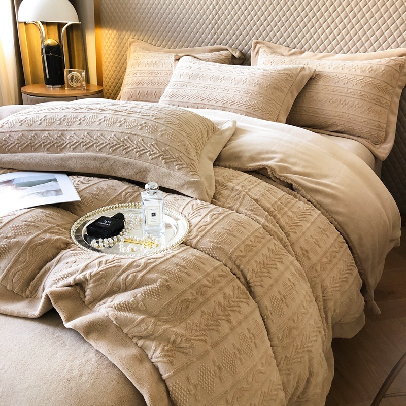 A 급 새로운 모성 및 유아용 밀크 벨벳 조각 부드러운 피부 친화적 인 4 피스 산호 벨벳 퀼트 커버 두꺼운 기숙사
