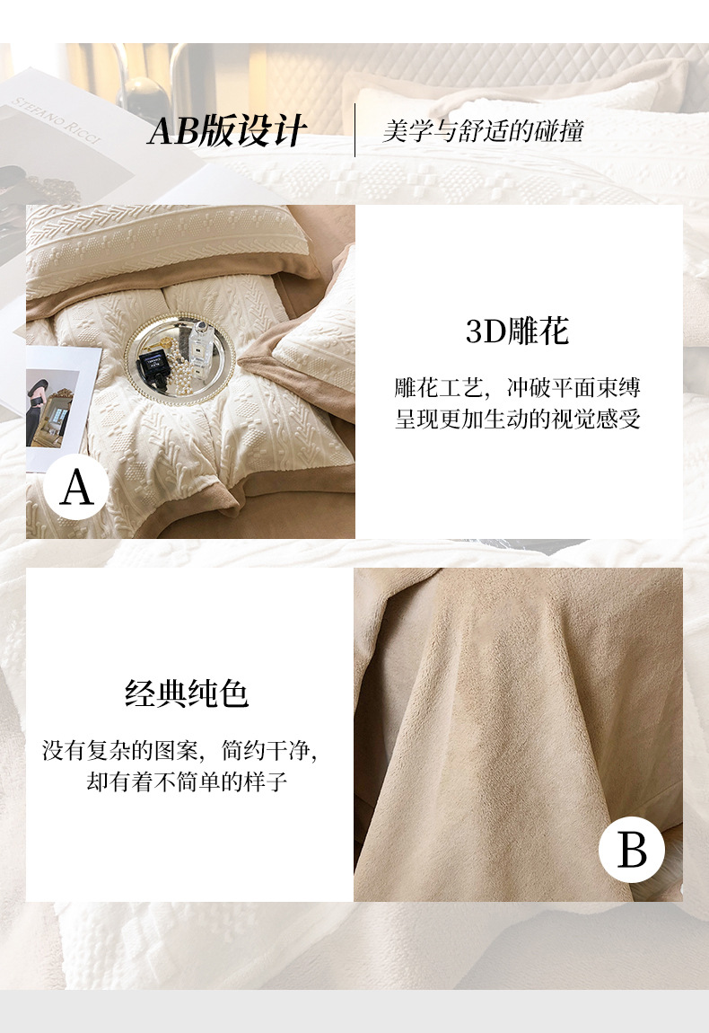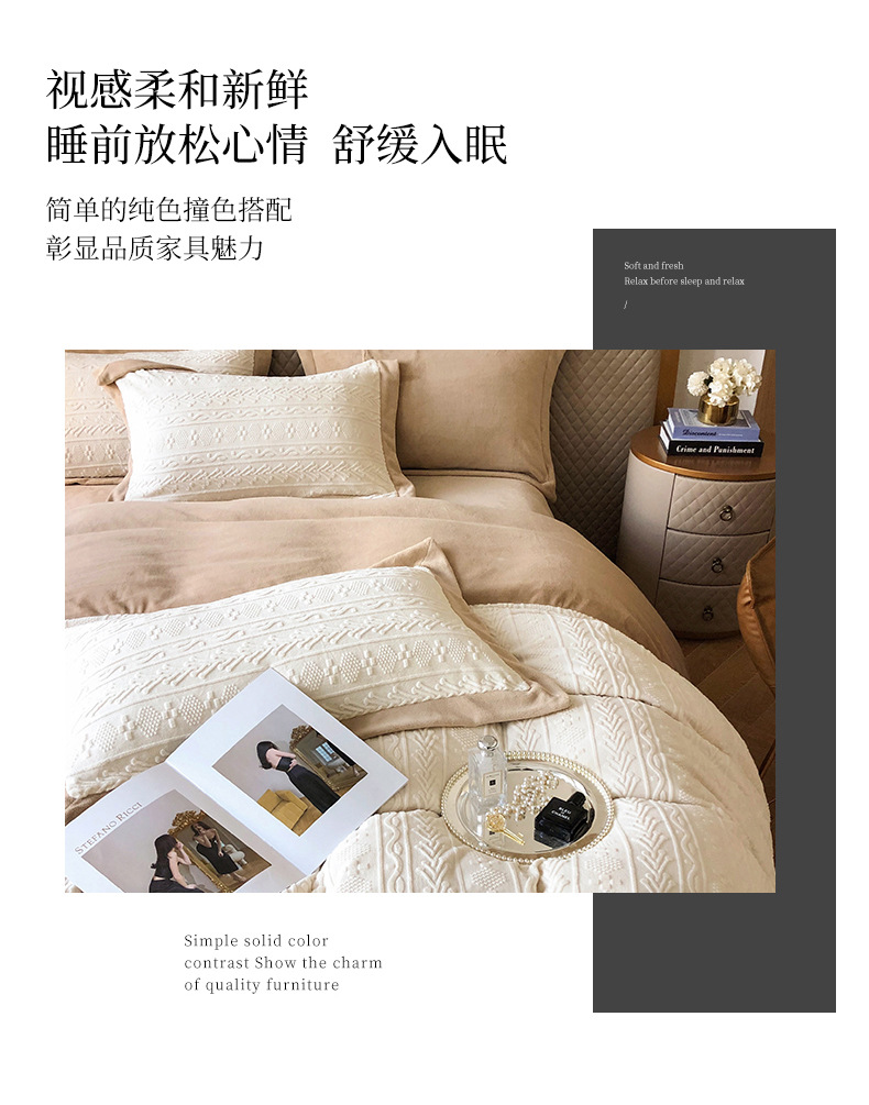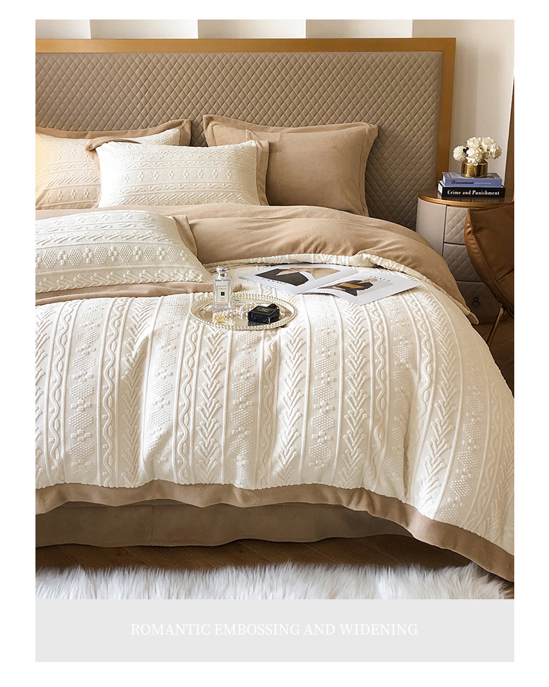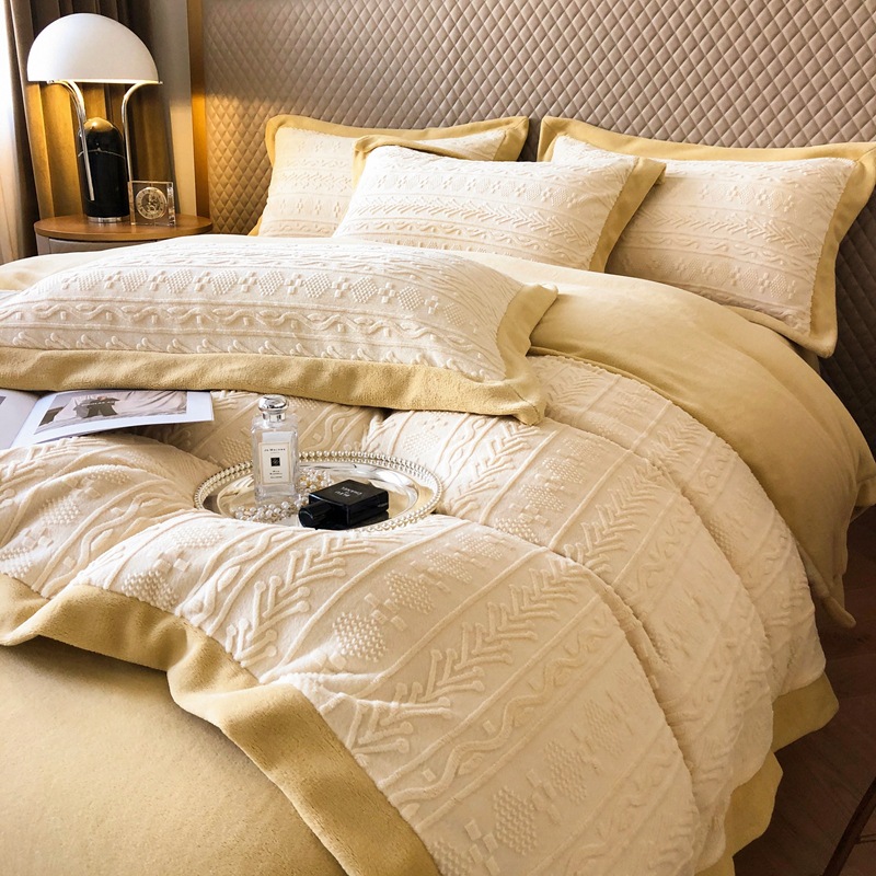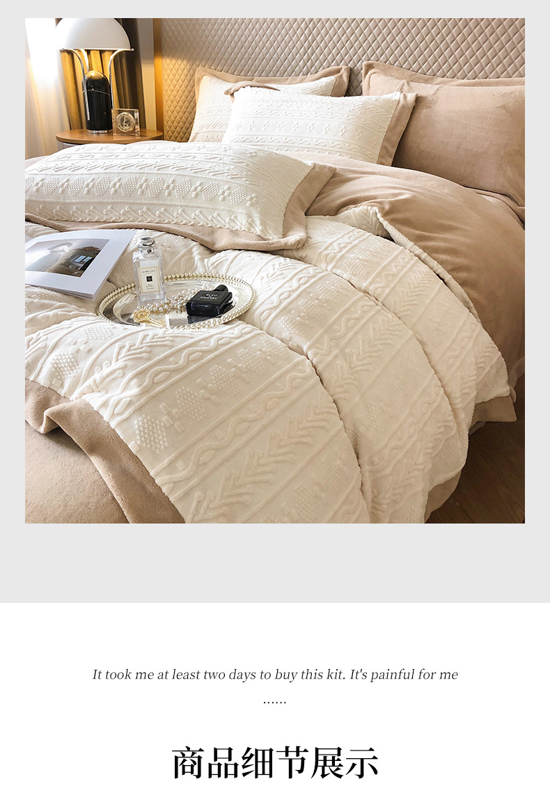A 급 새로운 모성 및 유아용 밀크 벨벳 조각 부드러운 피부 친화적 인 4 피스 산호 벨벳 퀼트 커버 두꺼운 기숙사