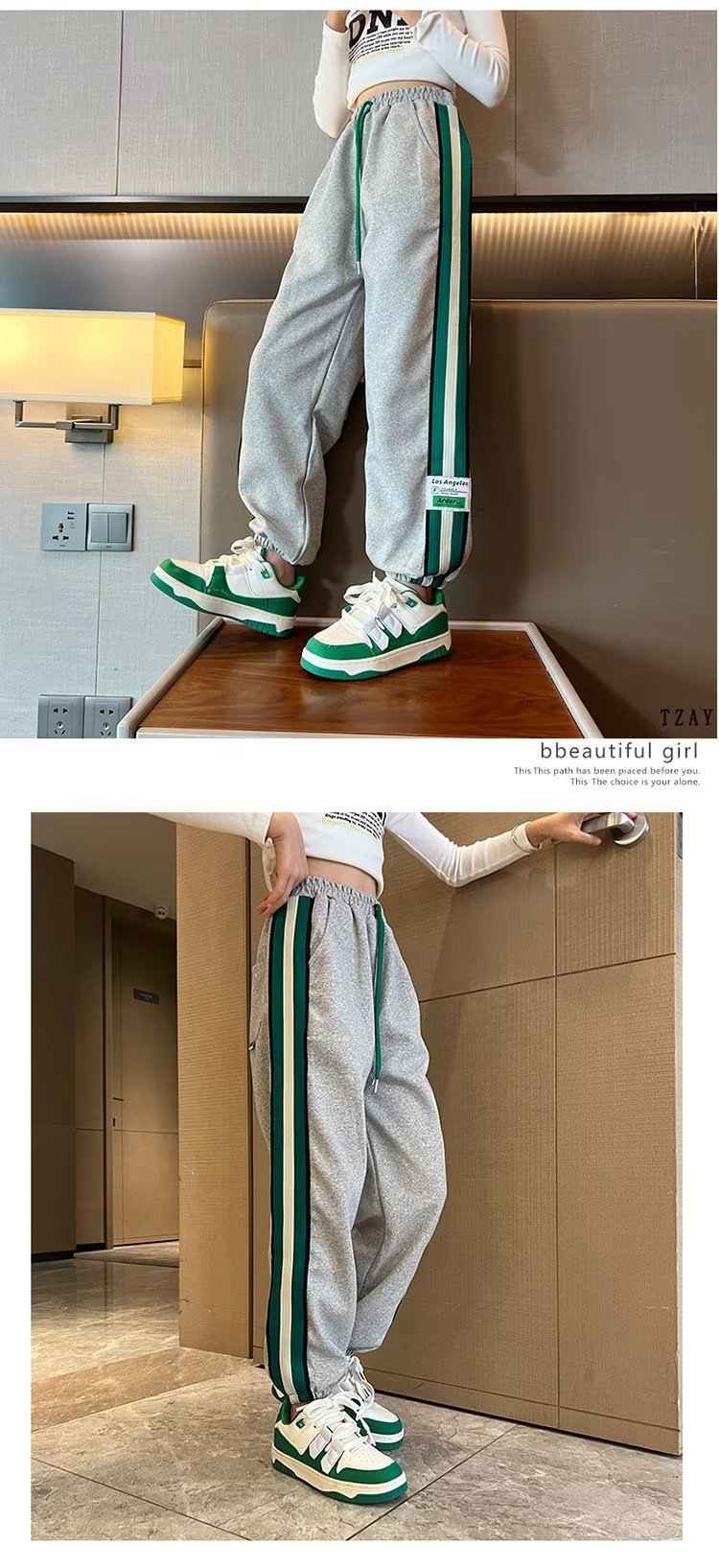 소녀 바지 가을과 겨울 기모 인터넷 인기있는 바지 2024 새로운 대형 어린이 두꺼운 소녀 서양식 캐주얼 바지 트렌디