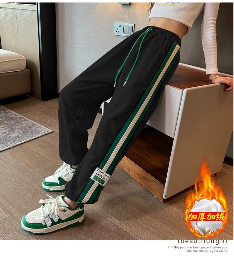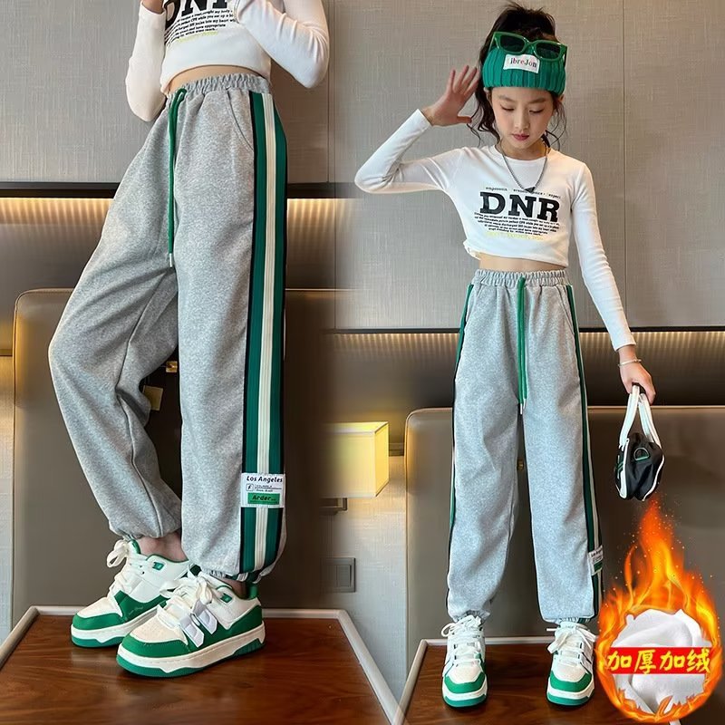 소녀 바지 가을과 겨울 기모 인터넷 인기있는 바지 2024 새로운 대형 어린이 두꺼운 소녀 서양식 캐주얼 바지 트렌디스토어 가기