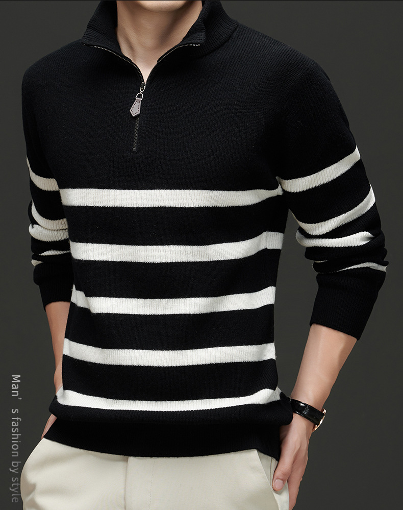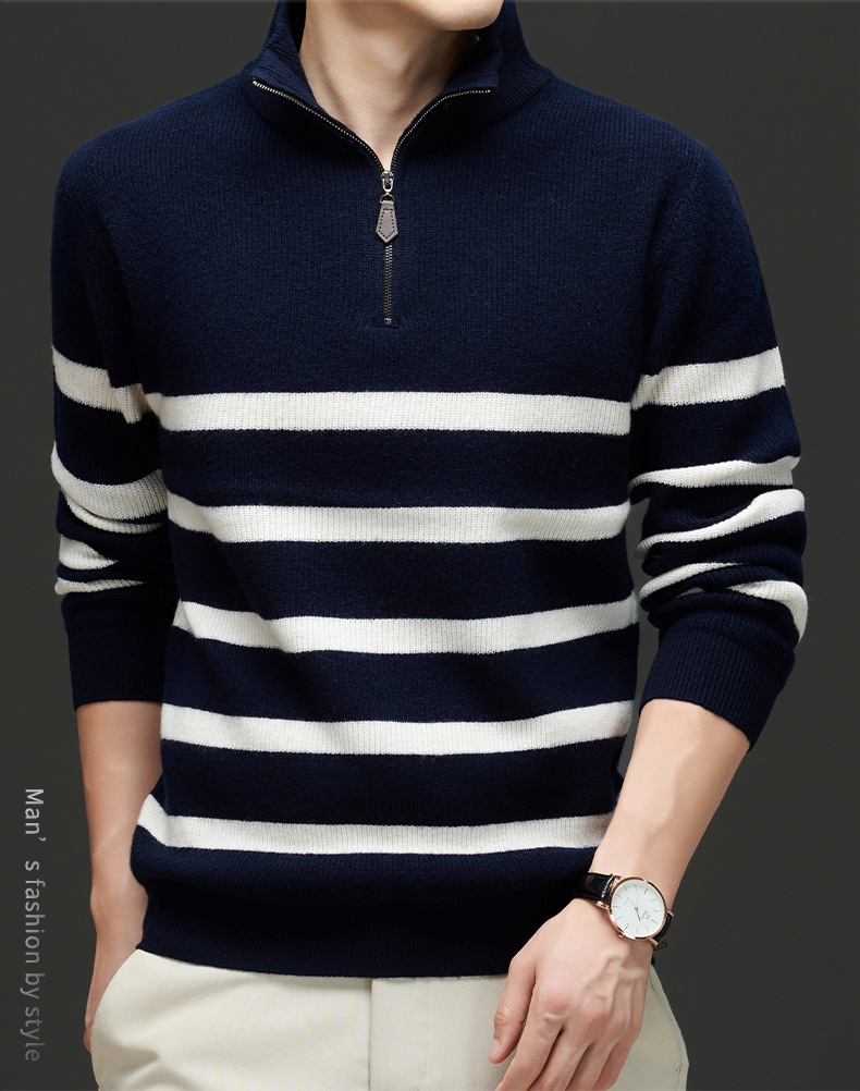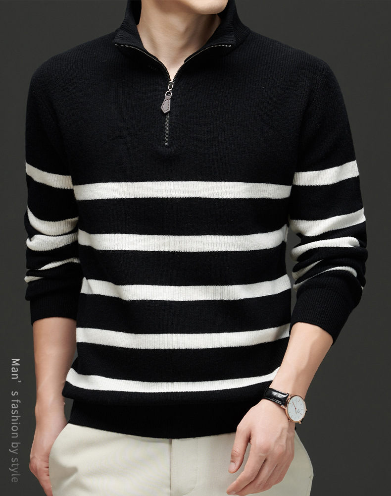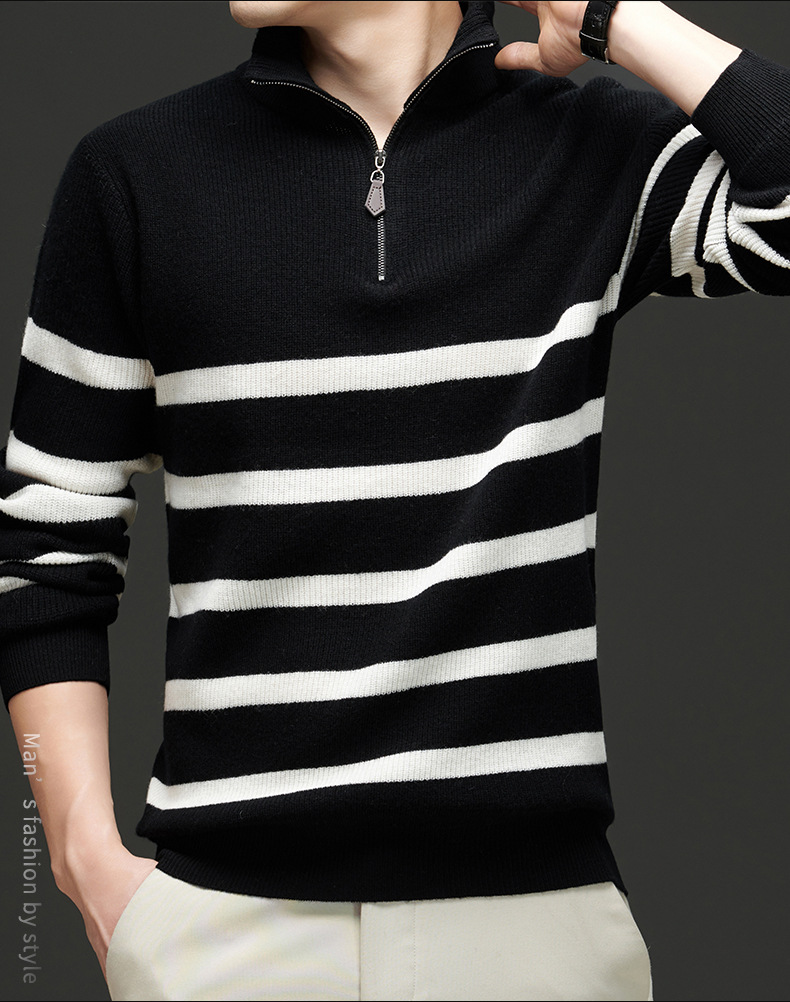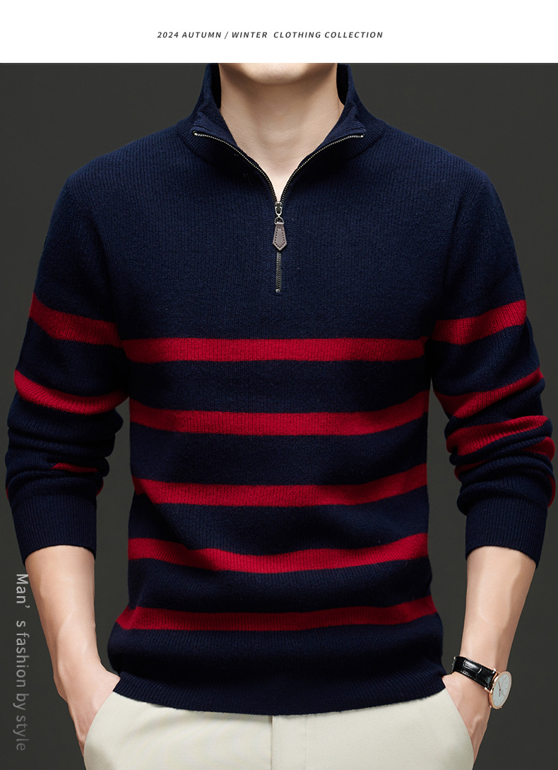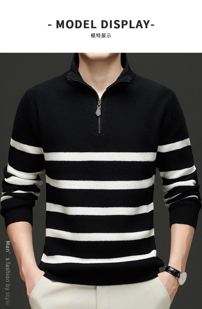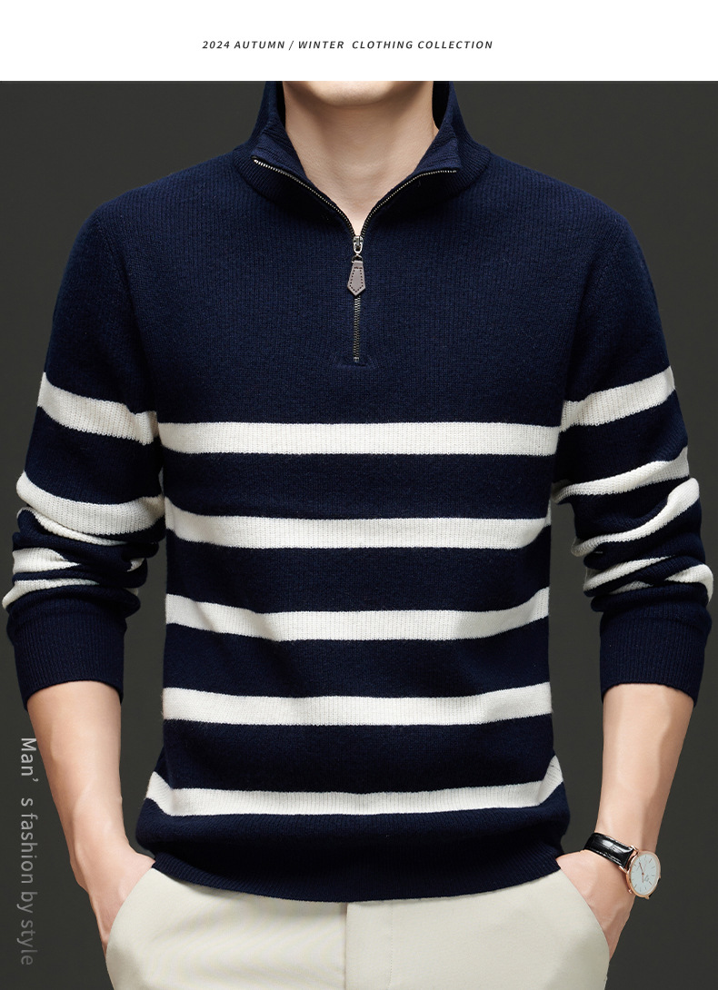 풀오버 하프 지퍼 칼라 남성용 울 스웨터 2024 가을 · 겨울 신영 · 중년 패션 한국식 스트라이프 스웨터