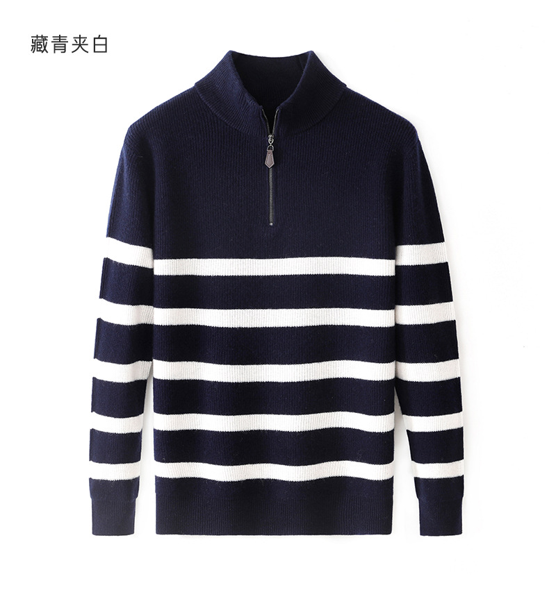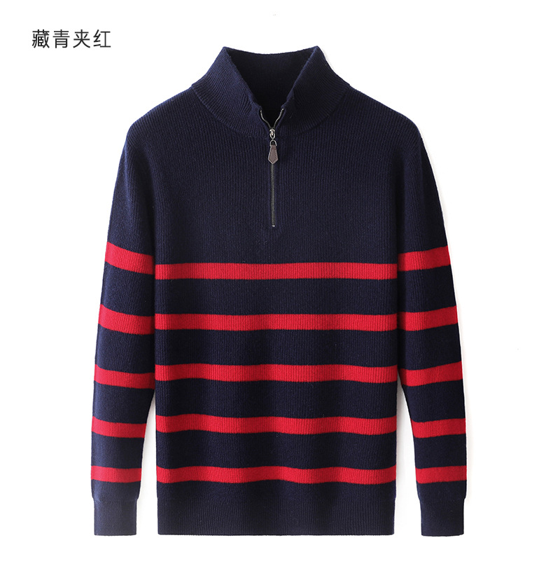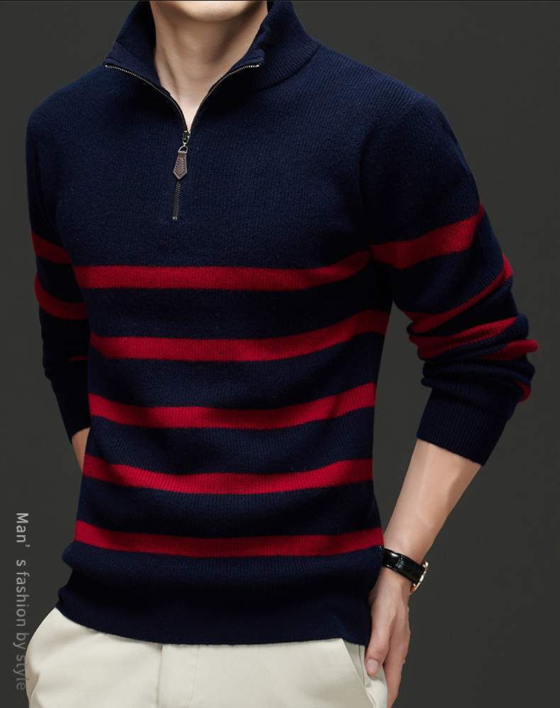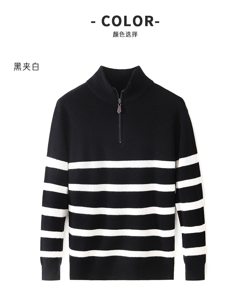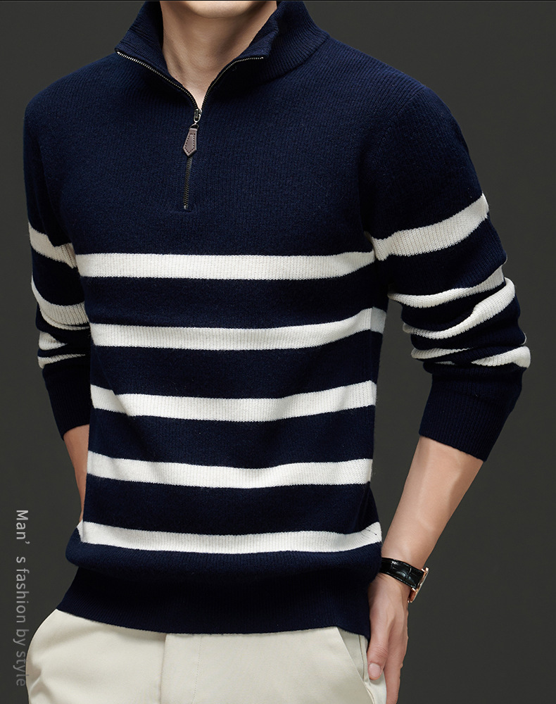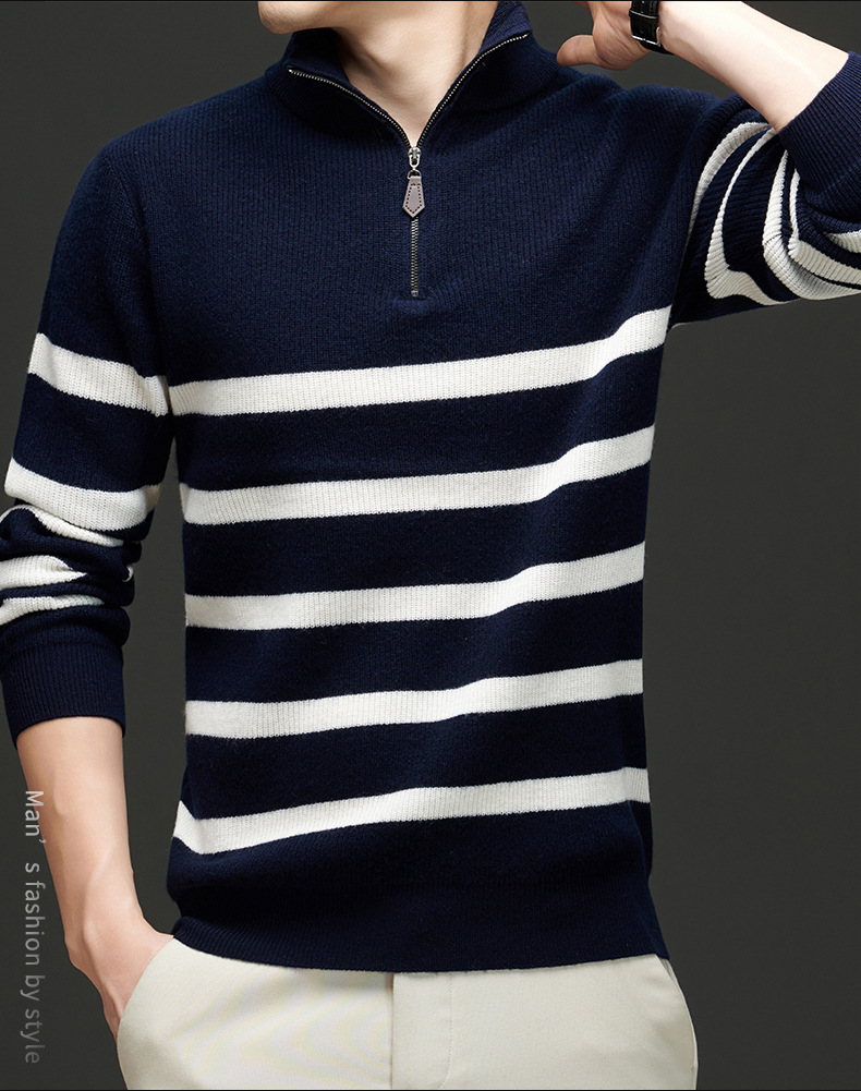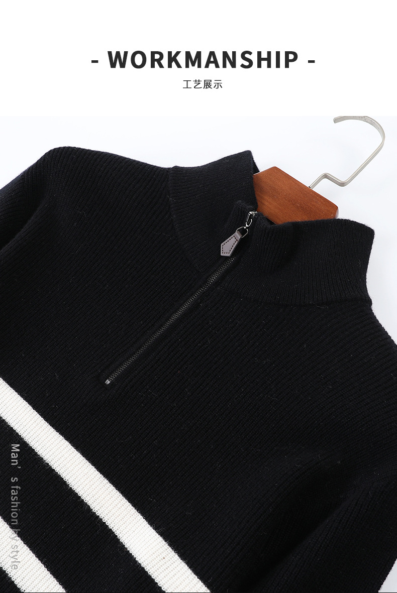 풀오버 하프 지퍼 칼라 남성용 울 스웨터 2024 가을 · 겨울 신영 · 중년 패션 한국식 스트라이프 스웨터