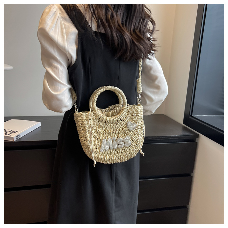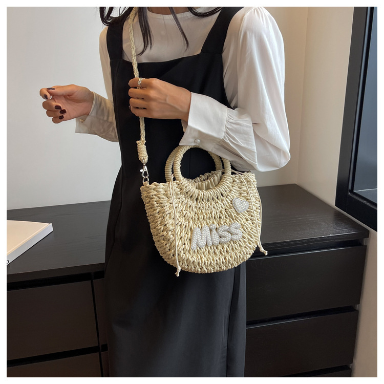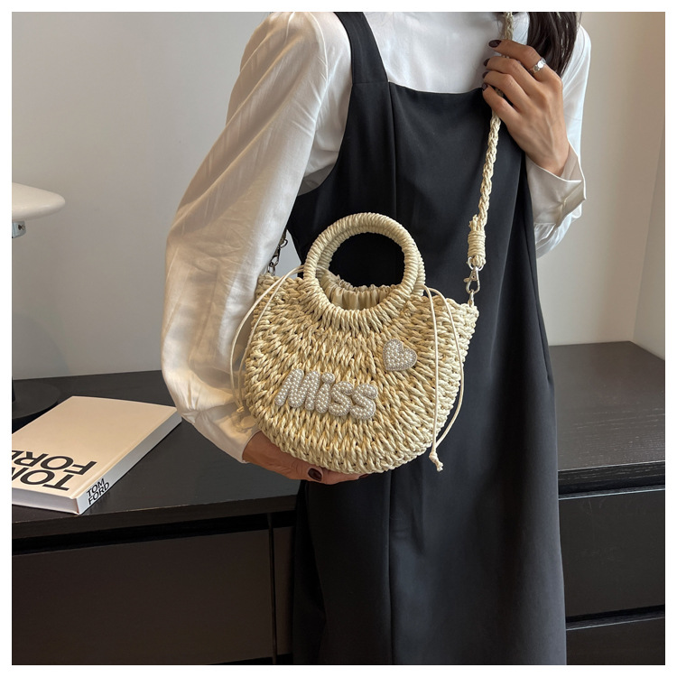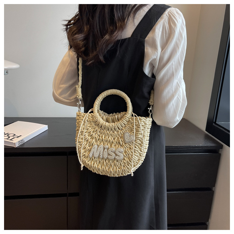 등나무 짠 가방 홀리데이 비치 백 2024 여성 여름 새로운 사이버 축하 짠 가방 밀짚 짠 가방 반원 쉘 핸드백스토어 가기