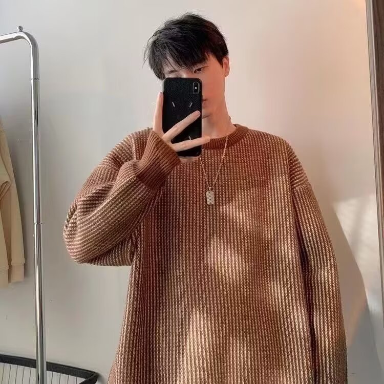 2024 가을과 겨울 줄무늬 크루 넥 스웨터 스웨터 남자 새로운 흑백 패션 레트로 느슨한 올 매치 스웨터 재킷