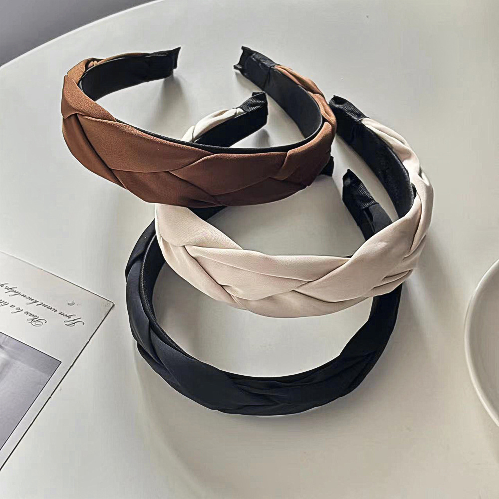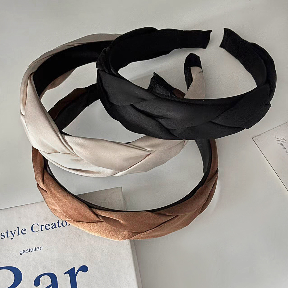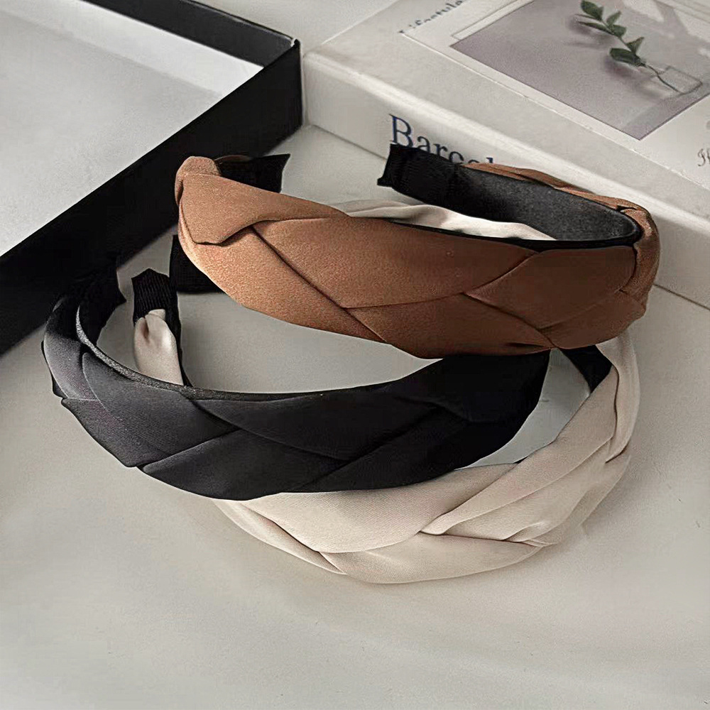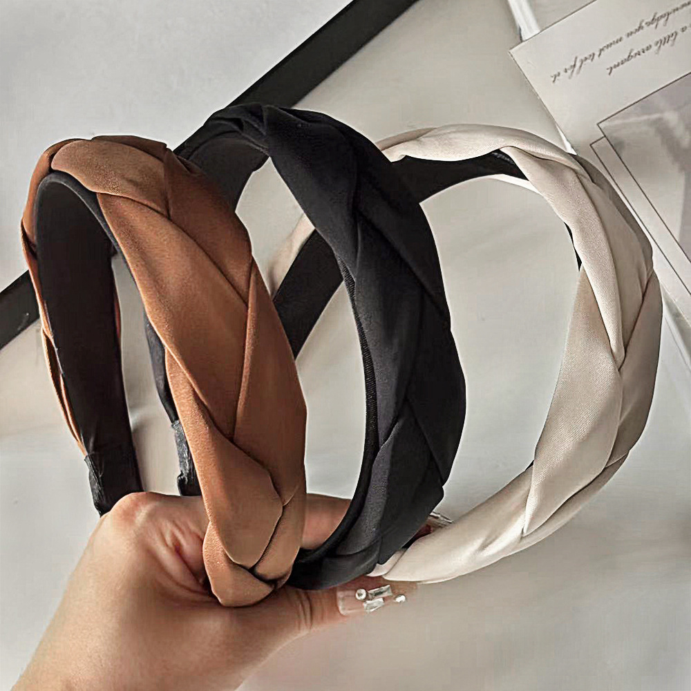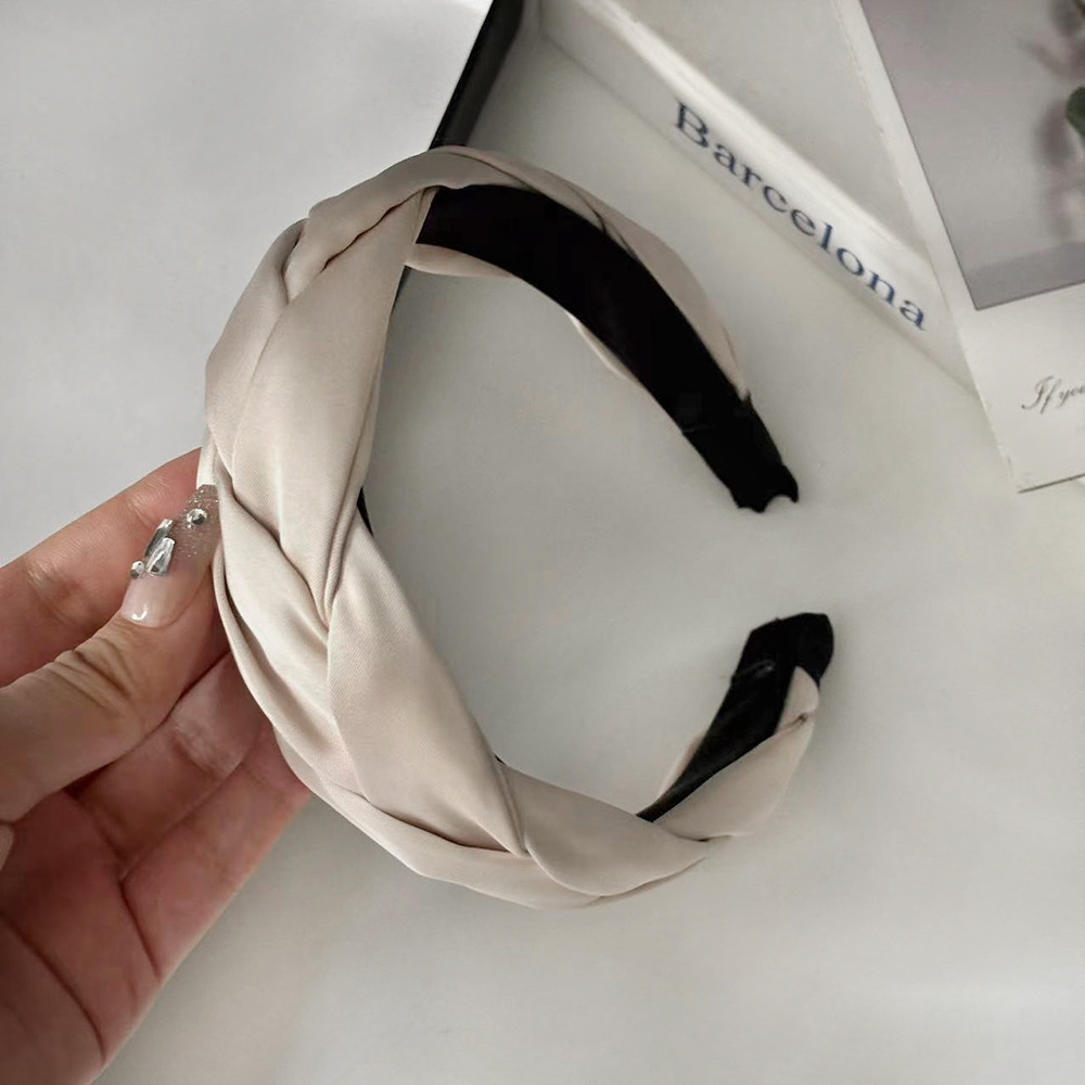 빈티지 프렌치 새틴 짠 머리띠 하이 엔드 심플 올 매치 와이드 브라이트 트위스트 머리띠 하이 크랜엄 뉴 헤어 액세서리
