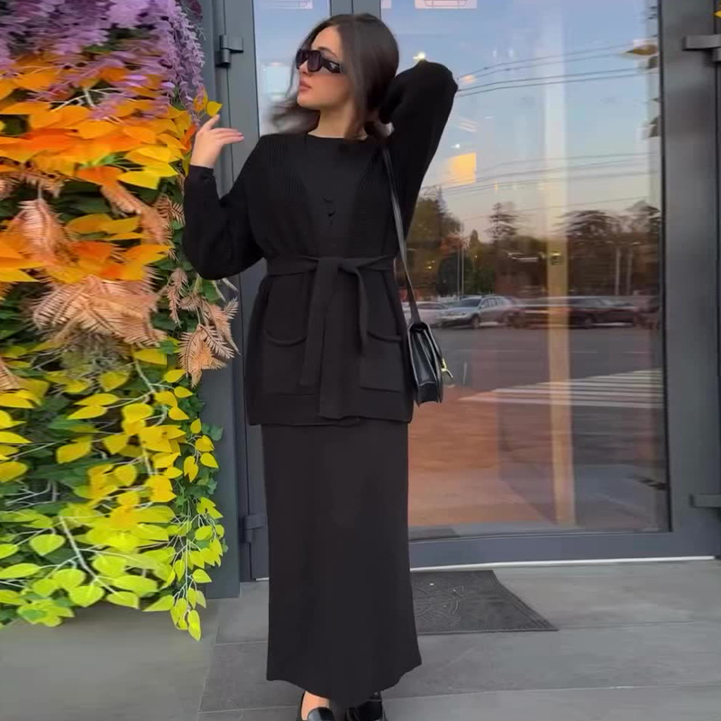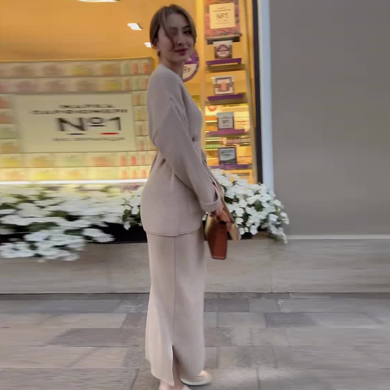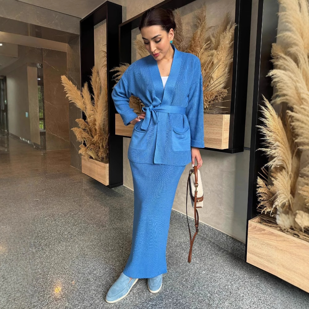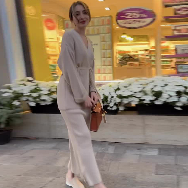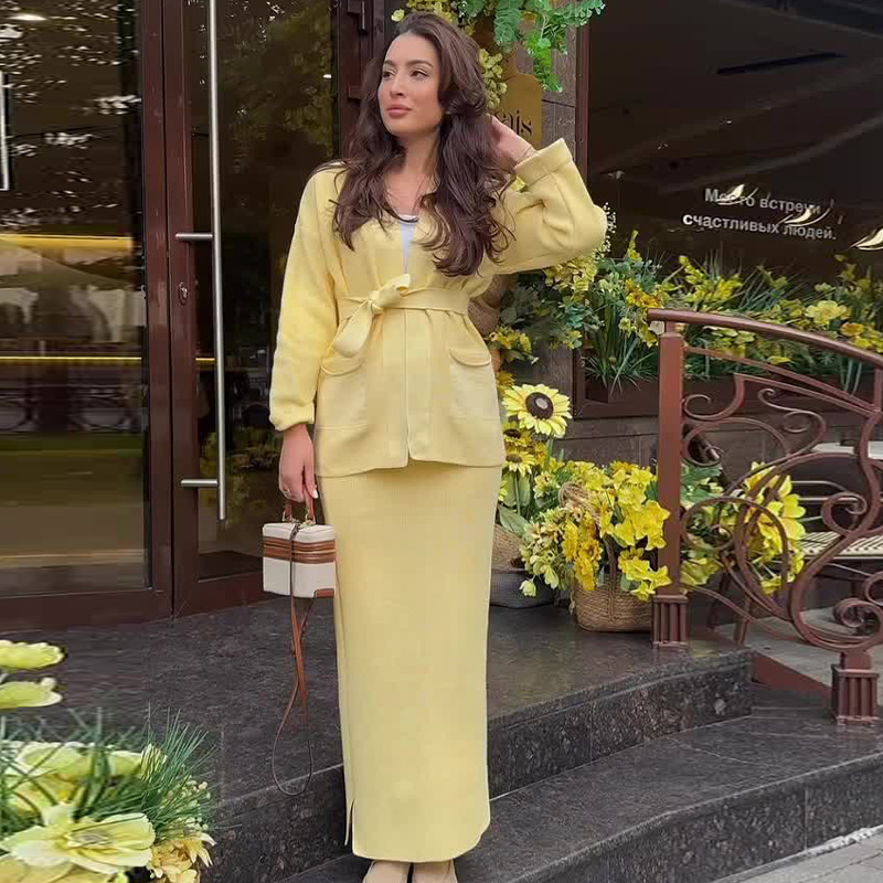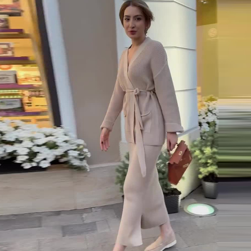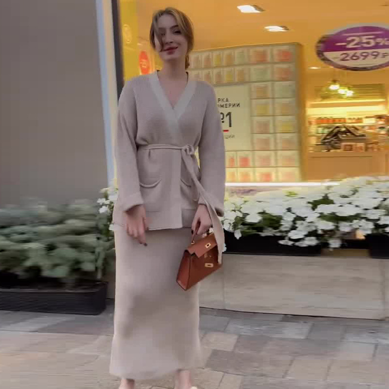 가을 2024 새로운 유럽과 미국의 아마존 국경 여성 단색 우아한 레이스 업 슬림 패션 원피스 투피스 세트스토어 가기