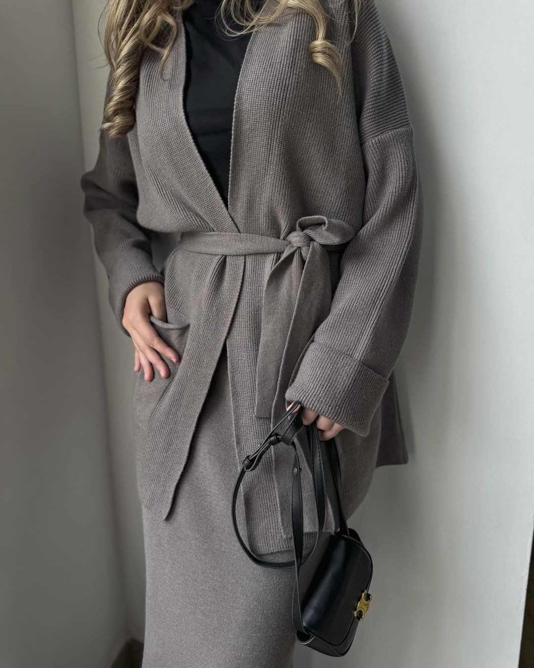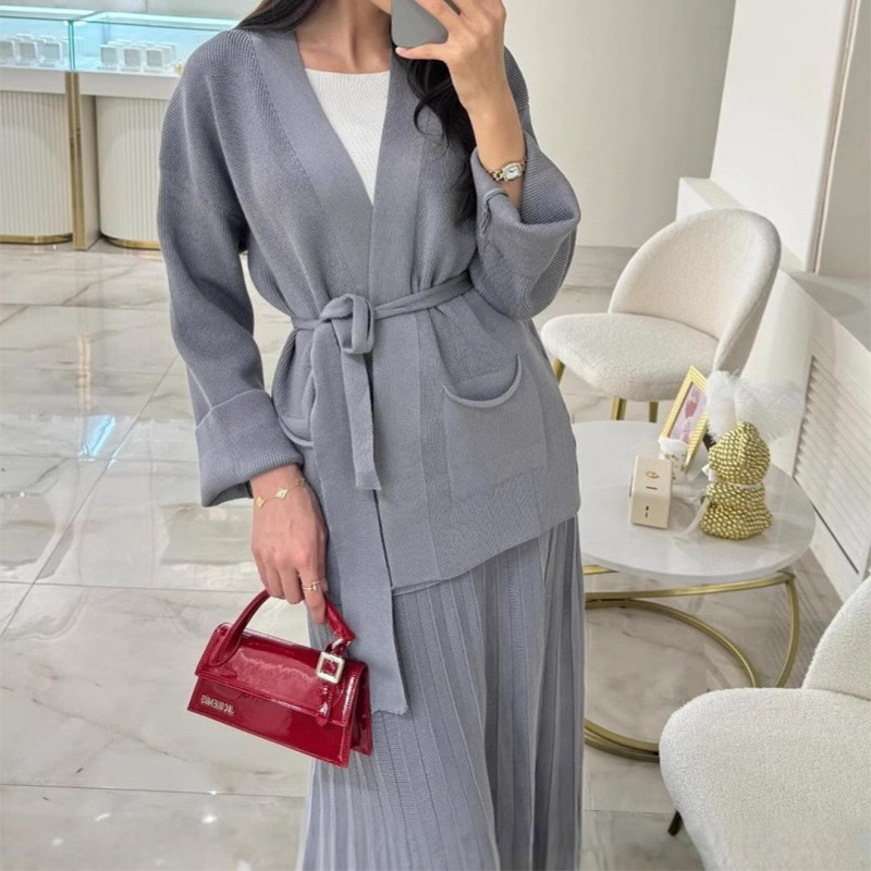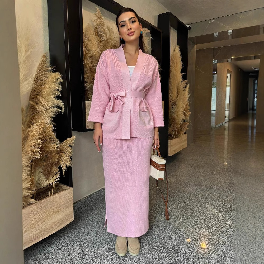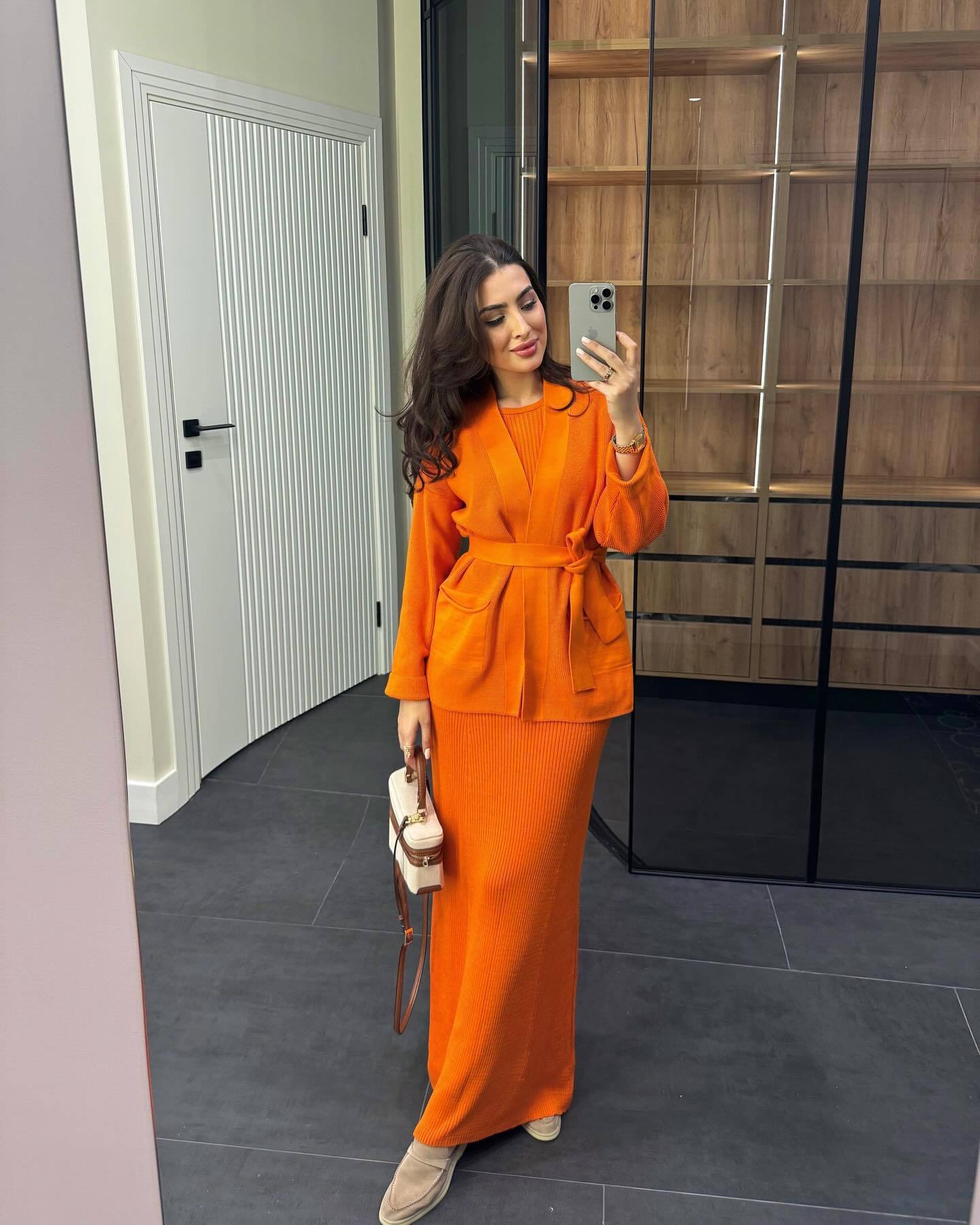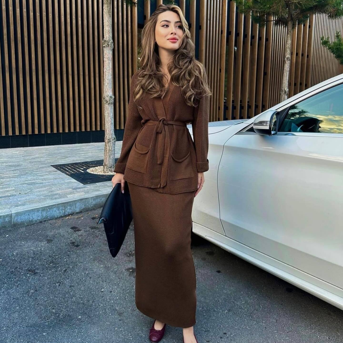 가을 2024 새로운 유럽과 미국의 아마존 국경 여성 단색 우아한 레이스 업 슬림 패션 원피스 투피스 세트스토어 가기