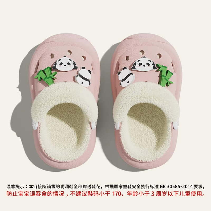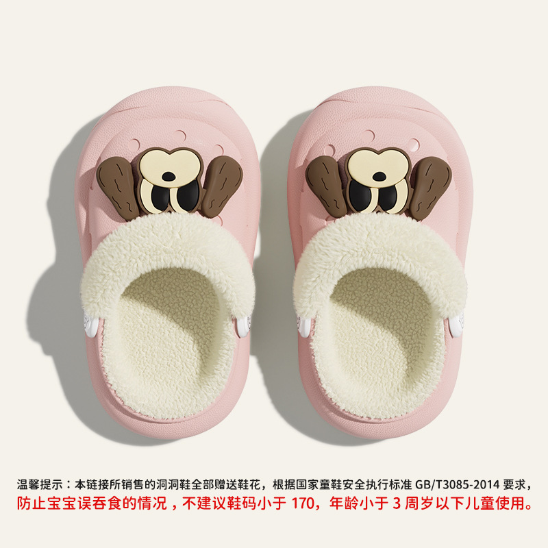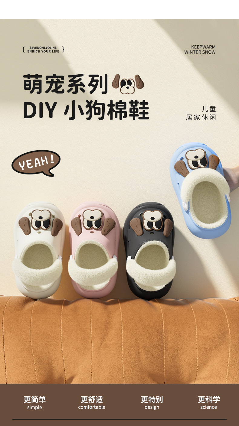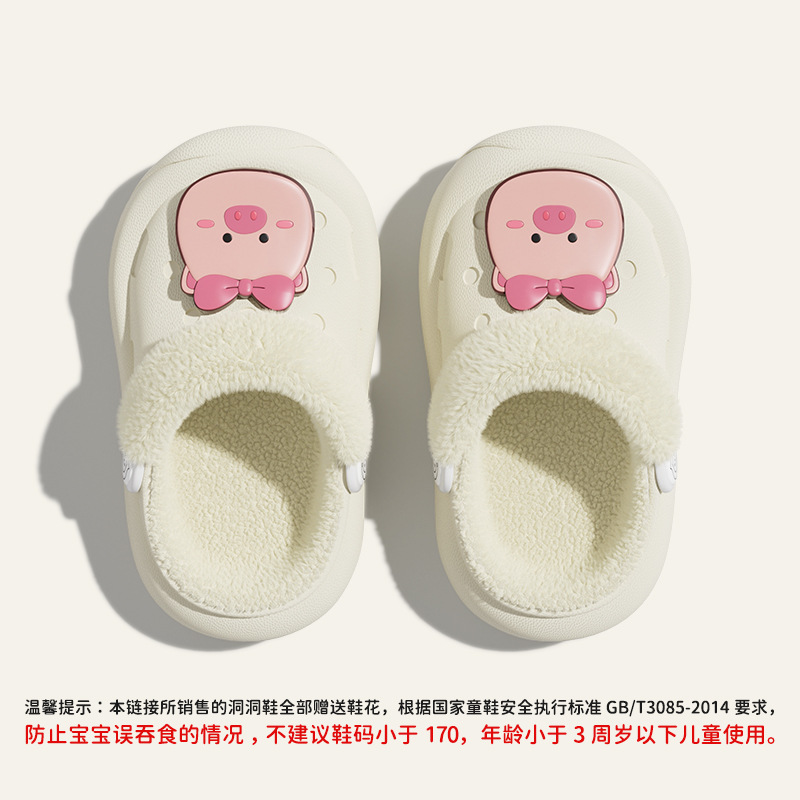 새로운 어린이 스트랩 홀 신발 DIY 만화 신발 꽃 기모 따뜻한 아기 겨울 홈 코튼 슬리퍼