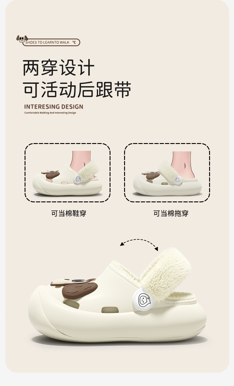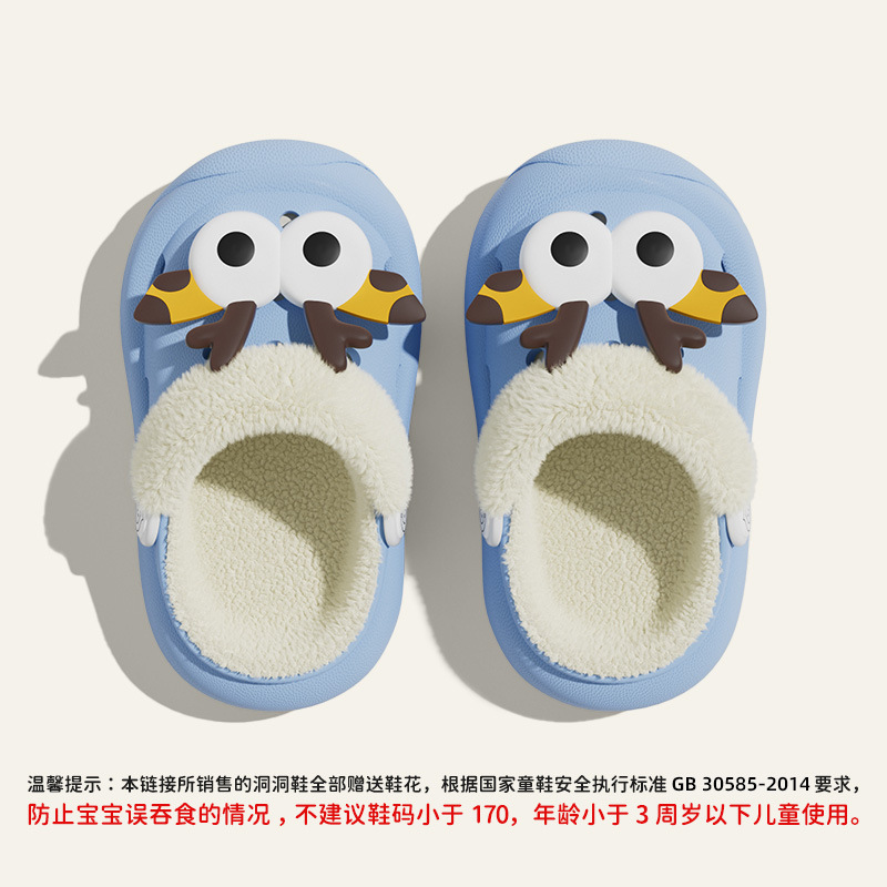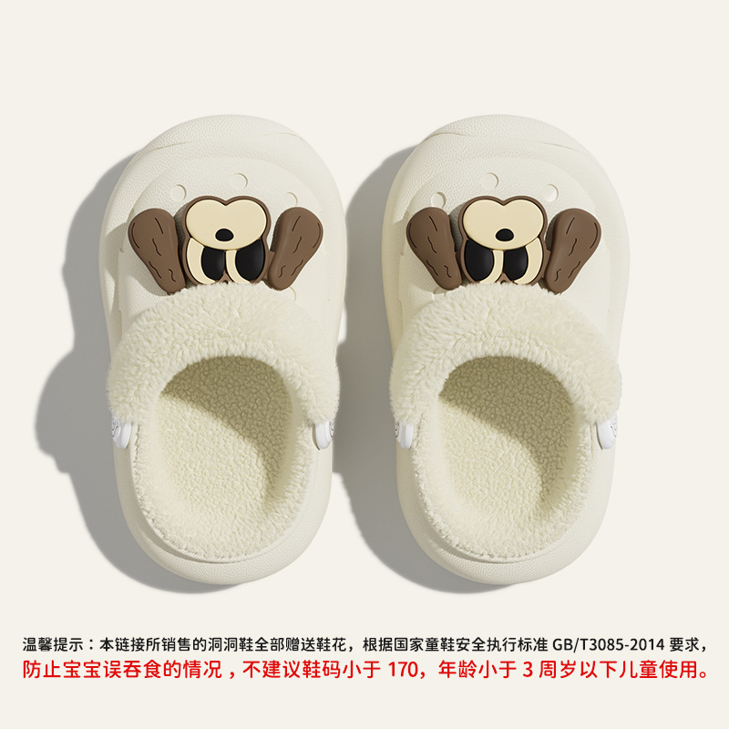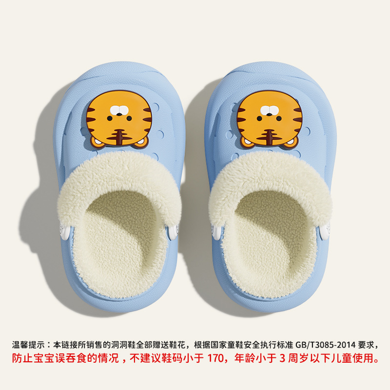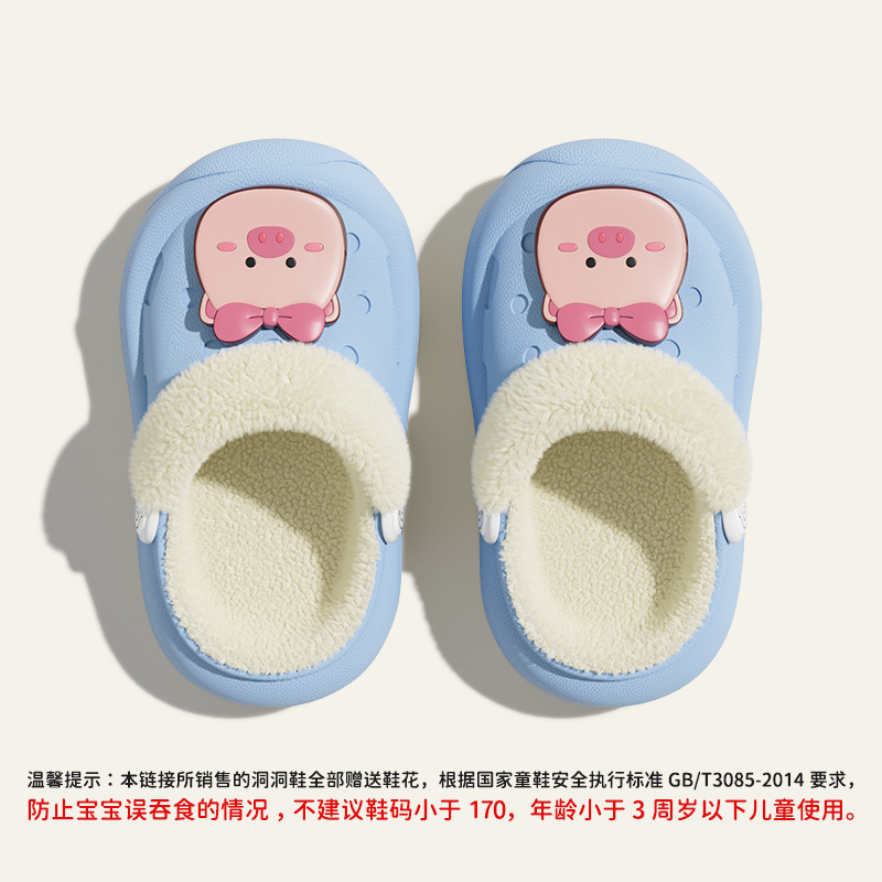 새로운 어린이 스트랩 홀 신발 DIY 만화 신발 꽃 기모 따뜻한 아기 겨울 홈 코튼 슬리퍼
