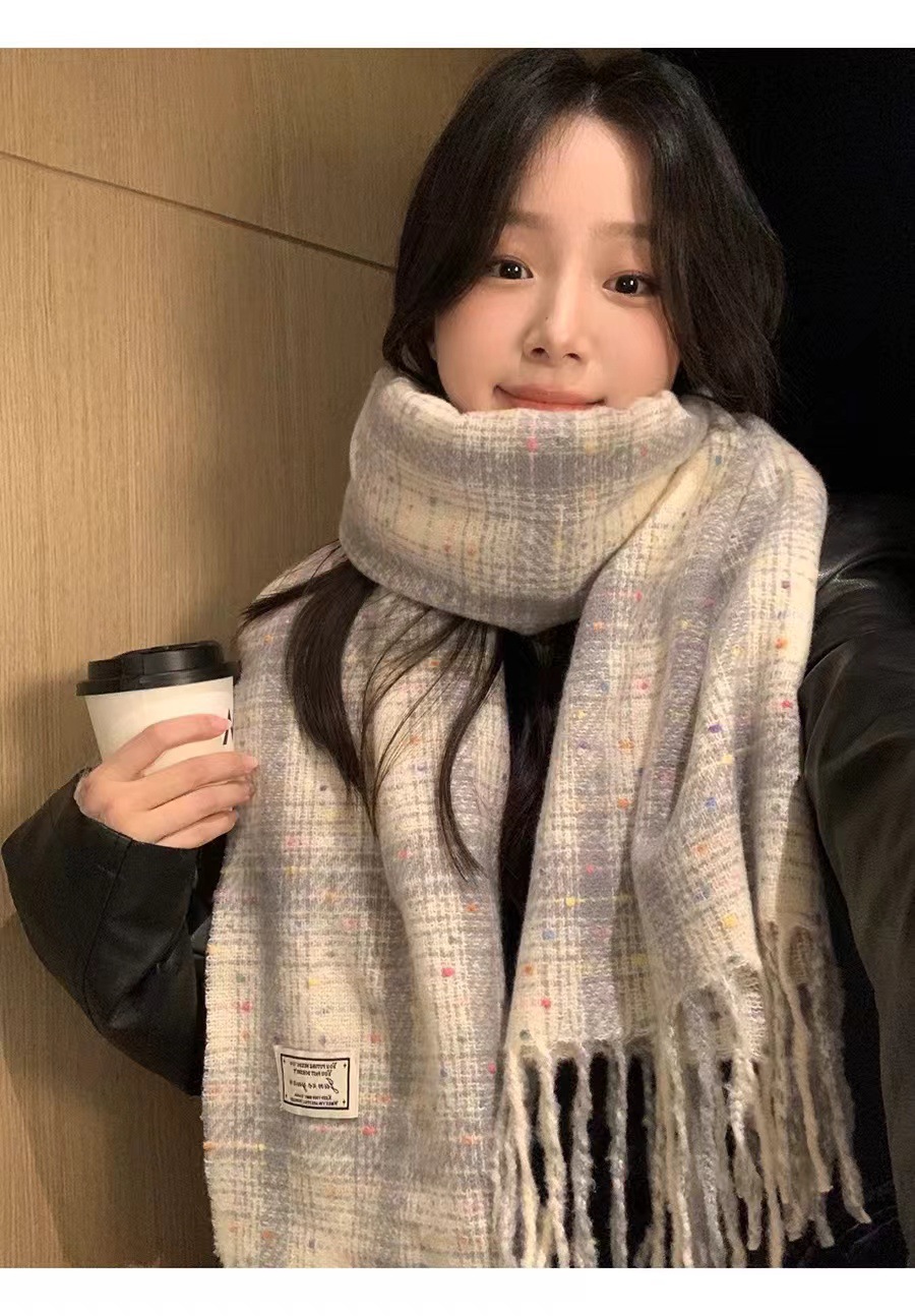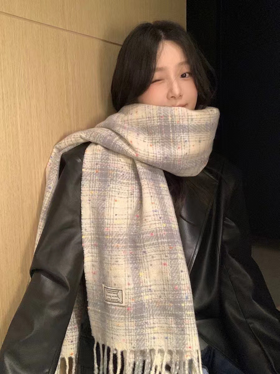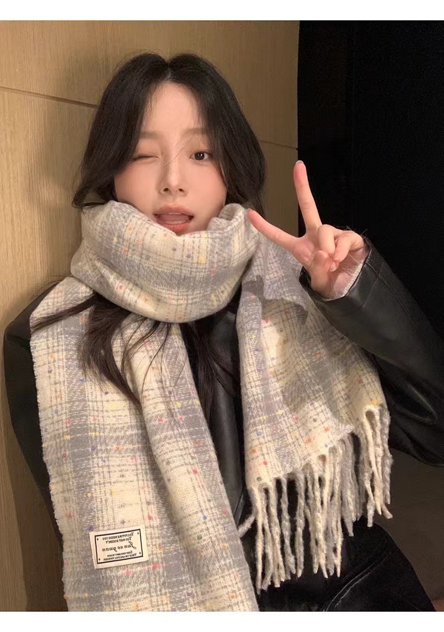 한국 스타일 격자 무늬 컬러 설탕 콩 스카프 여성 겨울 달콤한 2024 새로운 도착 학생 커플의 올 매치 따뜻한 목 패션스토어 가기