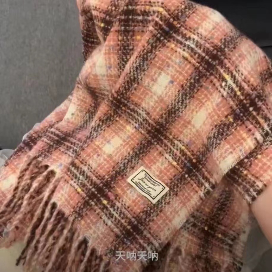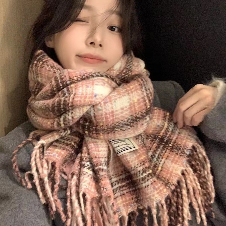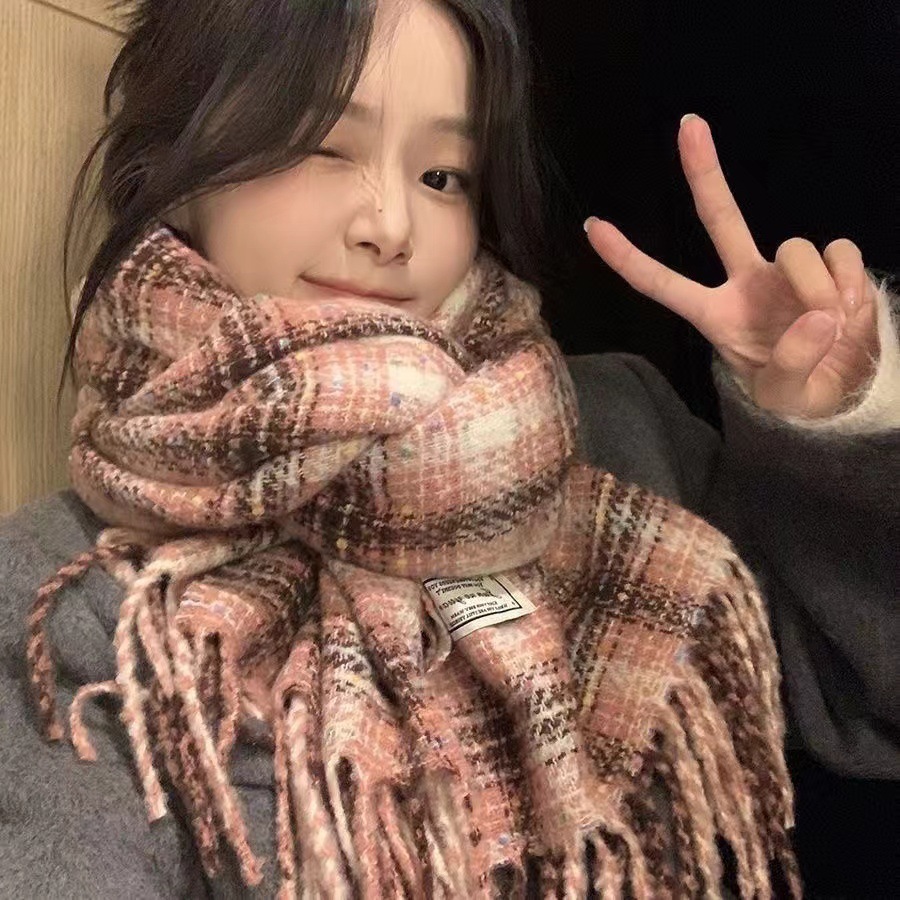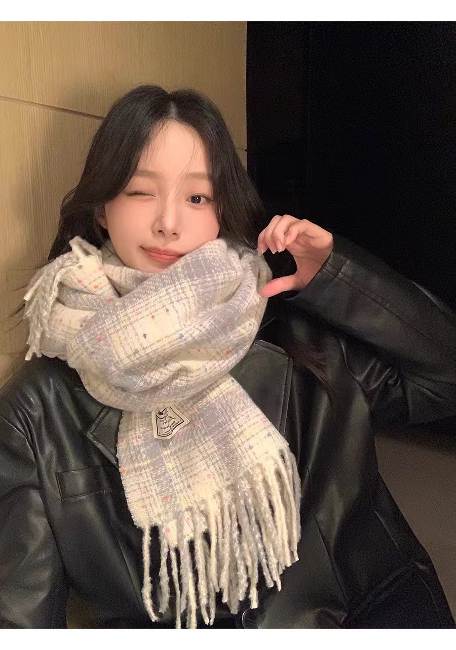 한국 스타일 격자 무늬 컬러 설탕 콩 스카프 여성 겨울 달콤한 2024 새로운 도착 학생 커플의 올 매치 따뜻한 목 패션스토어 가기