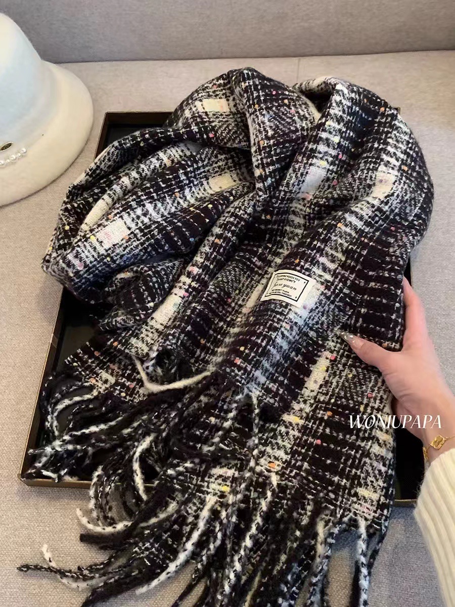 한국 스타일 격자 무늬 컬러 설탕 콩 스카프 여성 겨울 달콤한 2024 새로운 도착 학생 커플의 올 매치 따뜻한 목 패션