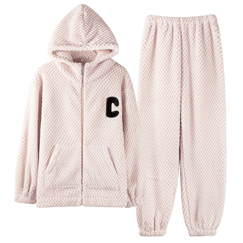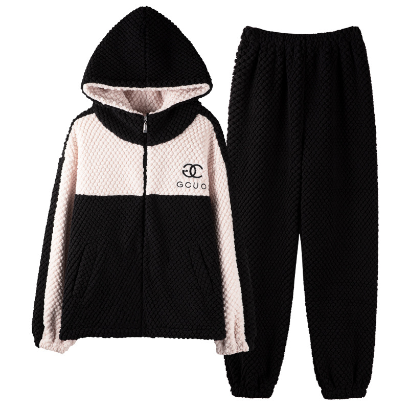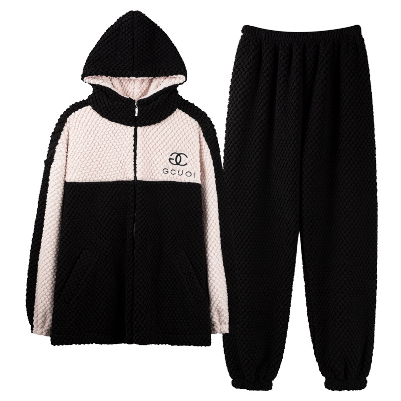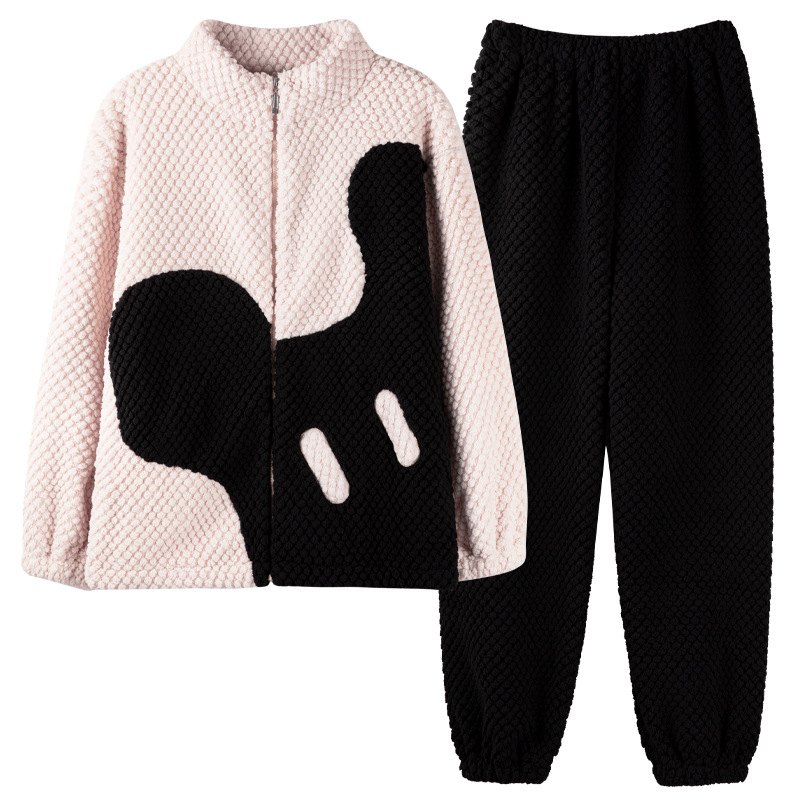 [복지 따뜻한 벨벳] 가을과 겨울 산호 벨벳 커플 잠옷 여성 따뜻한 두꺼운 남자 가벼운 스포츠 세트