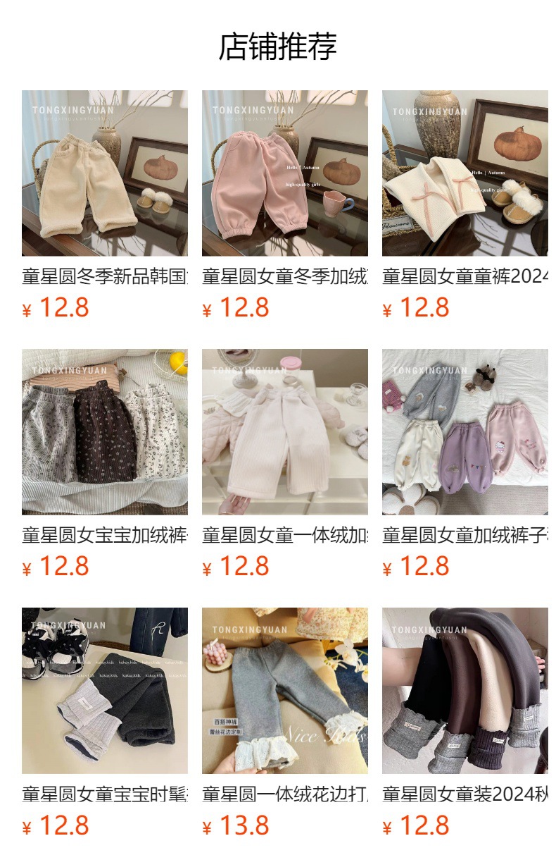 Tong Xingyuan 2024 가을과 겨울 여성 아동복 기모 두꺼운 패션 올 매치 레깅스 아기 소녀의 바지스토어 가기