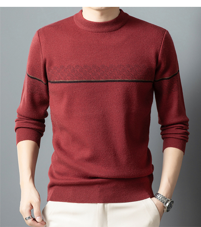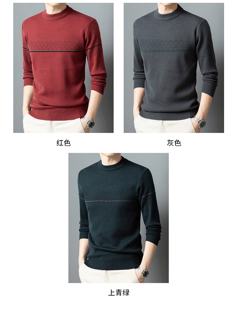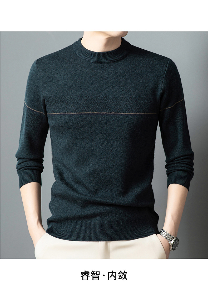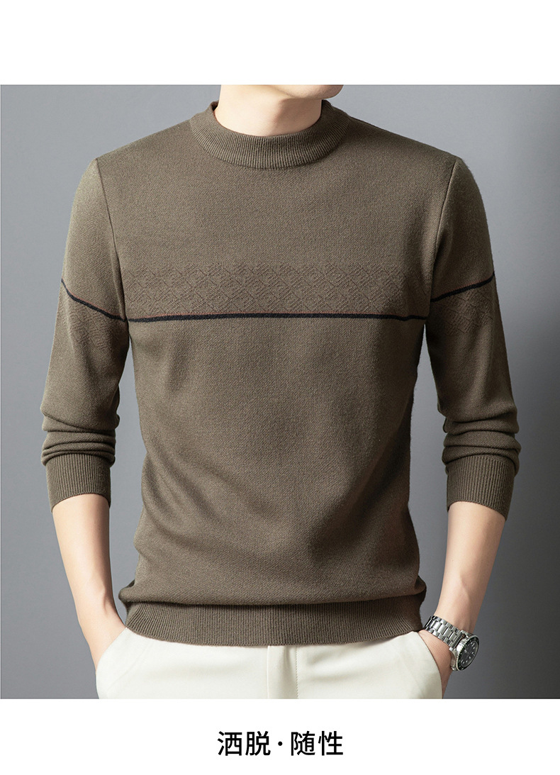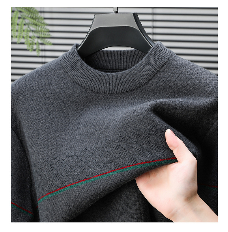 남자 하이 엔드 라운드 넥 가을과 겨울 기모 두꺼운 자카드 니트 스웨터 슬림 핏 올 매치 영 및 중년 피부 친화적 인 웜 키핑스토어 가기