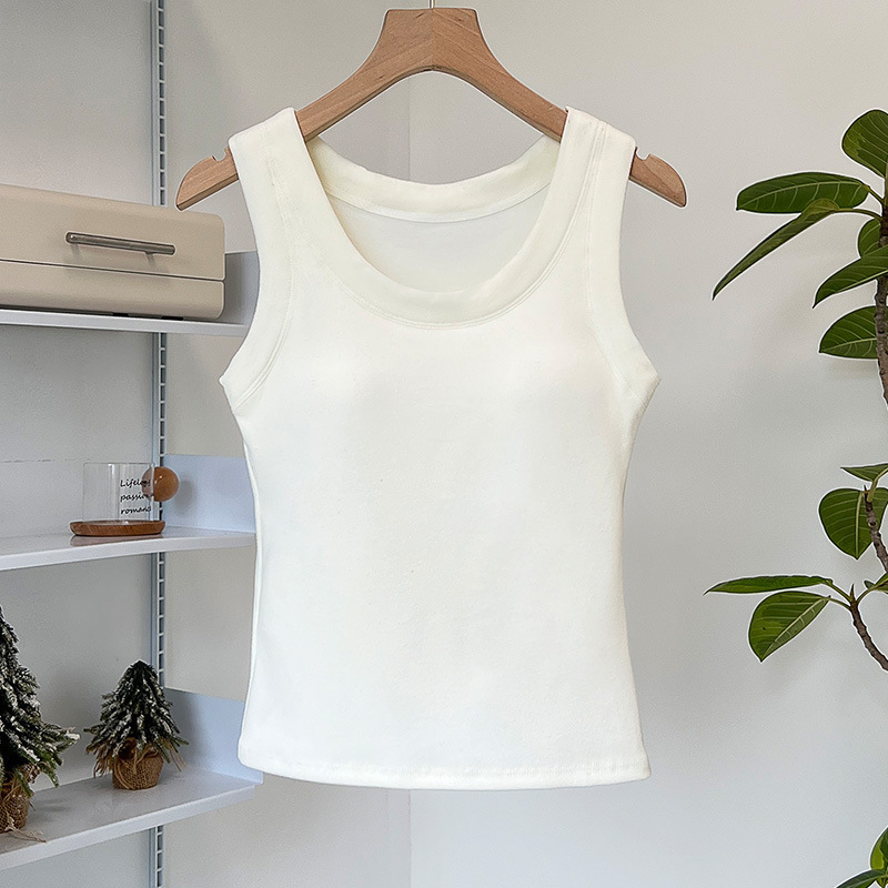 가을과 겨울 따뜻한 조끼 내부 슬리밍 탑 가슴 패드와 함께 높은 탄성 라운드 넥베이스 셔츠스토어 가기