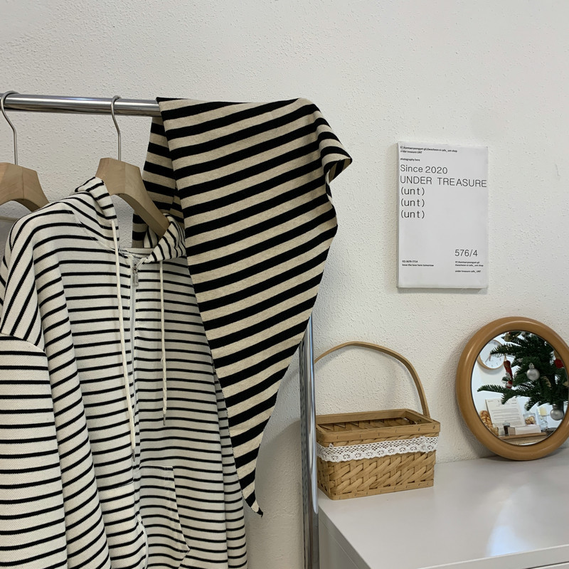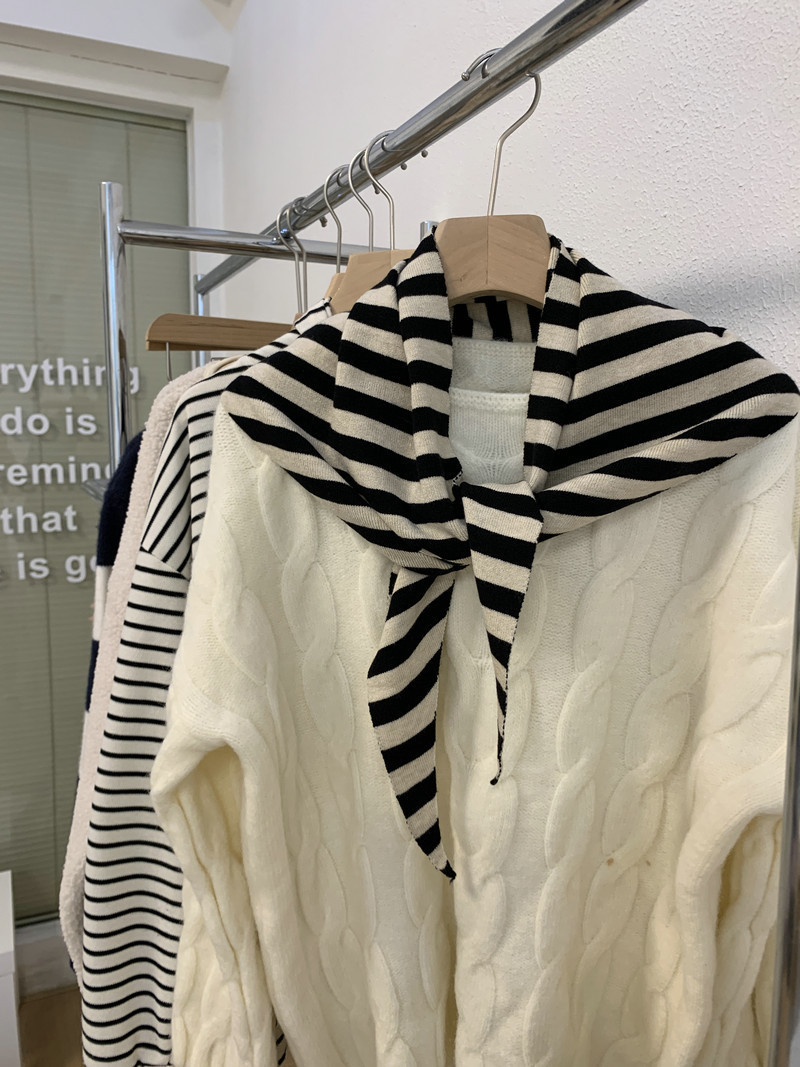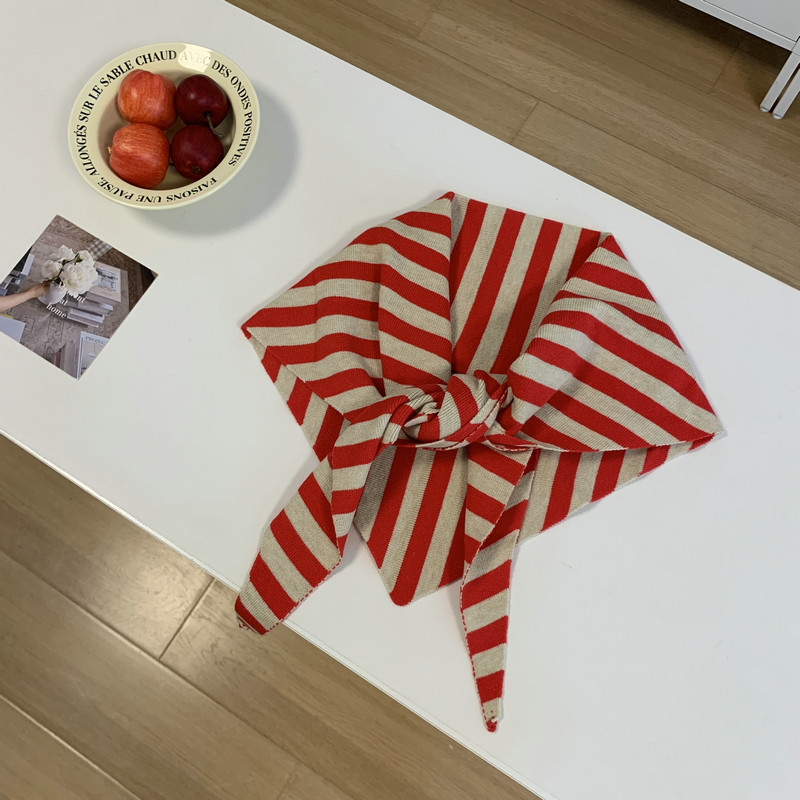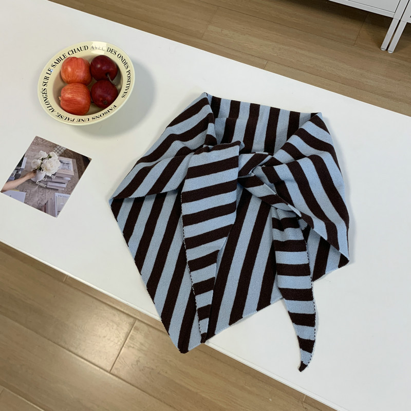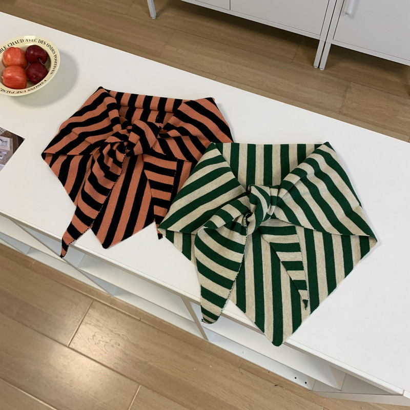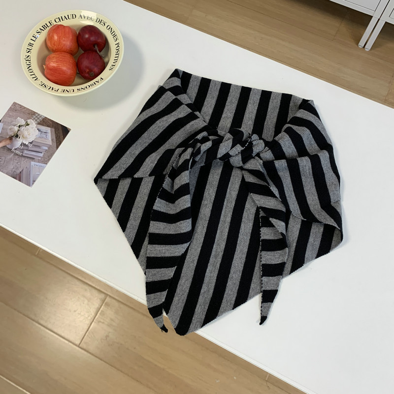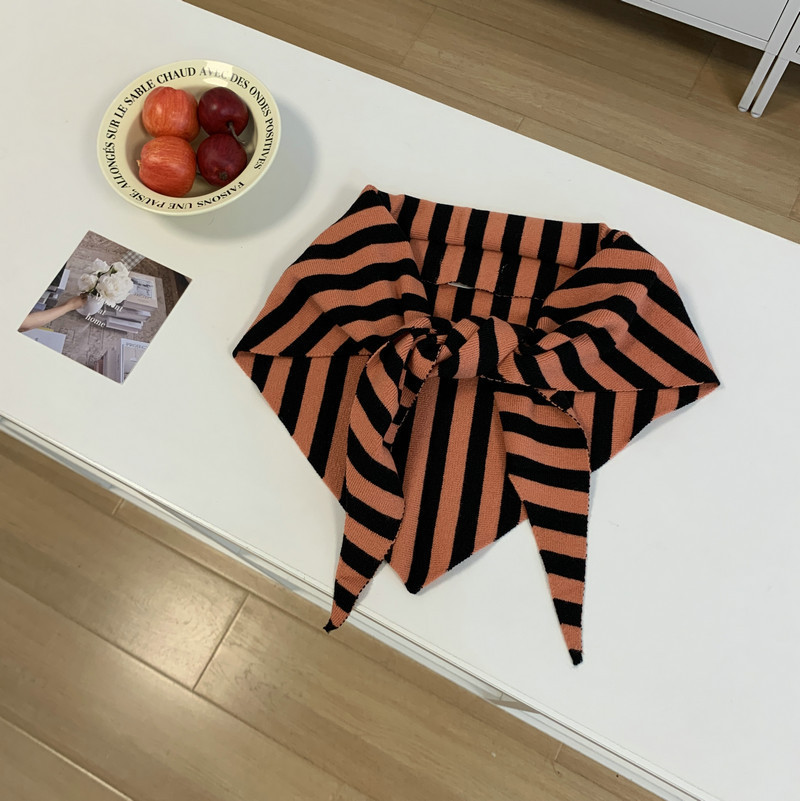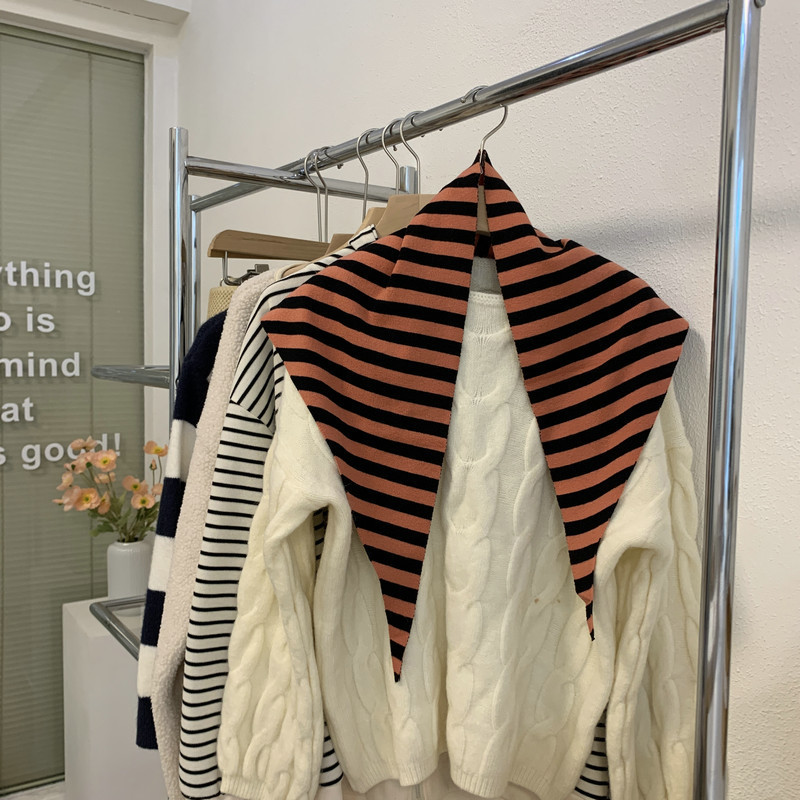 북유럽 스타일 스카프 작은 목도리 블랙 살구색 스트라이프 니트 올 매치 트라이앵글 일본 스타일 한국 스타일 틈새 디자인 스카프스토어 가기