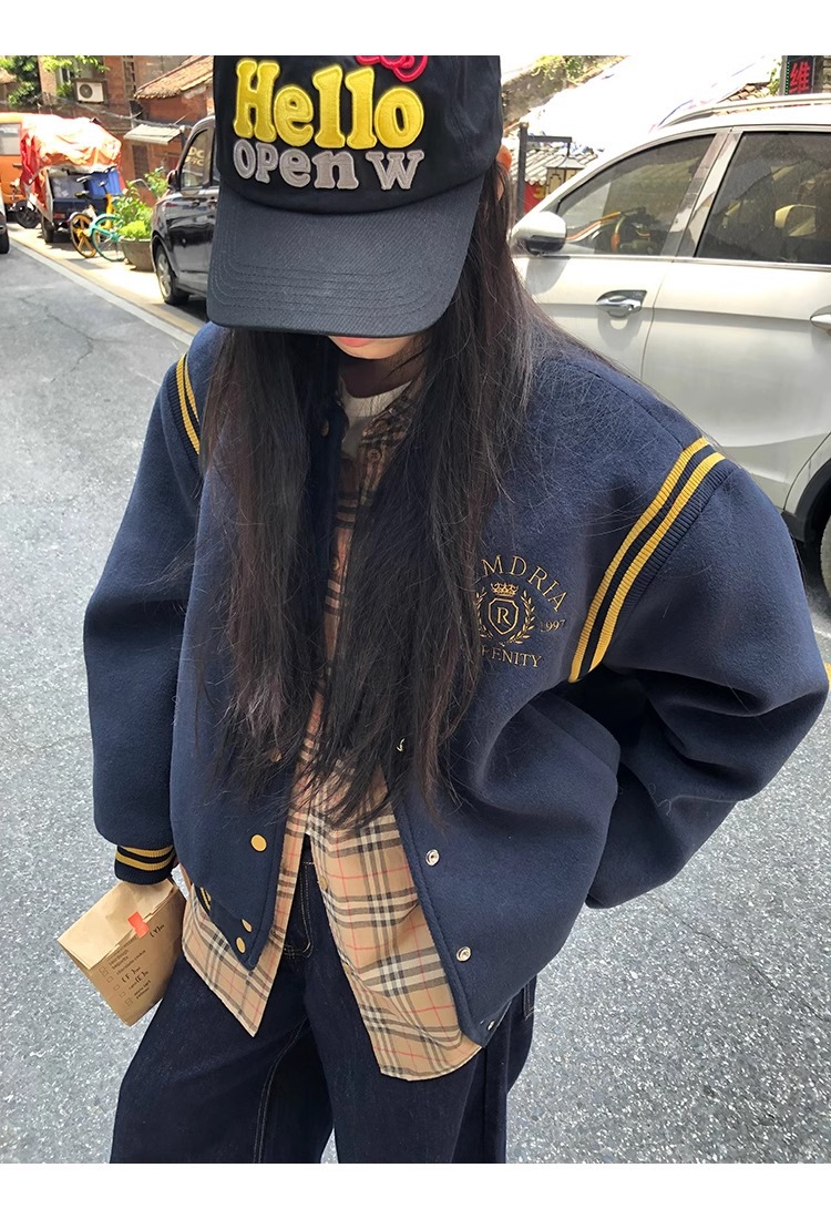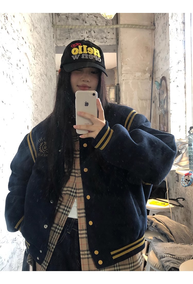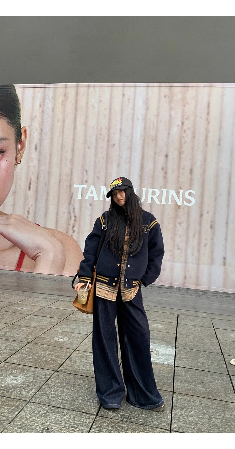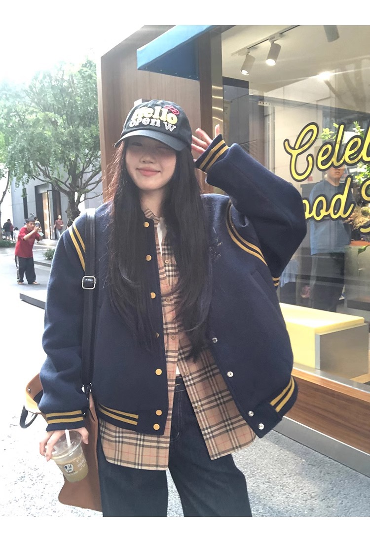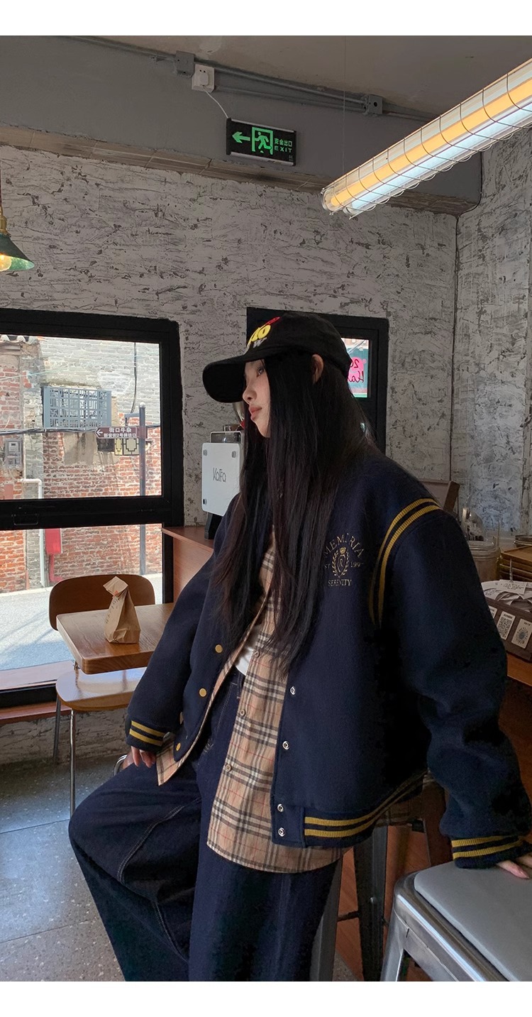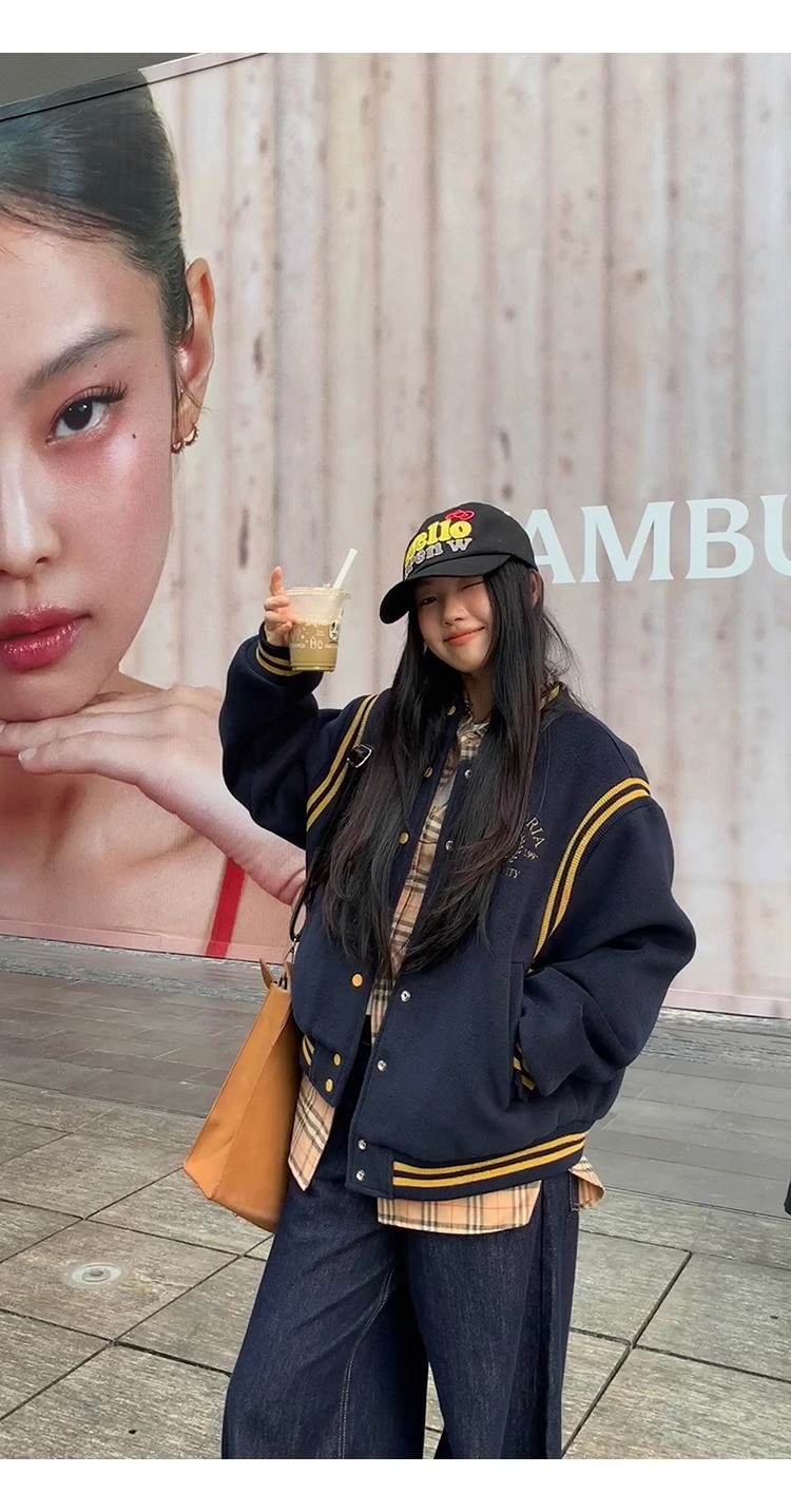 한국 조커 네이비 야구 세트 코트 여자 가을 겨울 2024 폭발스토어 가기