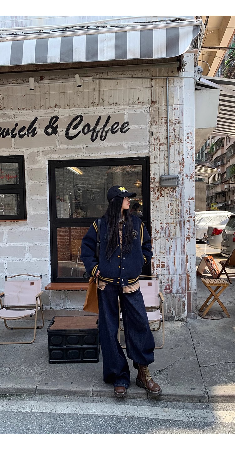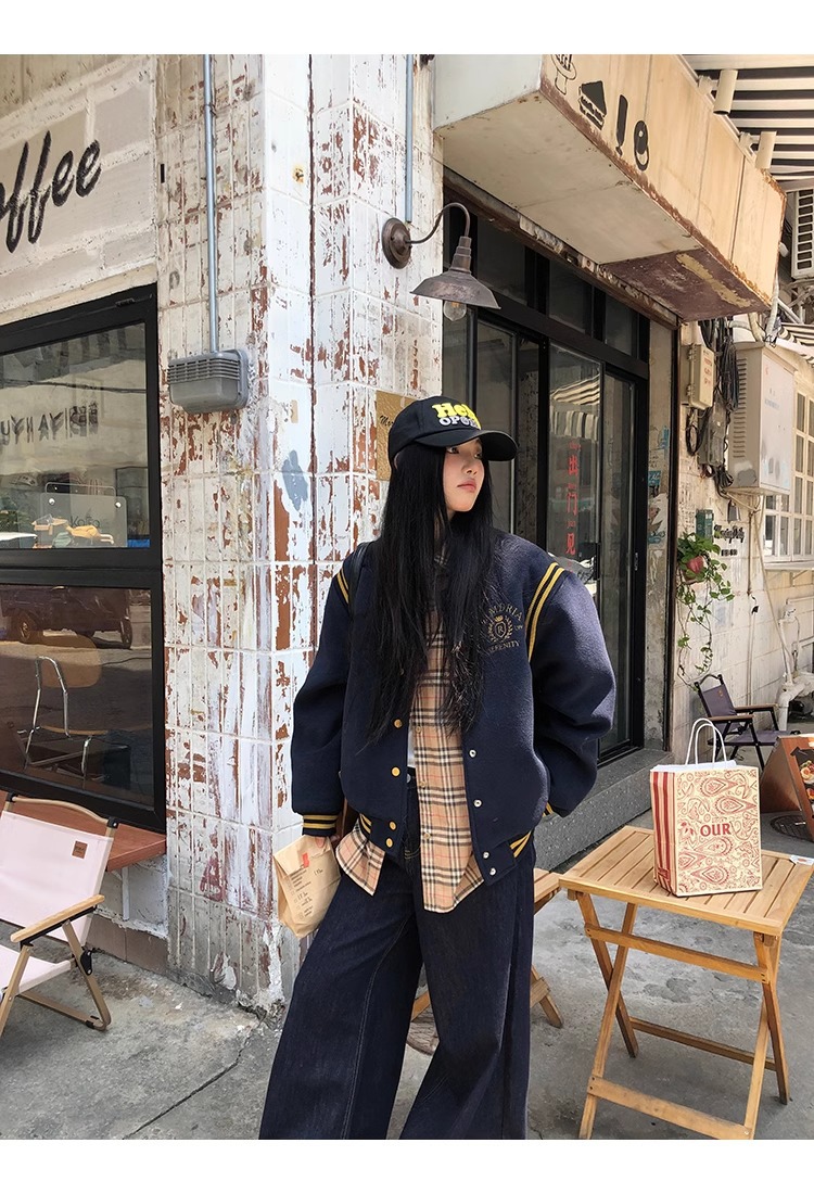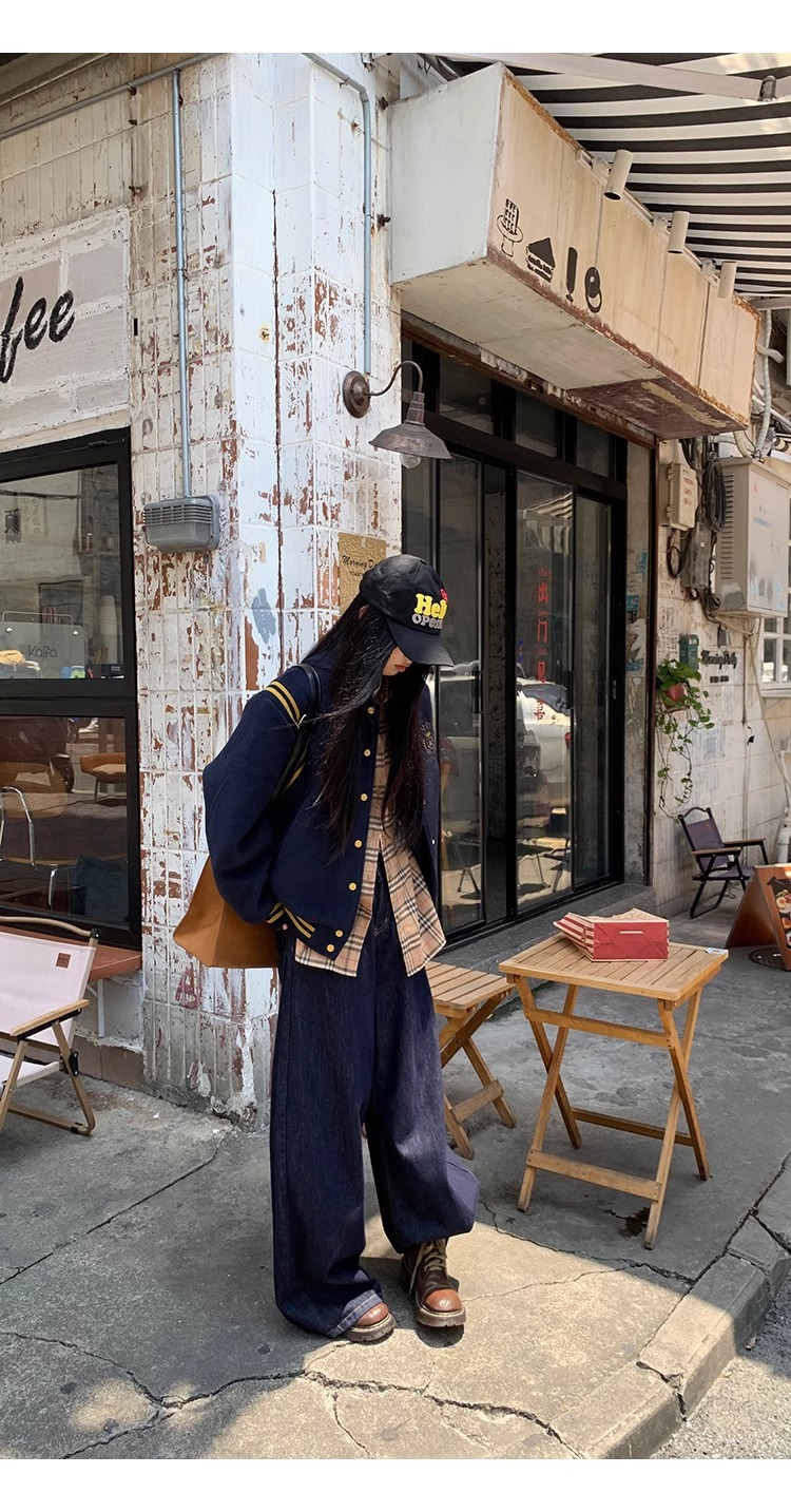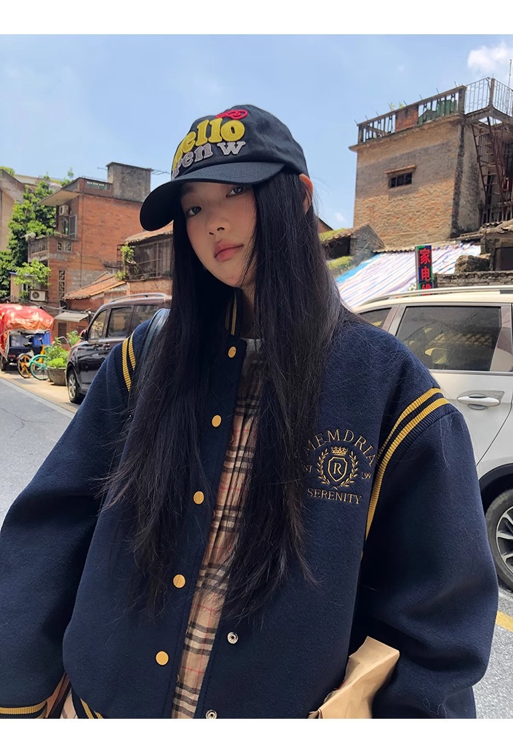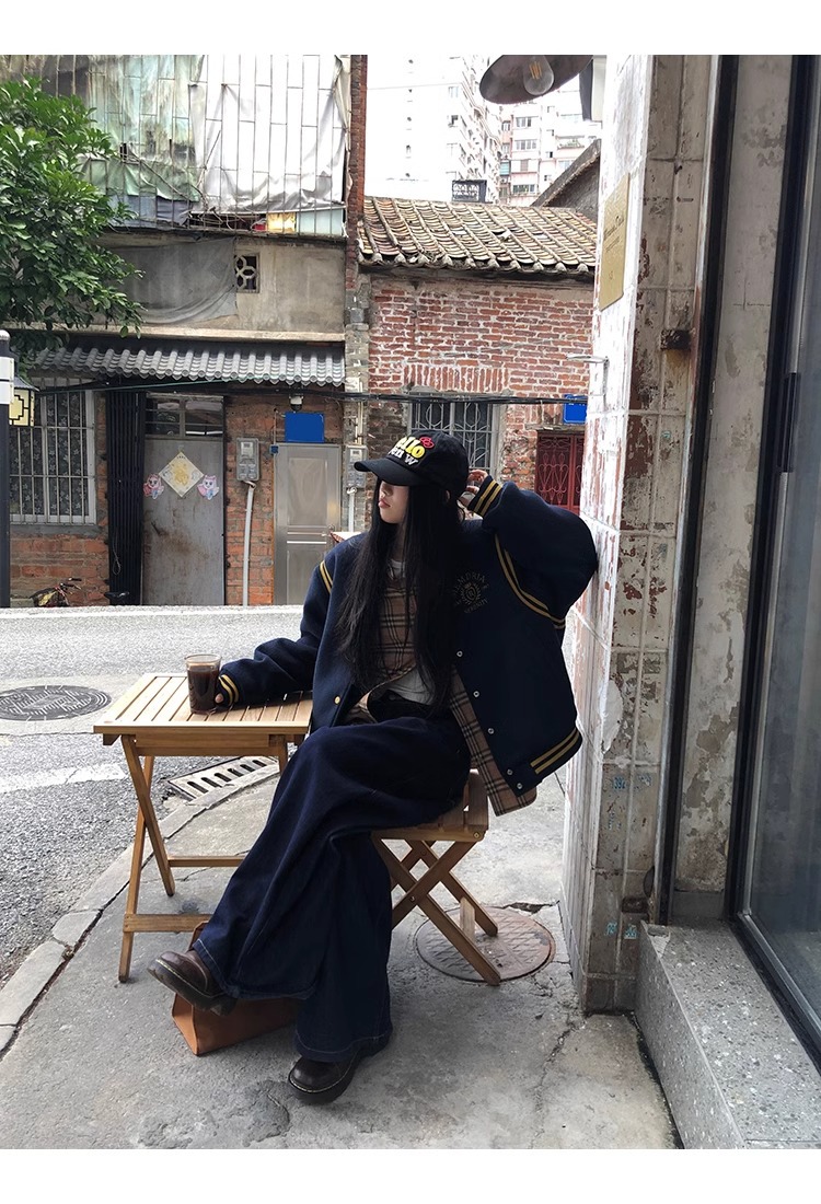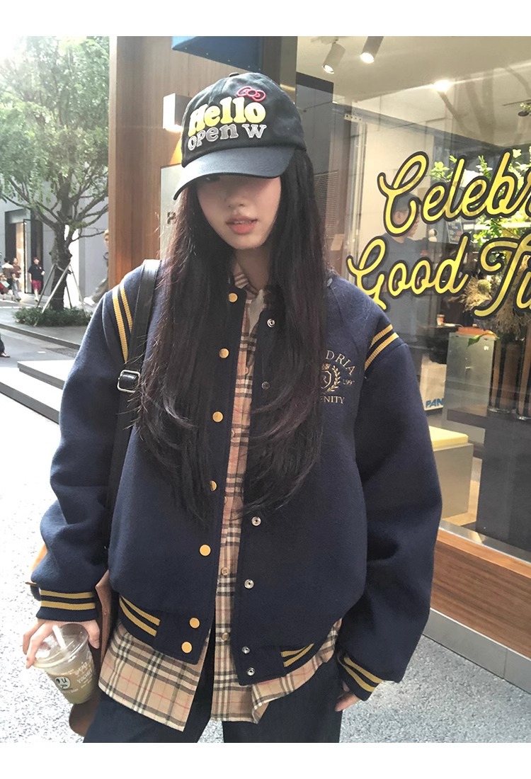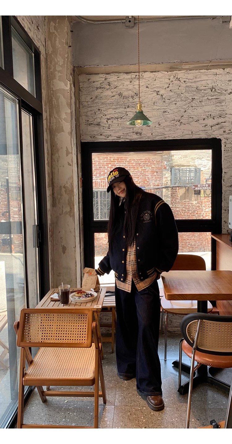 한국 조커 네이비 야구 세트 코트 여자 가을 겨울 2024 폭발스토어 가기