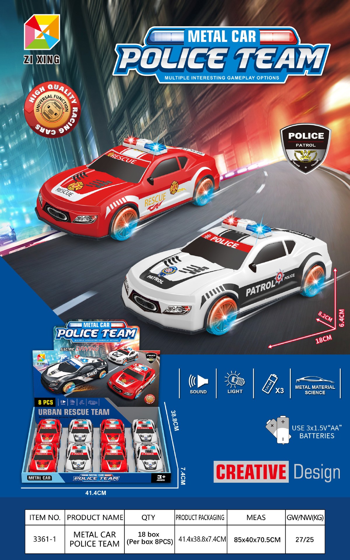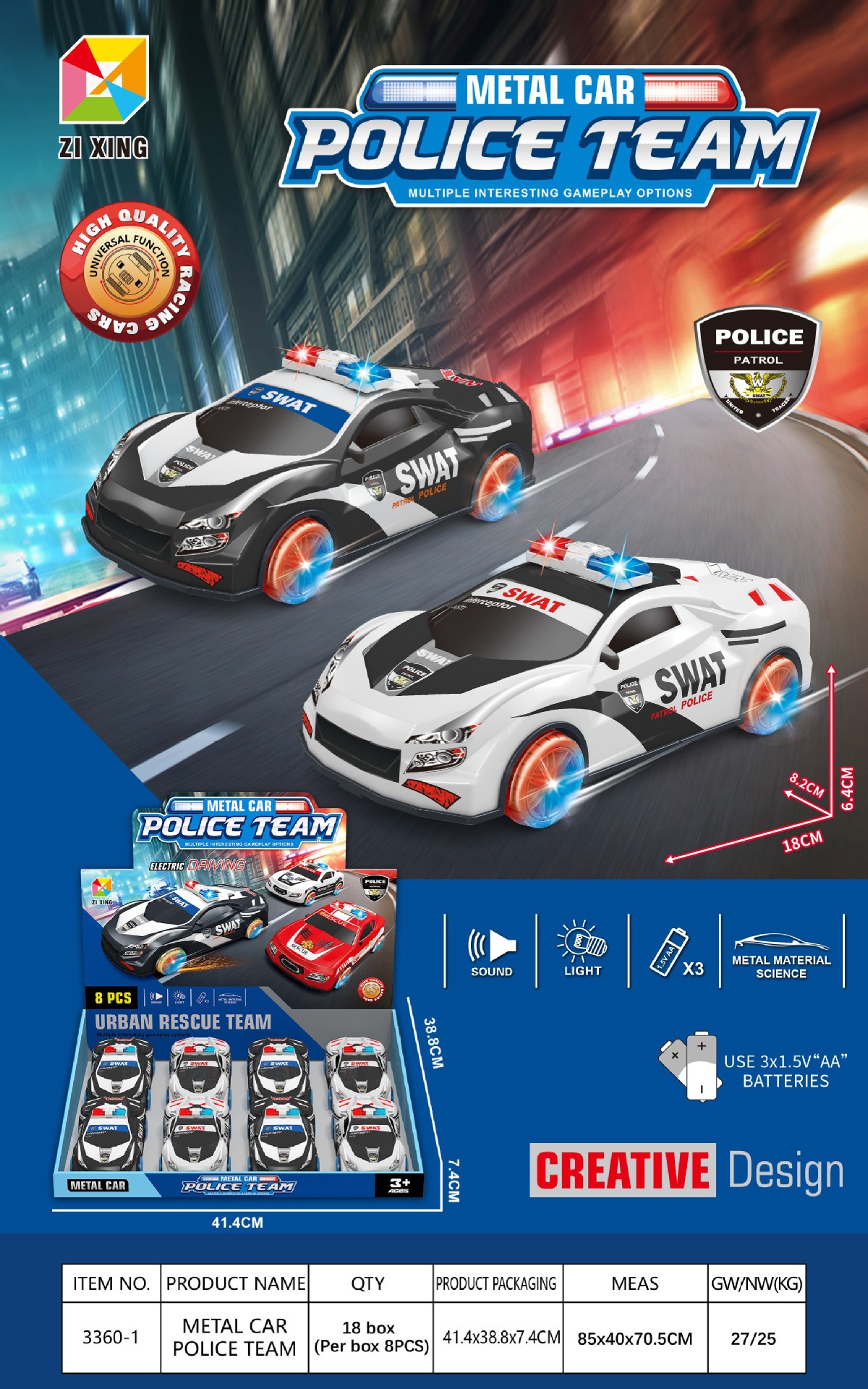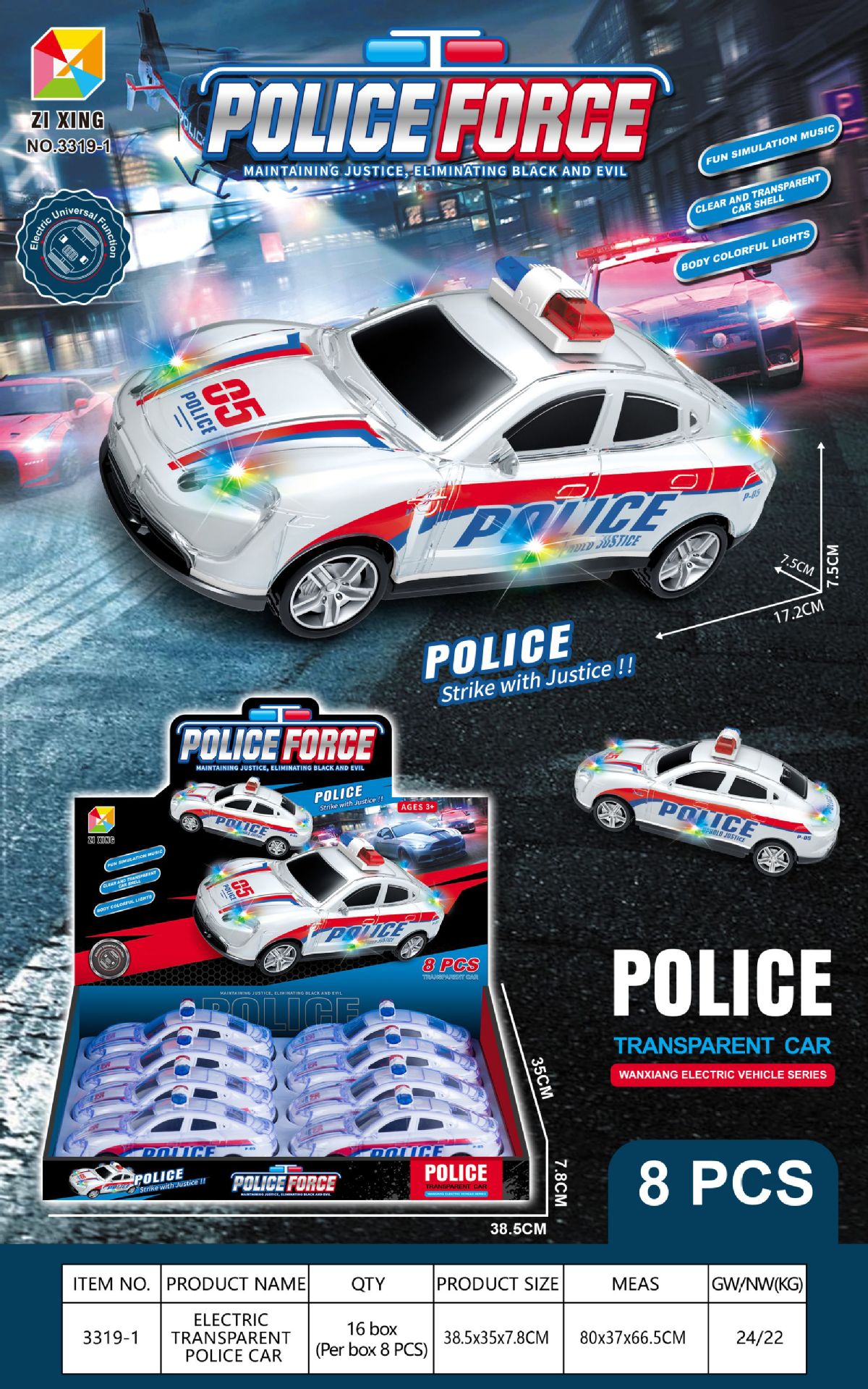 • 3319-1 전기 범용 경찰차(영어 전체 디스플레이 상자에 8개 필요)