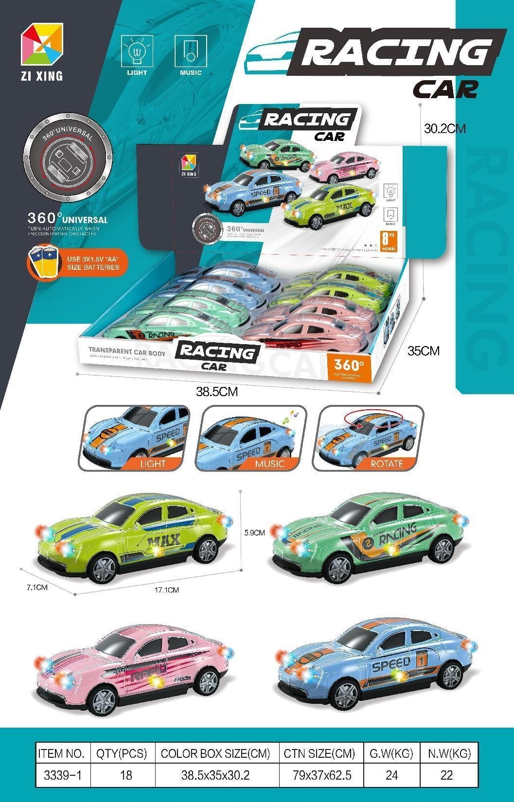 • 3339-1 전기 캔디 4색 스포츠카(영어 전체 디스플레이 상자에 8개 필요)