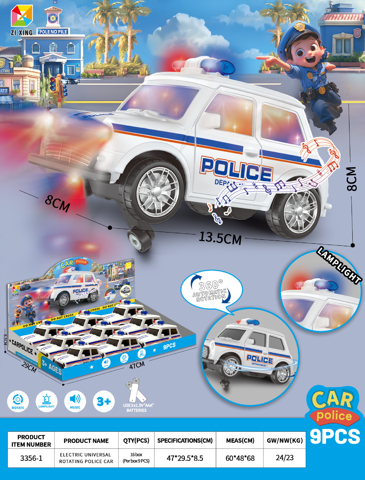 • 3356-1 전기 범용 스턴트 시연 회전 경찰차(영어 전체 디스플레이 상자에 9개 필요)
