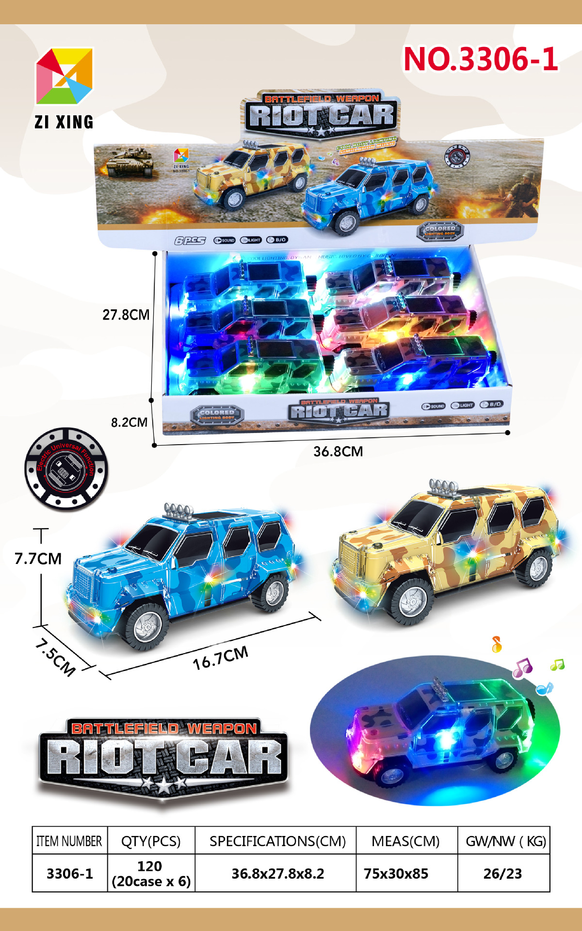 • 3337-1 전기 범용 가죽 오프로드 트럭(영어 디스플레이 상자에 8개 필요)