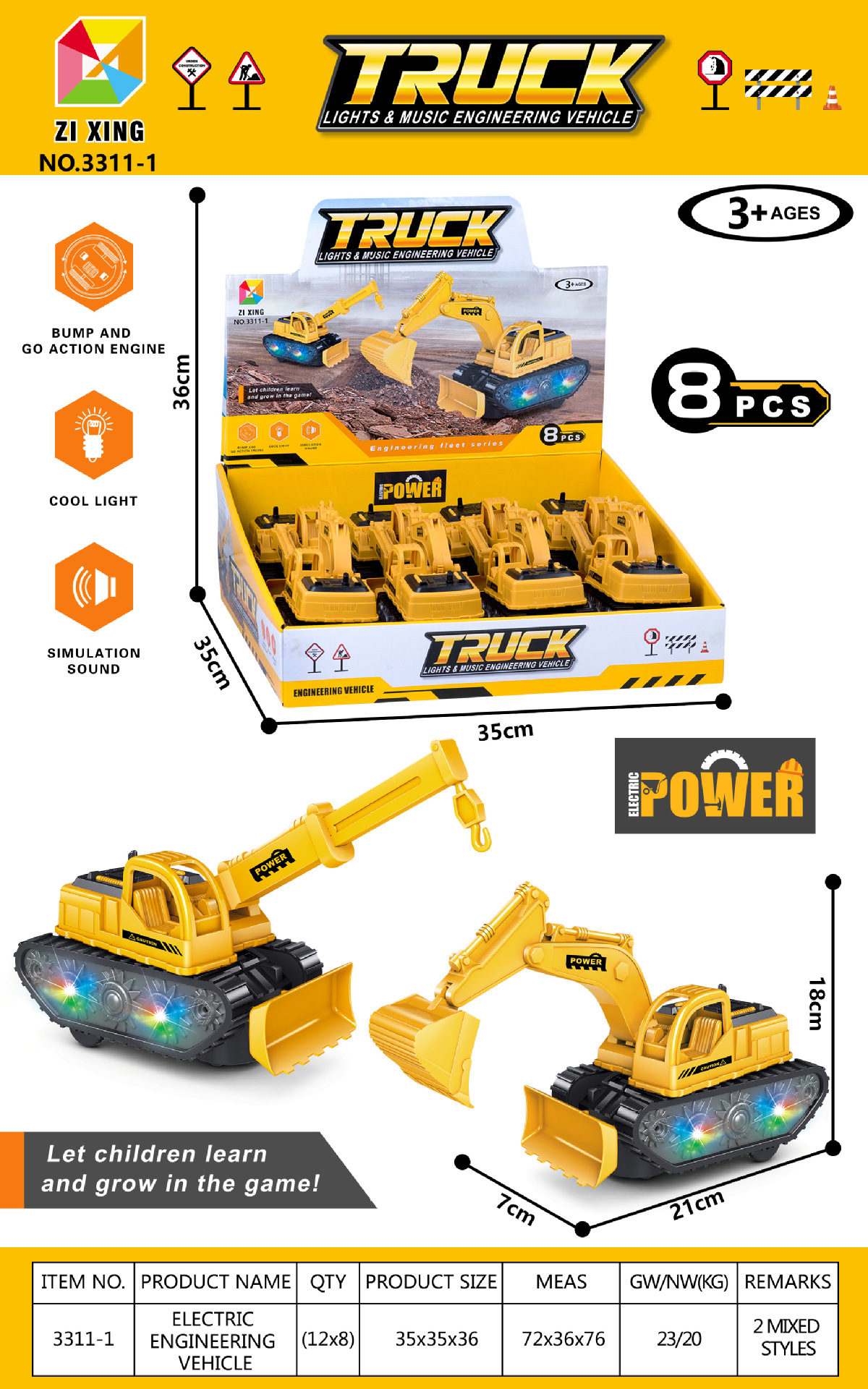 • 3311-1 엔지니어링 차량 2개 모델(영어 전체 디스플레이 상자에 8개 필요)