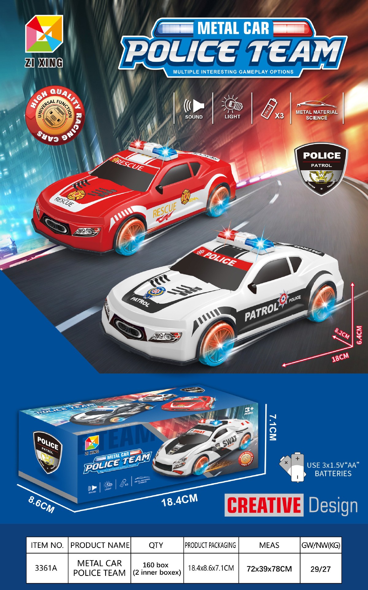 • 3361A 전기 범용 합금 경찰차(영어 비밀 상자)