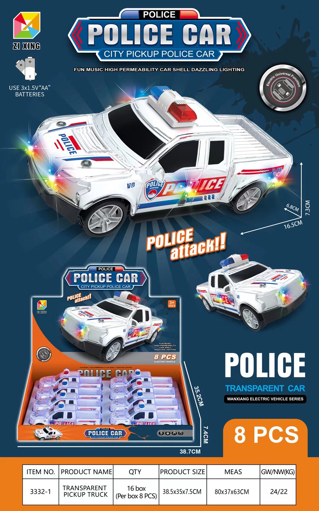 • 3332-1 전기 범용 픽업 경찰차(영어 전체 디스플레이 상자에 8개 필요)