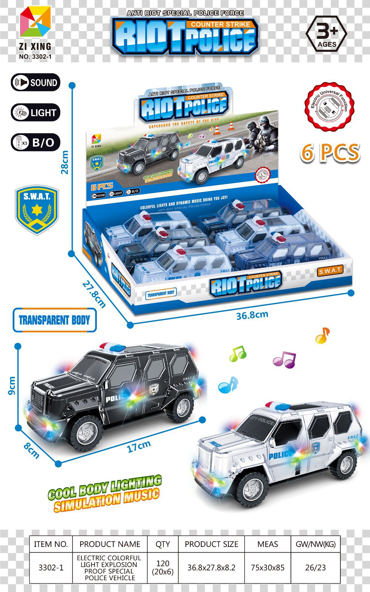 • 3302-1 전기 SWAT 자동차(영어 전체 디스플레이 상자에 6개 필요)