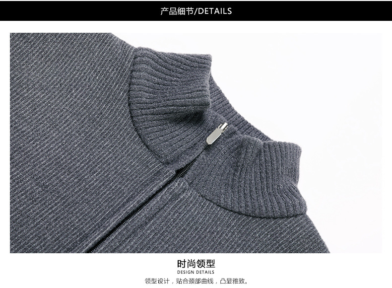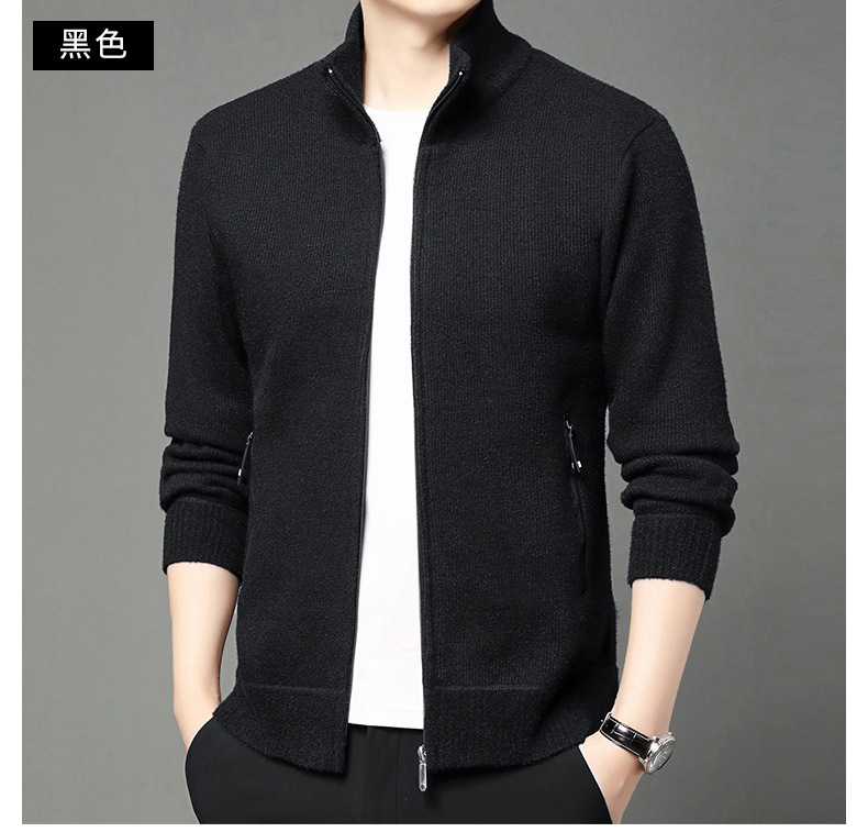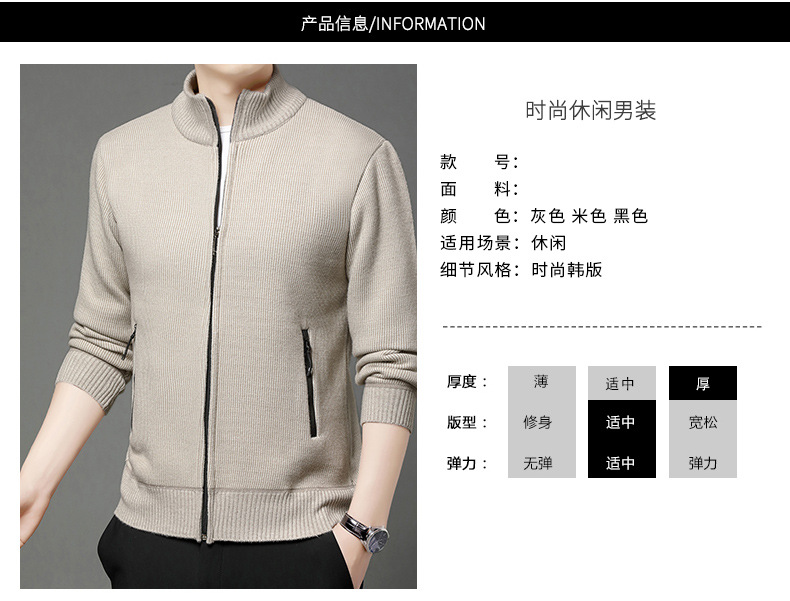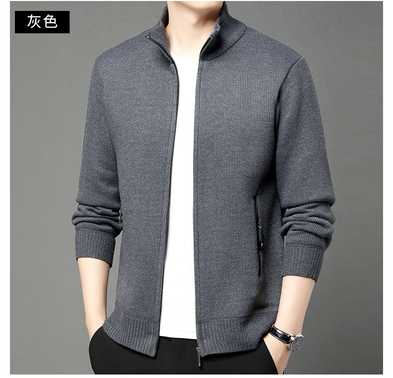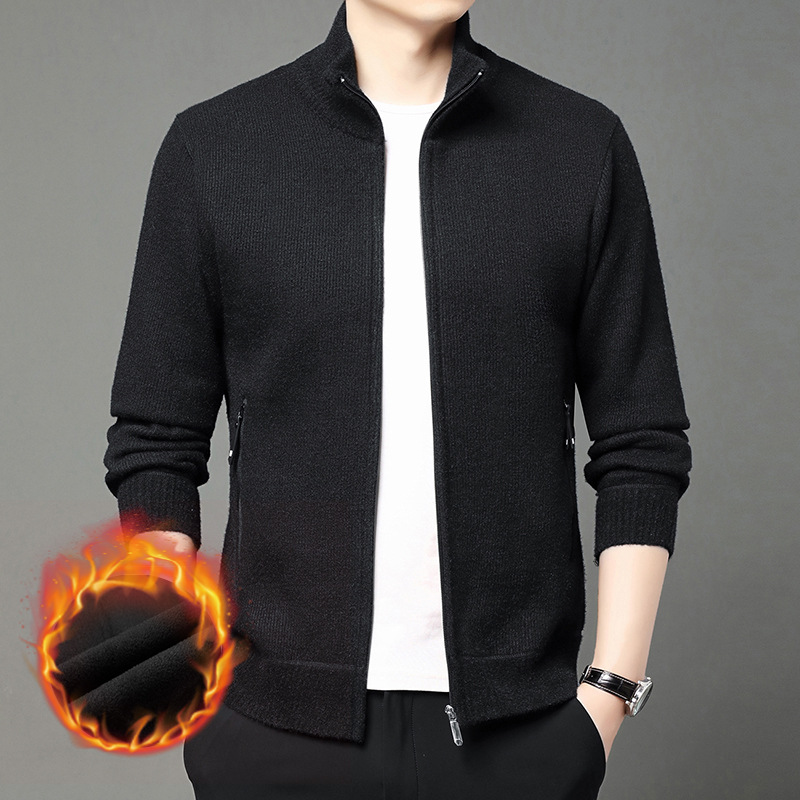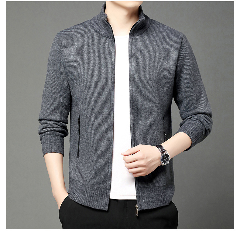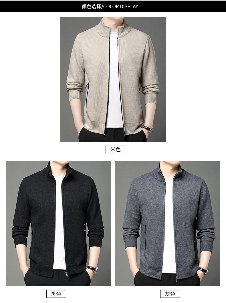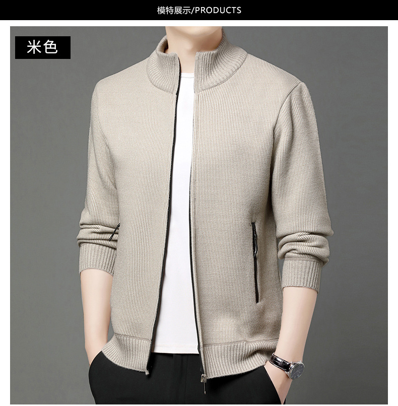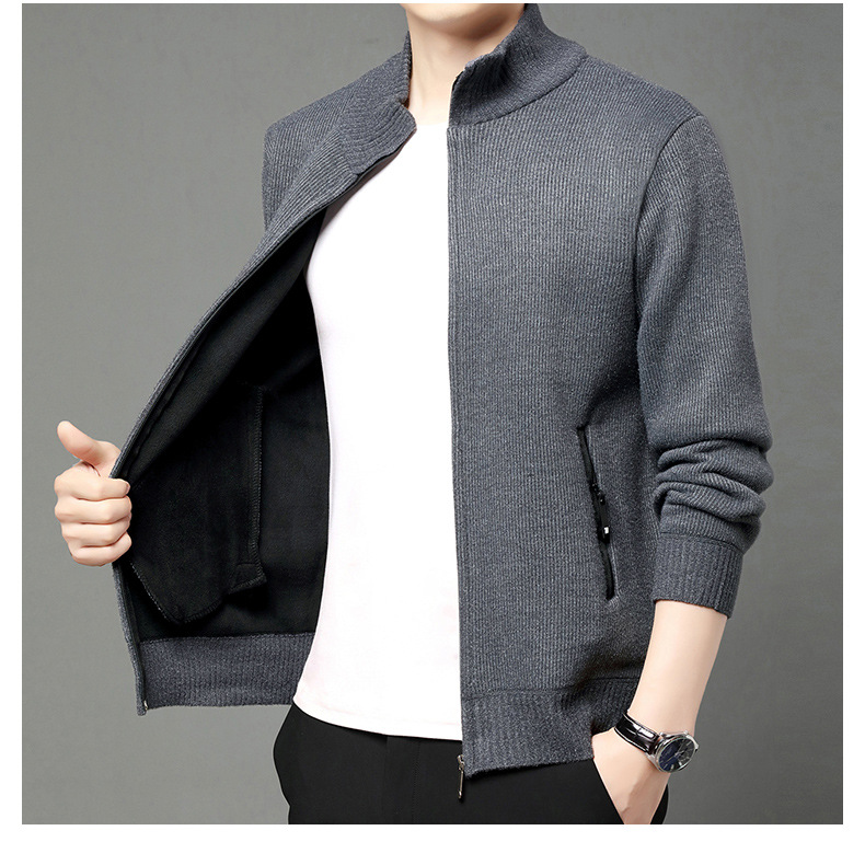 YINGAO 스트라이프 스탠드 칼라 지퍼 스웨터 카디건 2024 가을과 겨울 새로운 기모 남성용 캐주얼 스웨터 코트스토어 가기