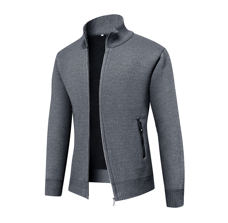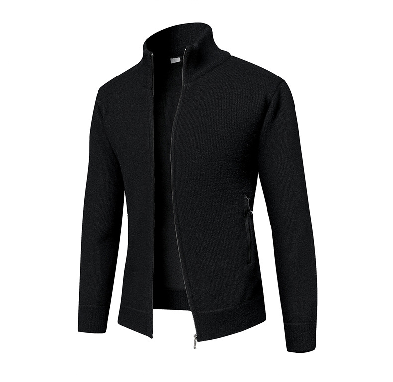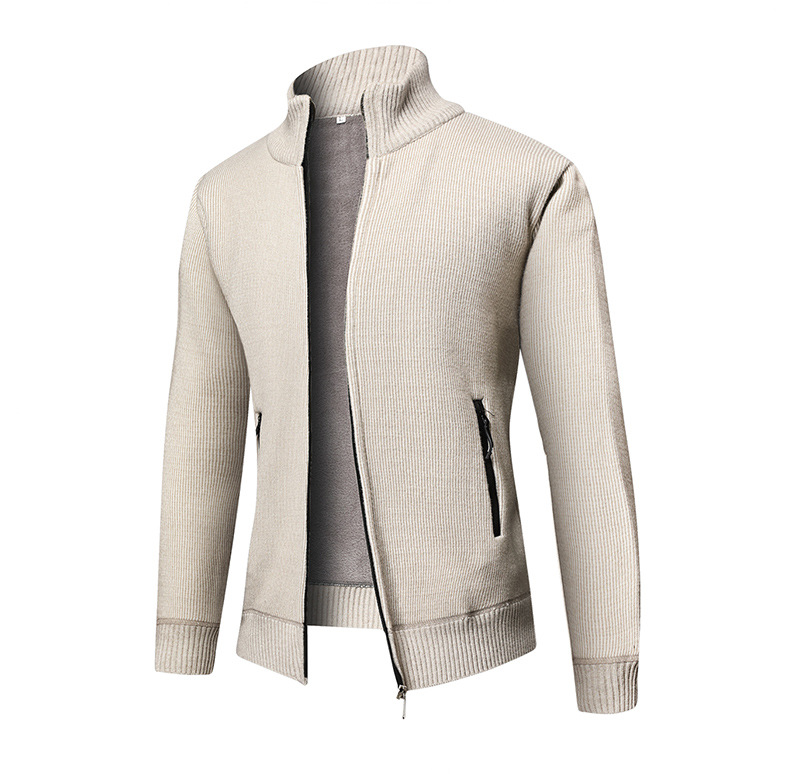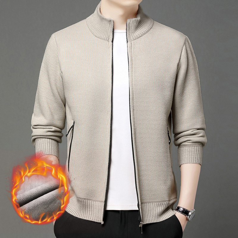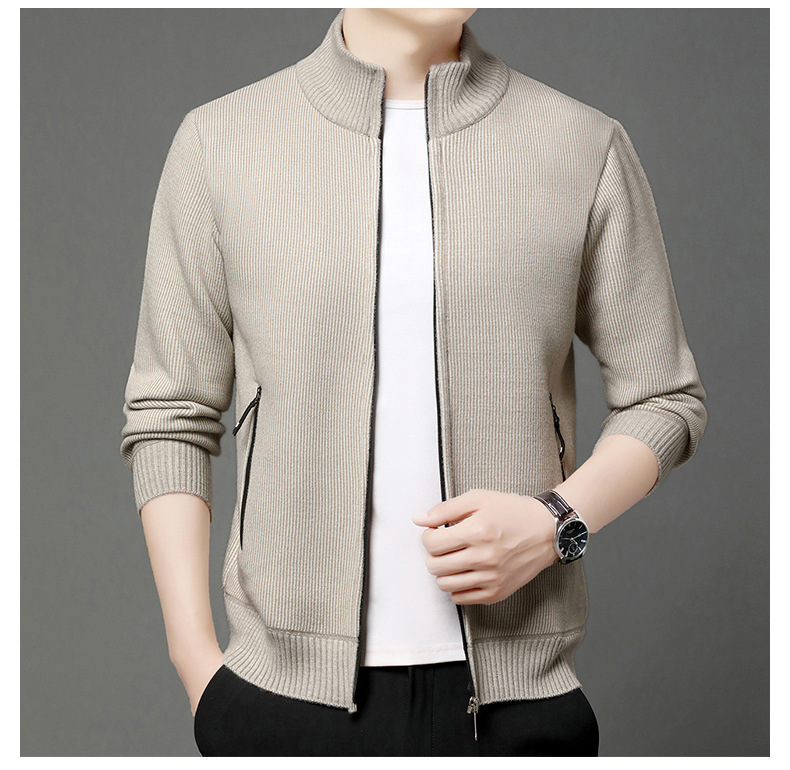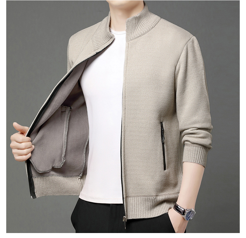 YINGAO 스트라이프 스탠드 칼라 지퍼 스웨터 카디건 2024 가을과 겨울 새로운 기모 남성용 캐주얼 스웨터 코트