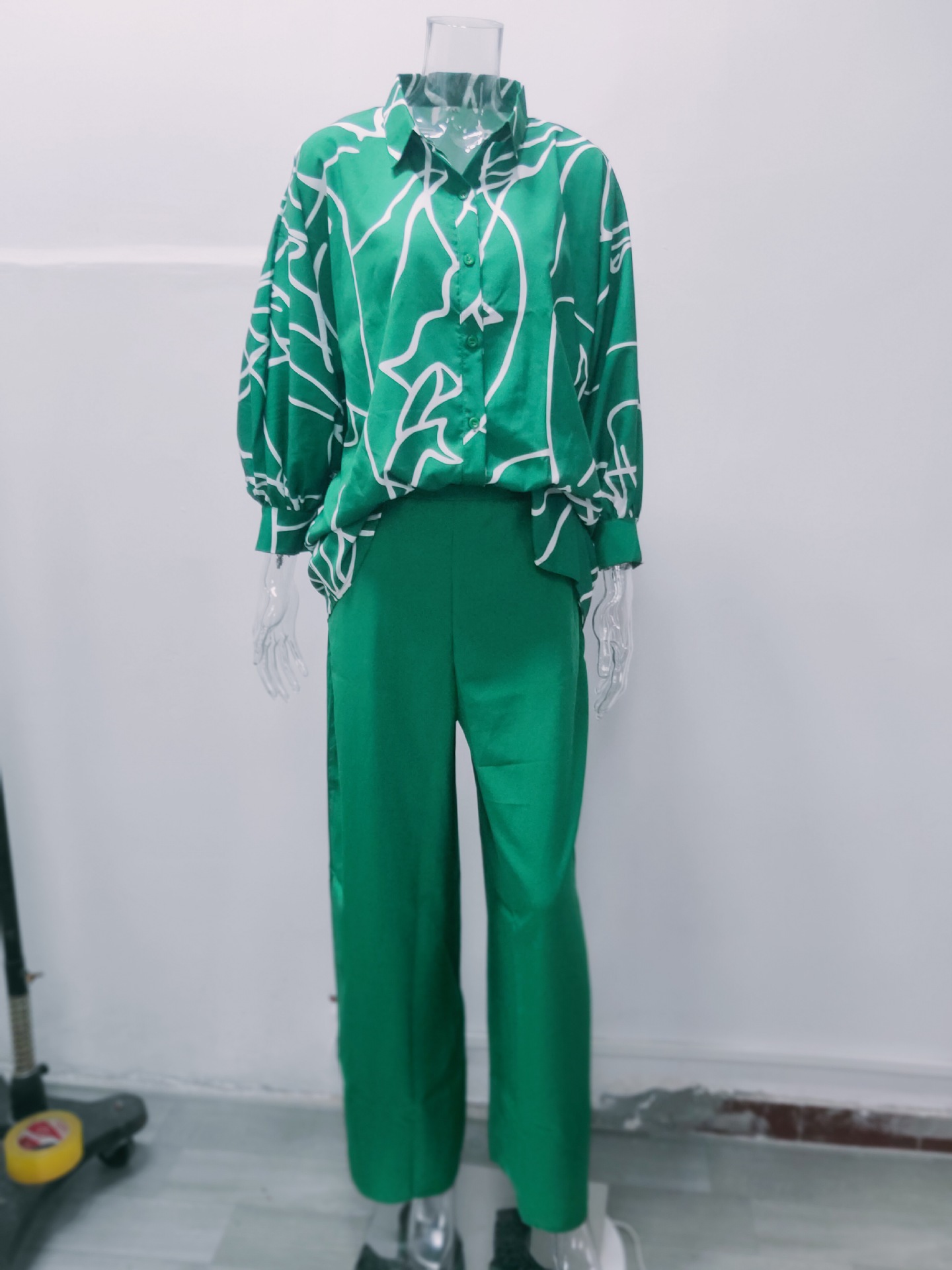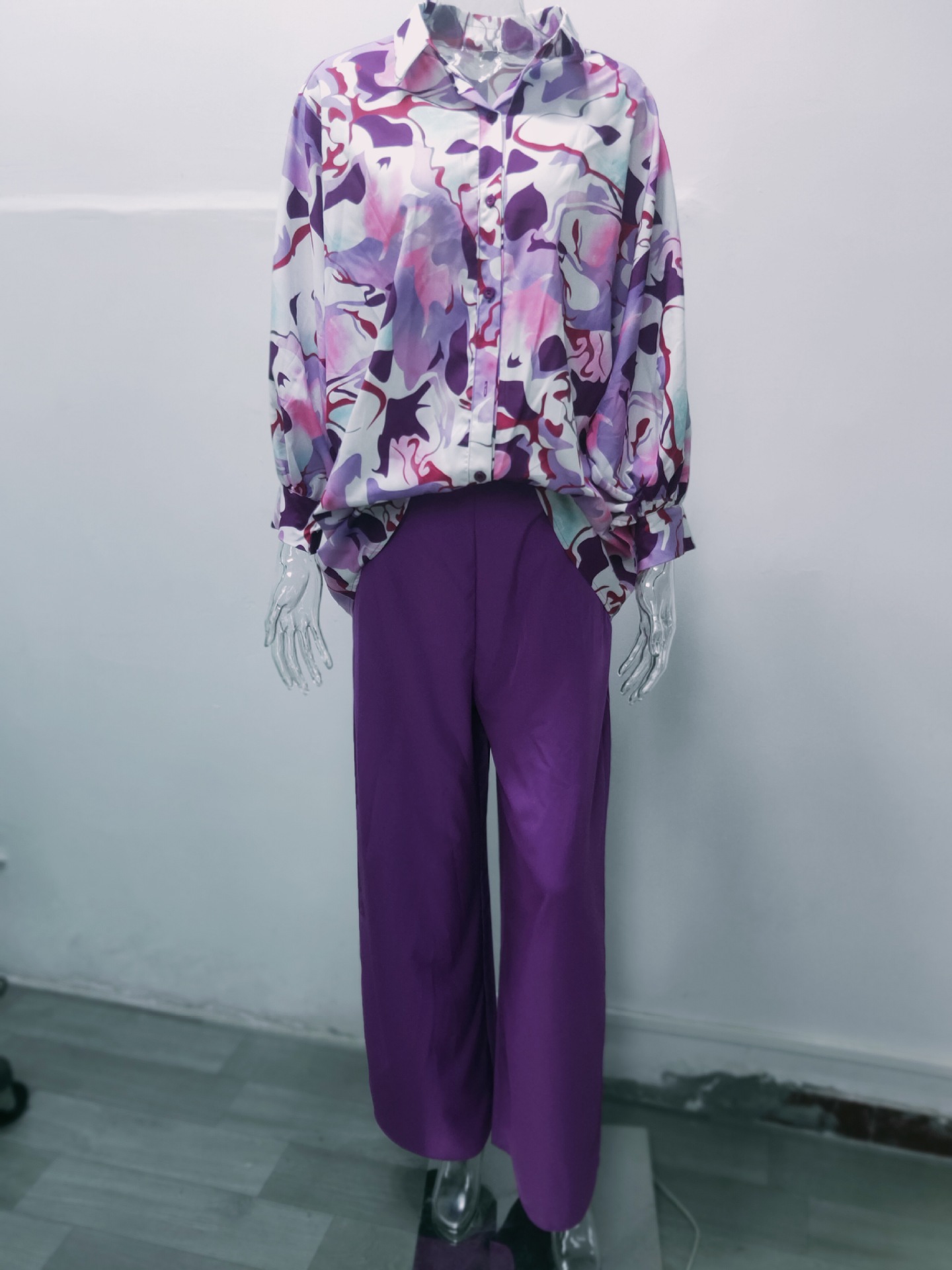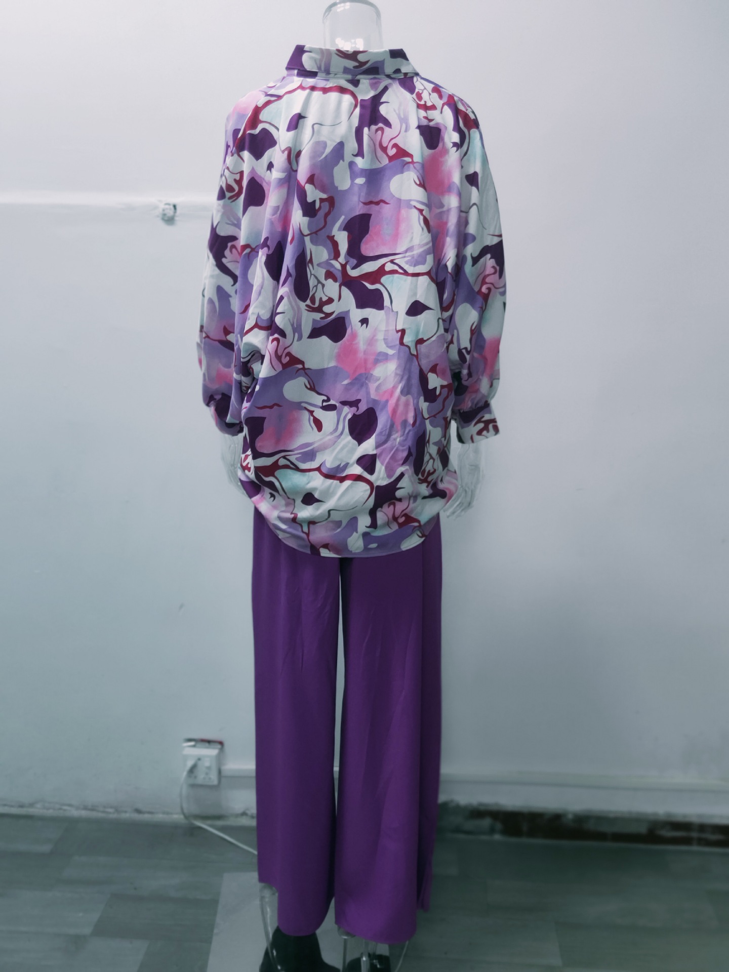 2024 국경 도매 가을과 겨울 새로운 여성 플러스 사이즈 넓은 다리 바지 세트 캐주얼 기질 투피스 여성스토어 가기
