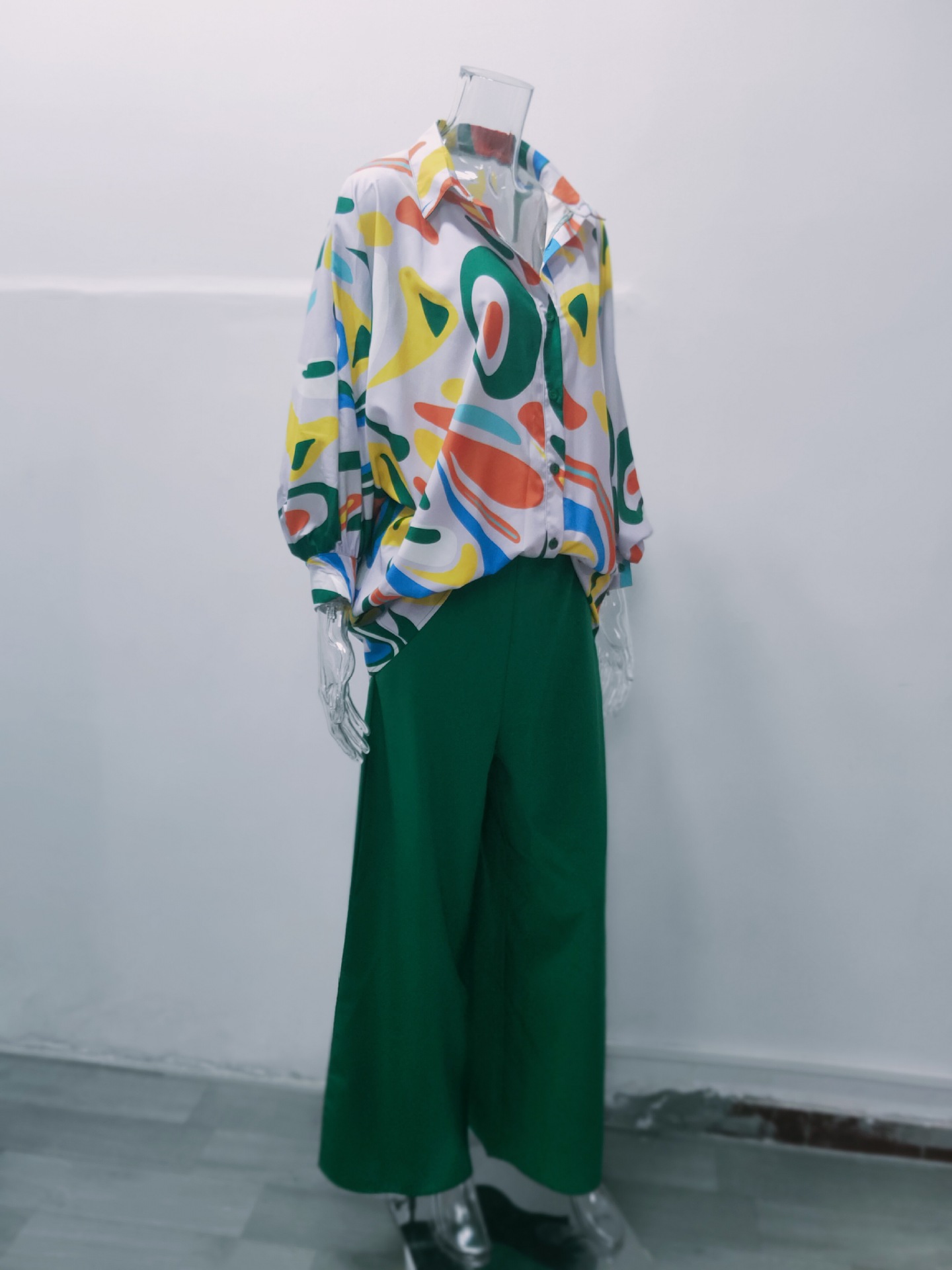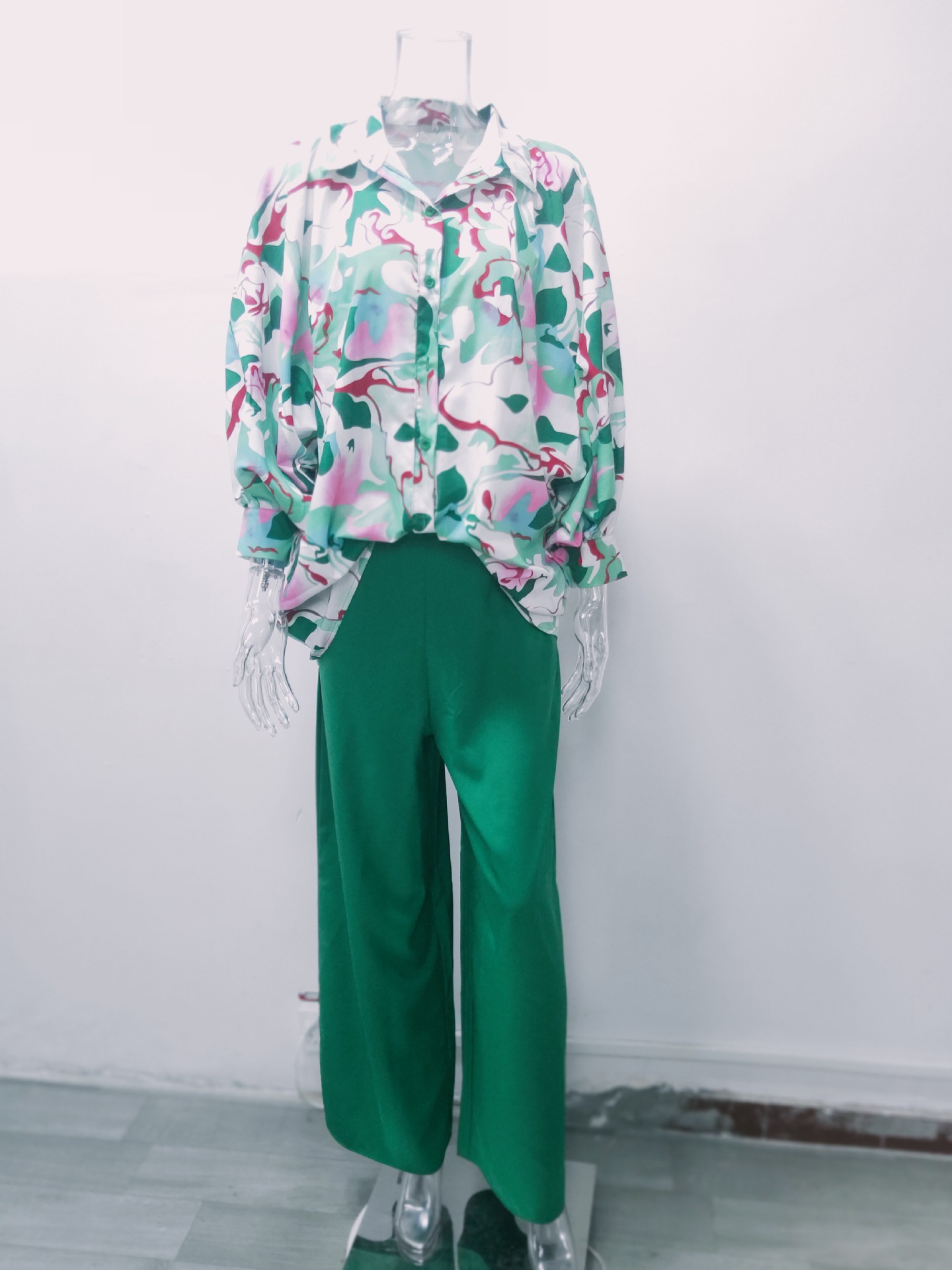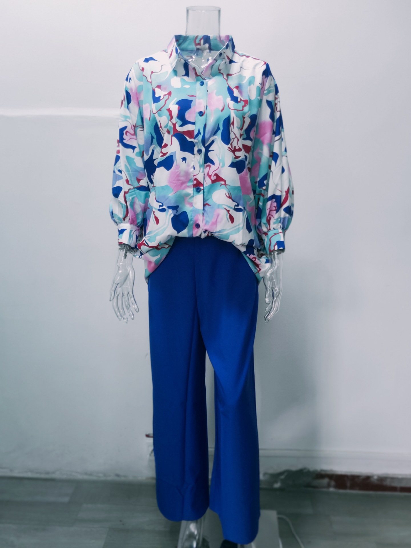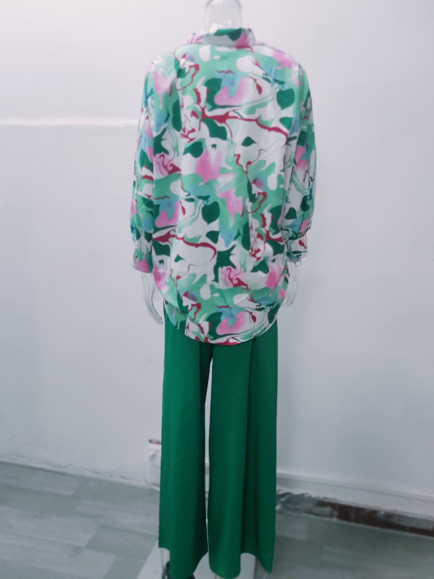 2024 국경 도매 가을과 겨울 새로운 여성 플러스 사이즈 넓은 다리 바지 세트 캐주얼 기질 투피스 여성스토어 가기