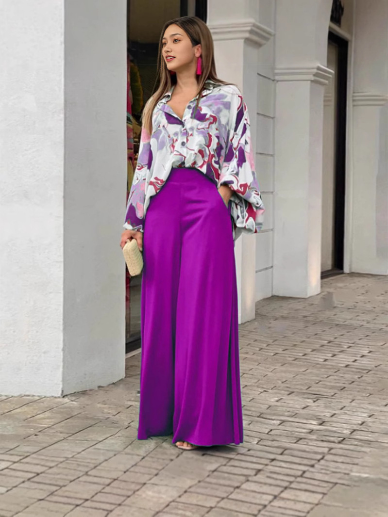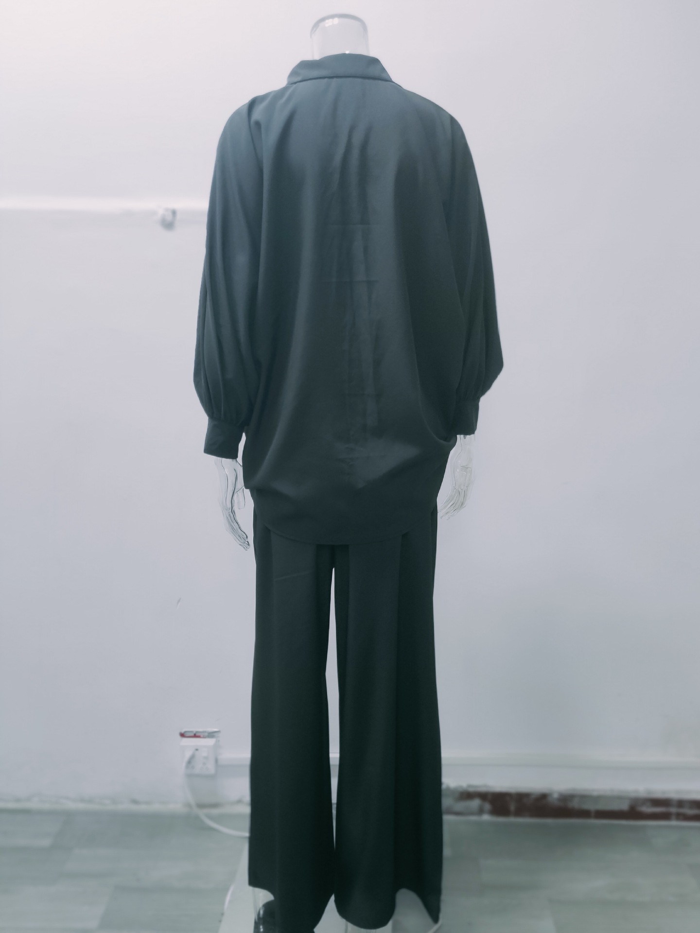 2024 국경 도매 가을과 겨울 새로운 여성 플러스 사이즈 넓은 다리 바지 세트 캐주얼 기질 투피스 여성