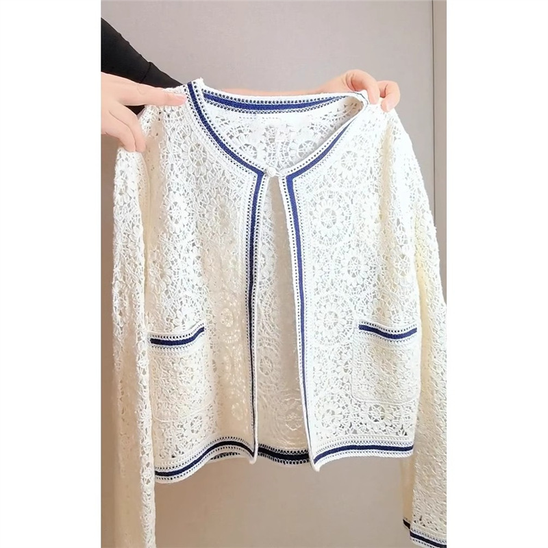 초기 YT377357 가을 2024 새로운 여성의 기질 고급 고급 흰색 바늘 착용 세트