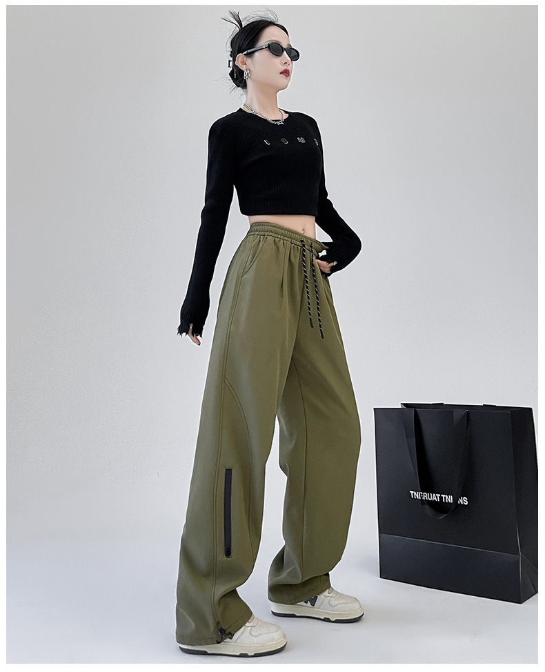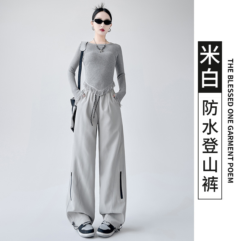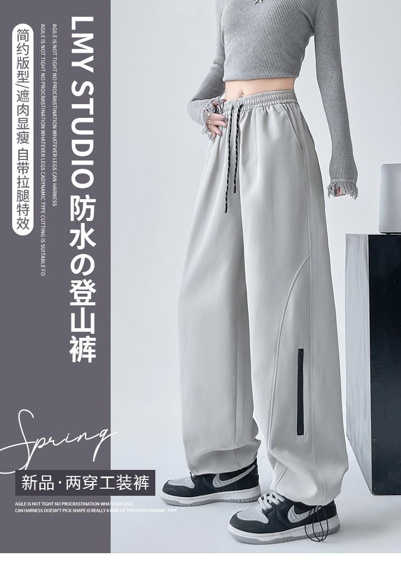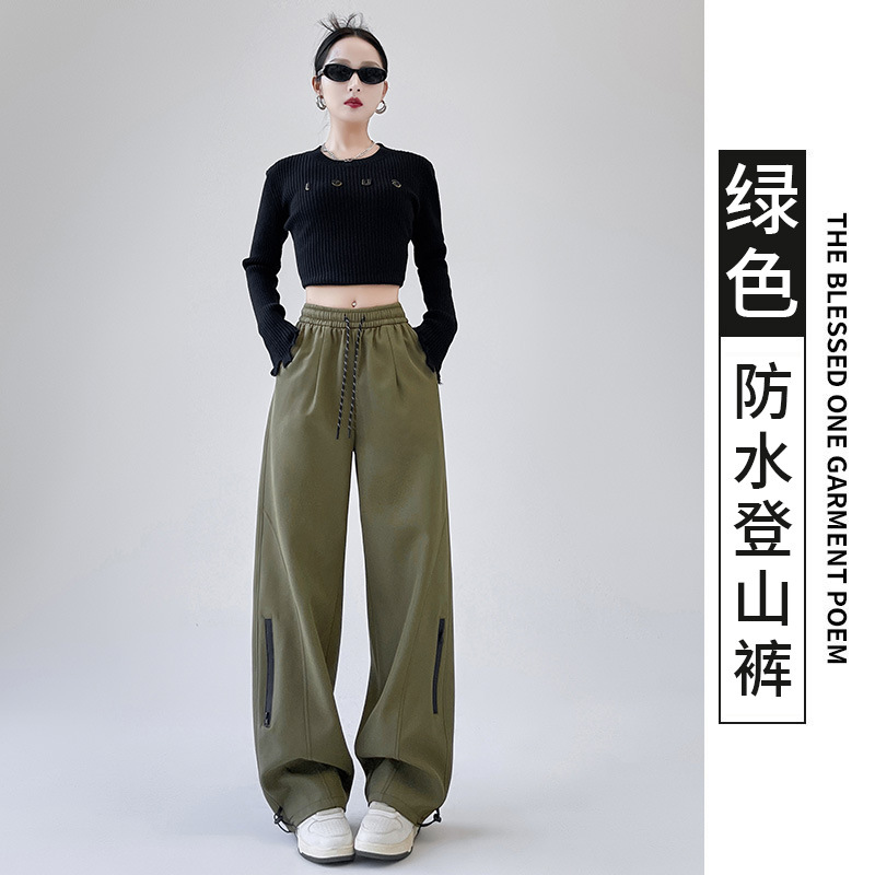 아메리칸 스타일 충전 바지 여성용 방풍 및 방수 작업복 2024 가을 바지 스트레이트 높은 허리 느슨한 캐주얼 스포츠 바지스토어 가기