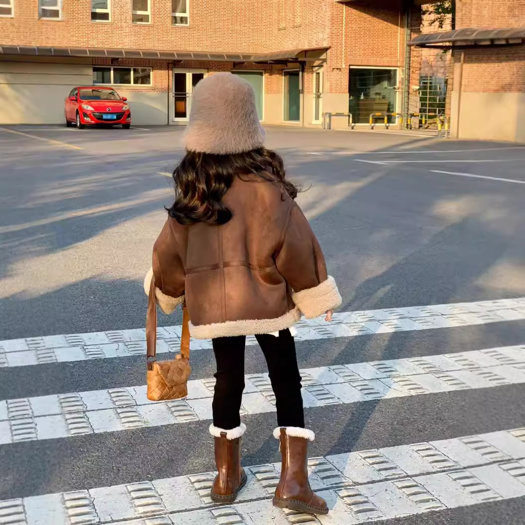 겨울 캐주얼 게으른 두꺼운 따뜻한 기모 옷깃 스웨이드 재킷 바지 소년 소녀스토어 가기