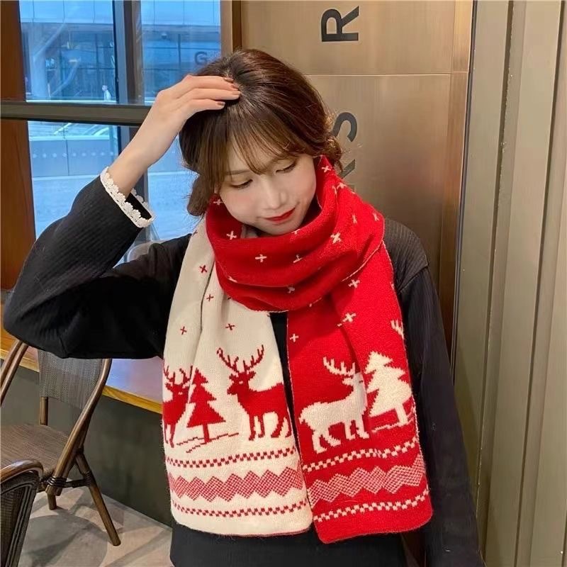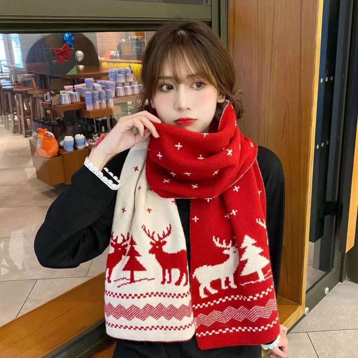 크리스마스 스카프 여성의 겨울 선물 니트 스카프 레드 사이버 인기있는 귀여운 사슴 따뜻한 두꺼운 양모 스카프스토어 가기