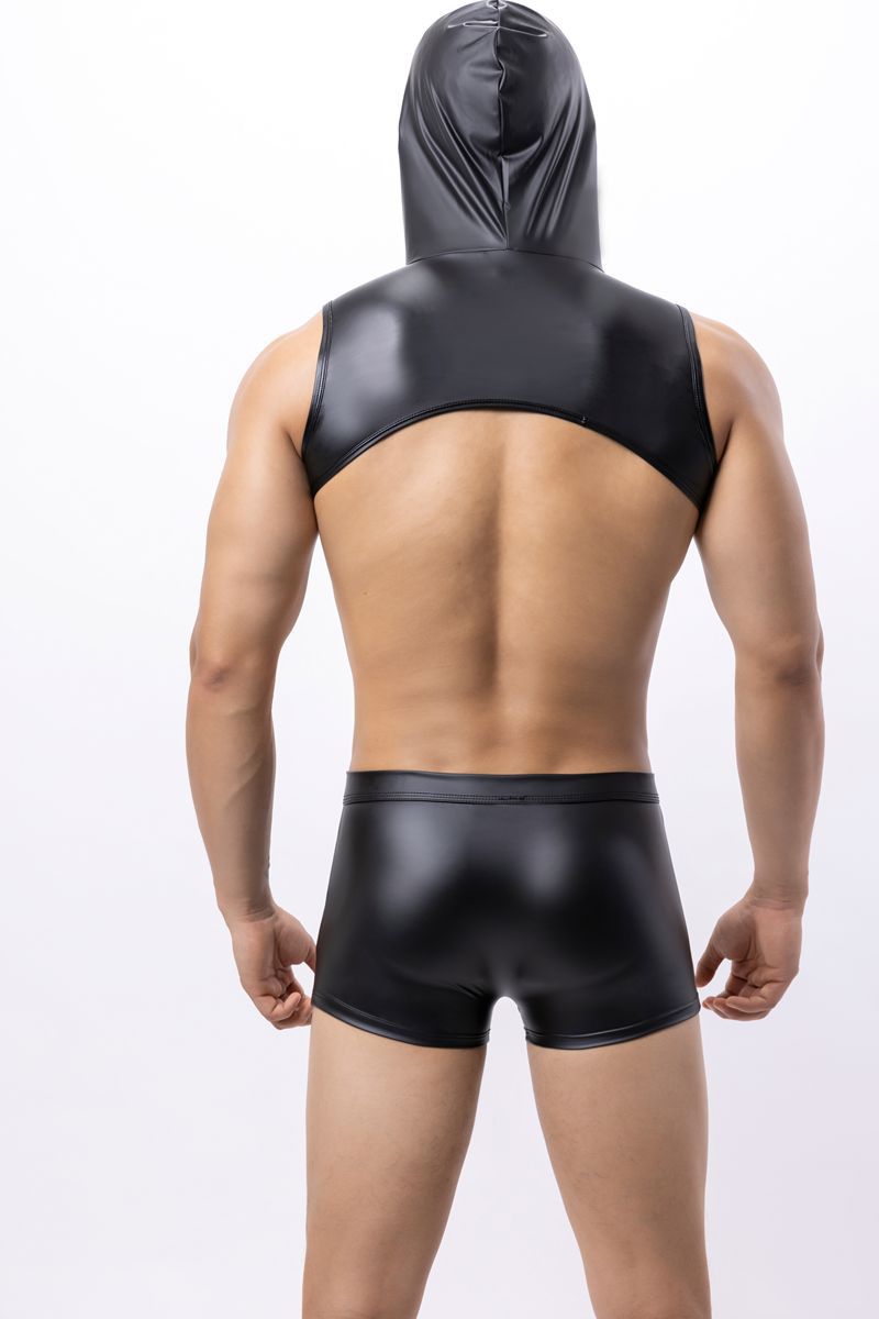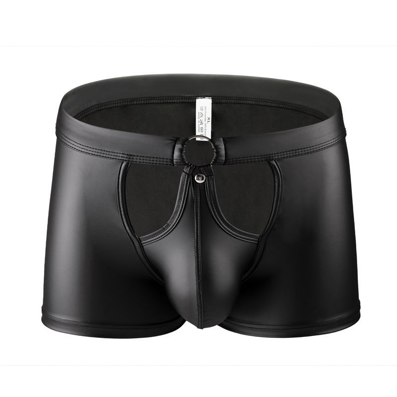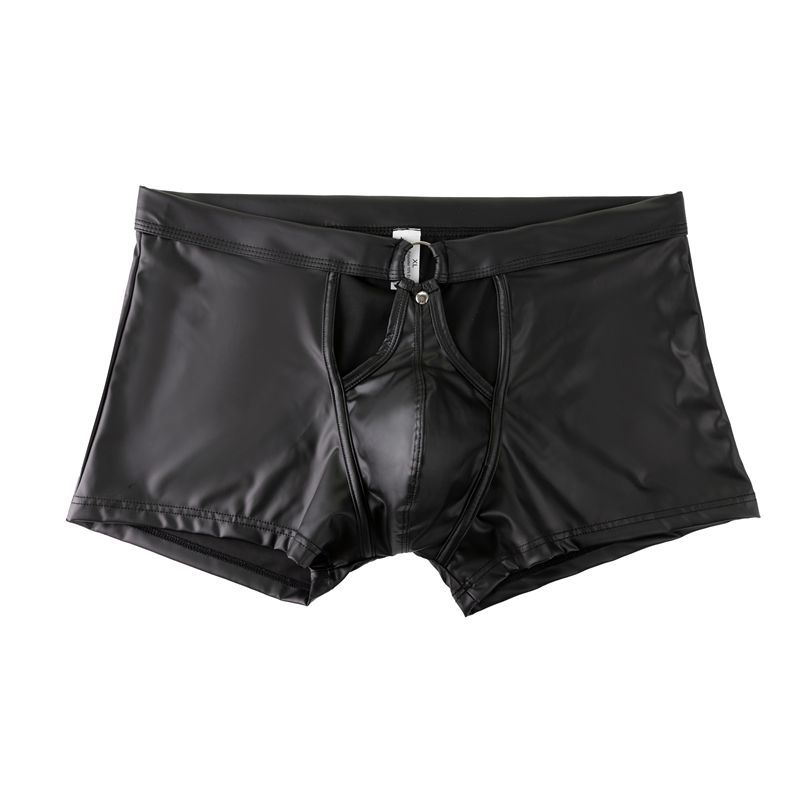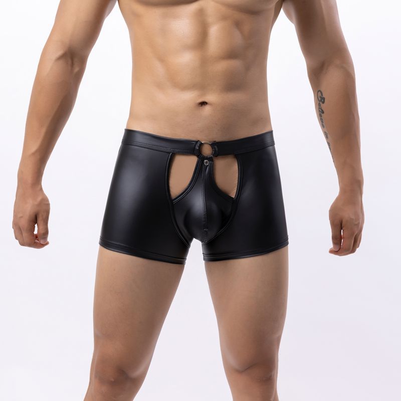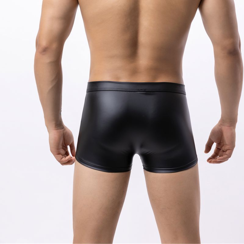 남성 섹시한 특허 가죽 복서 브리프 가짜 가죽 로우 웨이스트 오픈