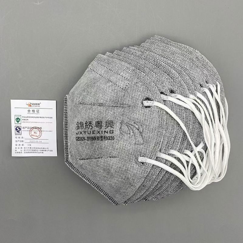 Jinxiu Yuexing 9330 접이식 마스크 활성탄 산업 먼지 방지 부직포 광택 장식 회색 kn90 3 차원
