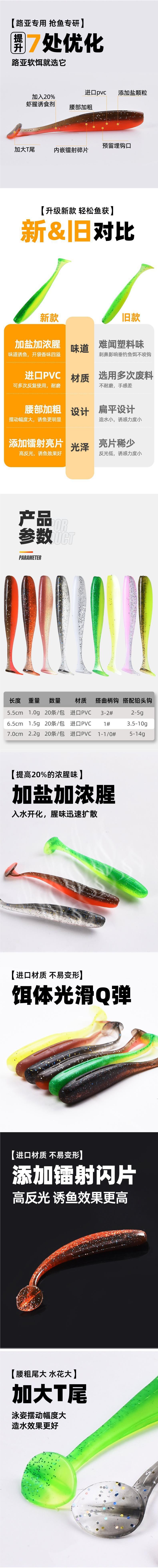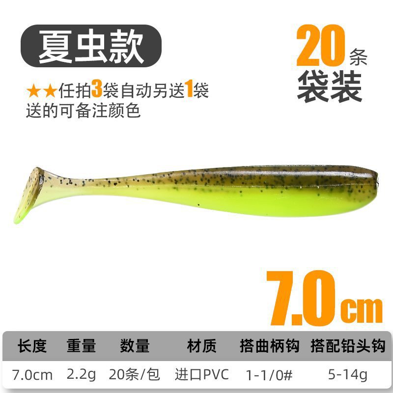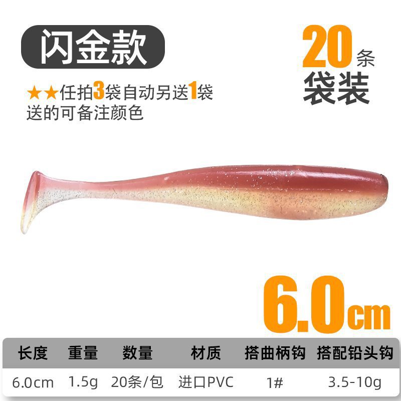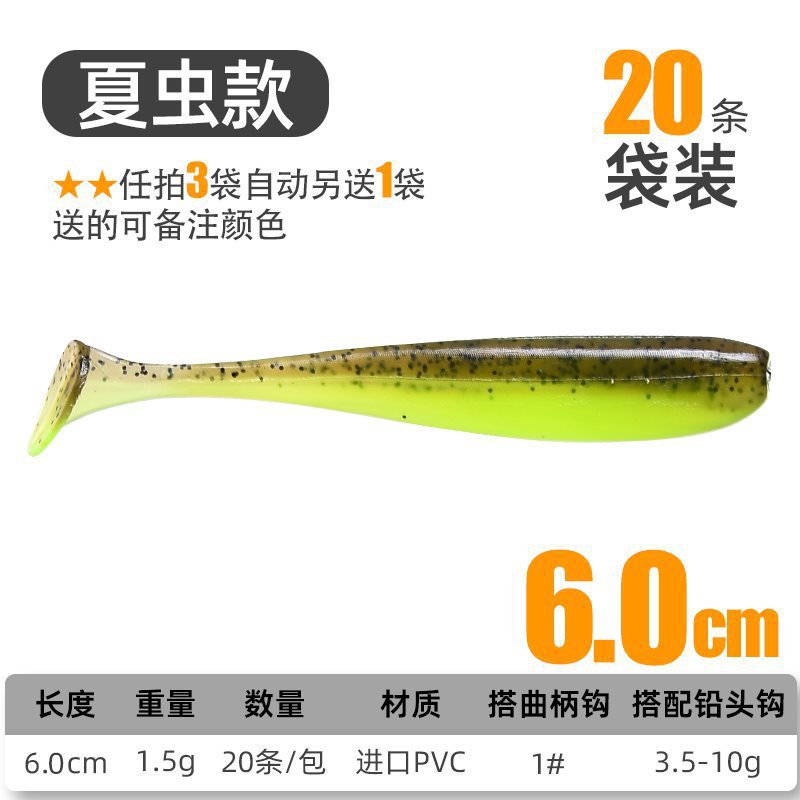 T-tailed fish Luya T-tailed tailed bait 세트 리드 후크 리버스 낚시 느린 침몰 가짜 미끼베이스 만다린 물고기 부리 텍사스 작은 부드러운 벌레스토어 가기