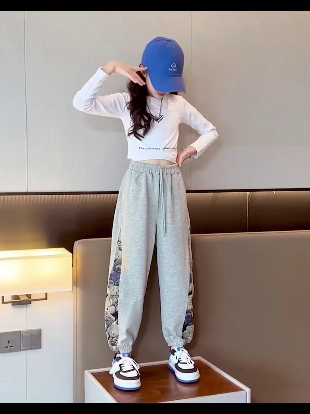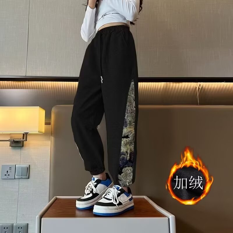 소녀 바지 가을과 겨울 2024 새로운 어린이 양털 포장 바지 큰 어린이와 소녀 유행 스포츠 캐주얼 바지스토어 가기