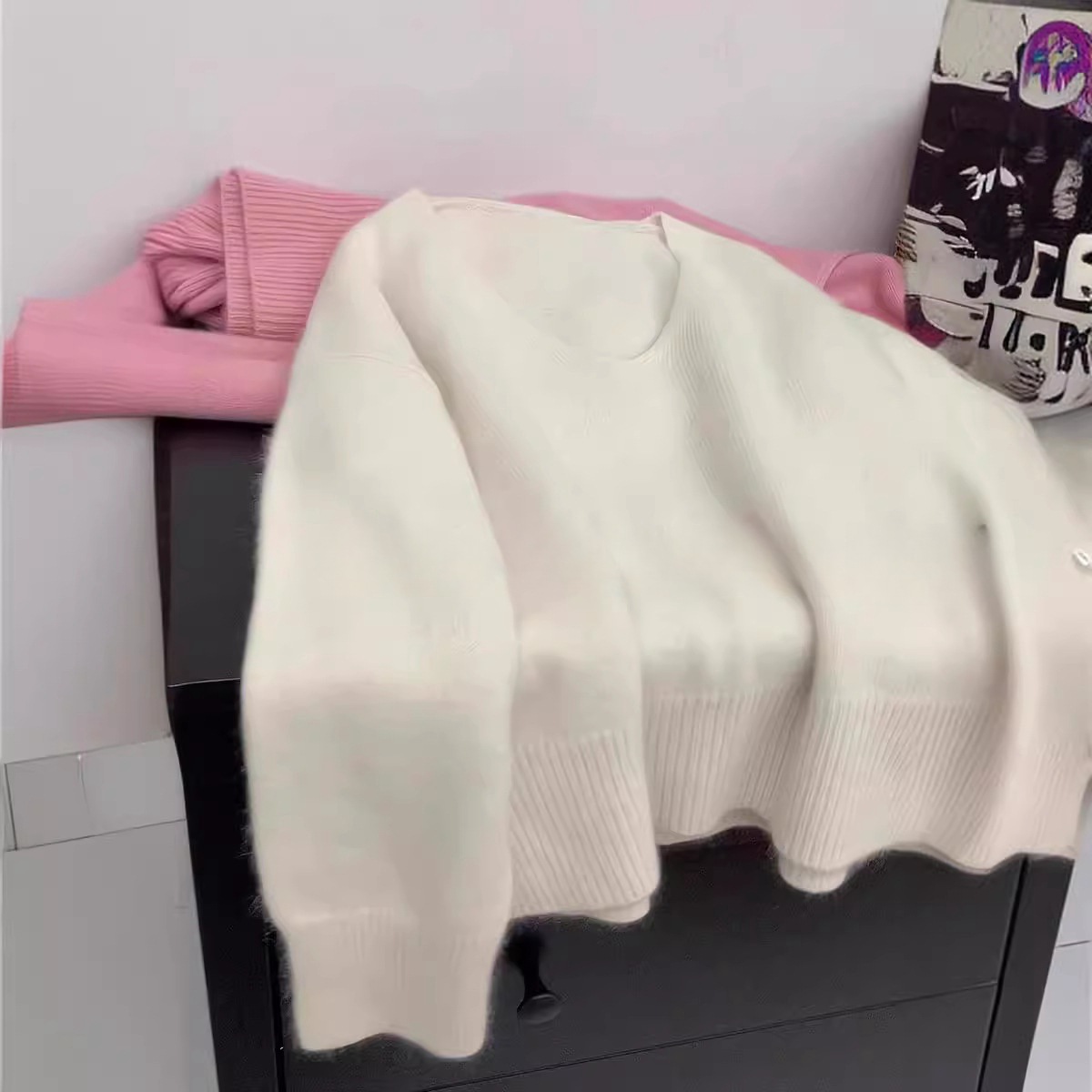 KANING 부드러운 스타일의 나이를 줄여주는 브이넥 풀오버 니트 여성용 2025 가을 겨울 신상 루즈하고 여유로운 이너웨어 스웨터스토어 가기