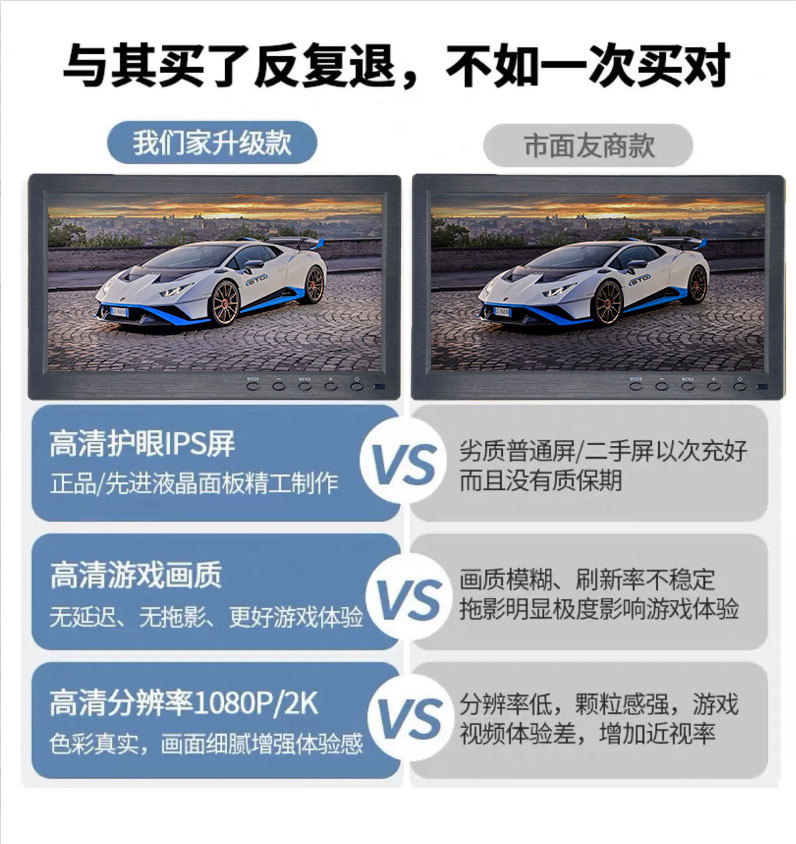 국경 10.1 인치 자동차 AV 모니터 HDMI HD 모니터 BNC LCD 컴퓨터 모니터 VGA 휴대용스토어 가기