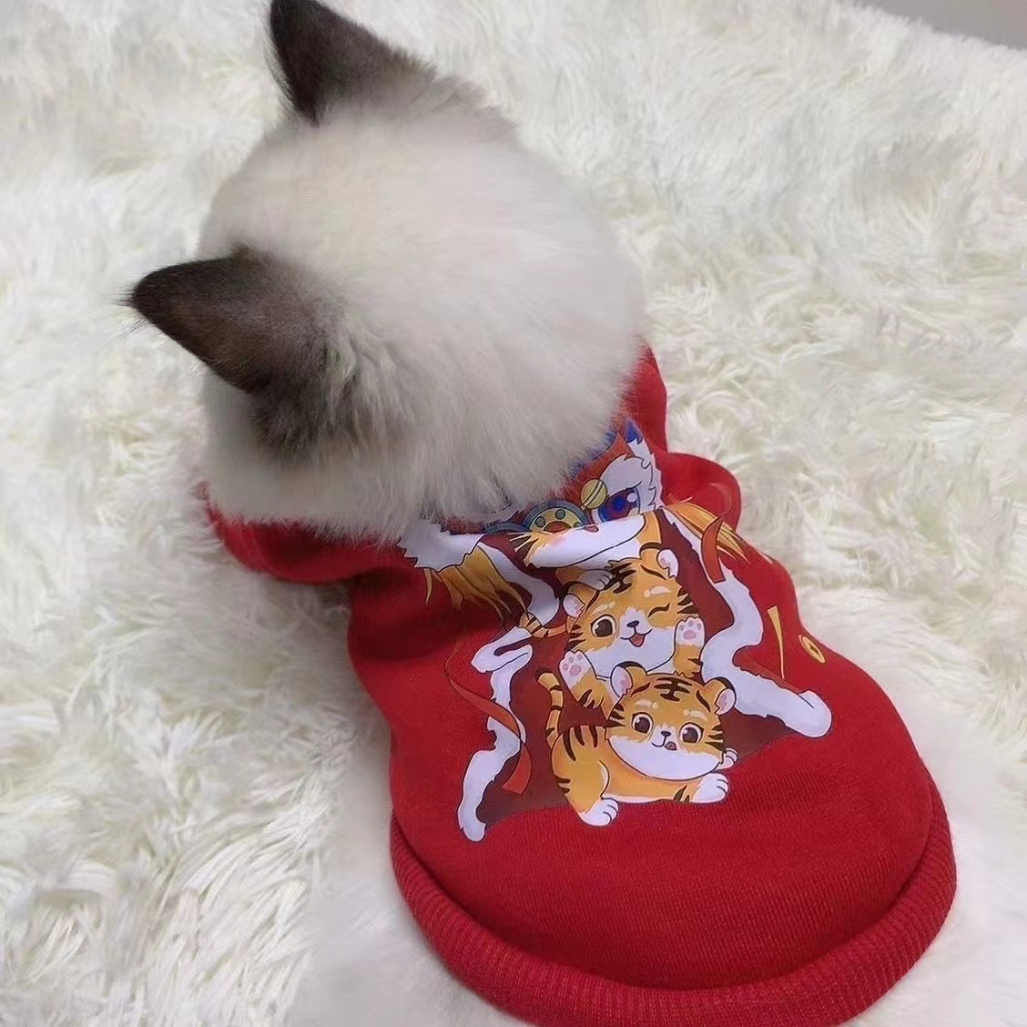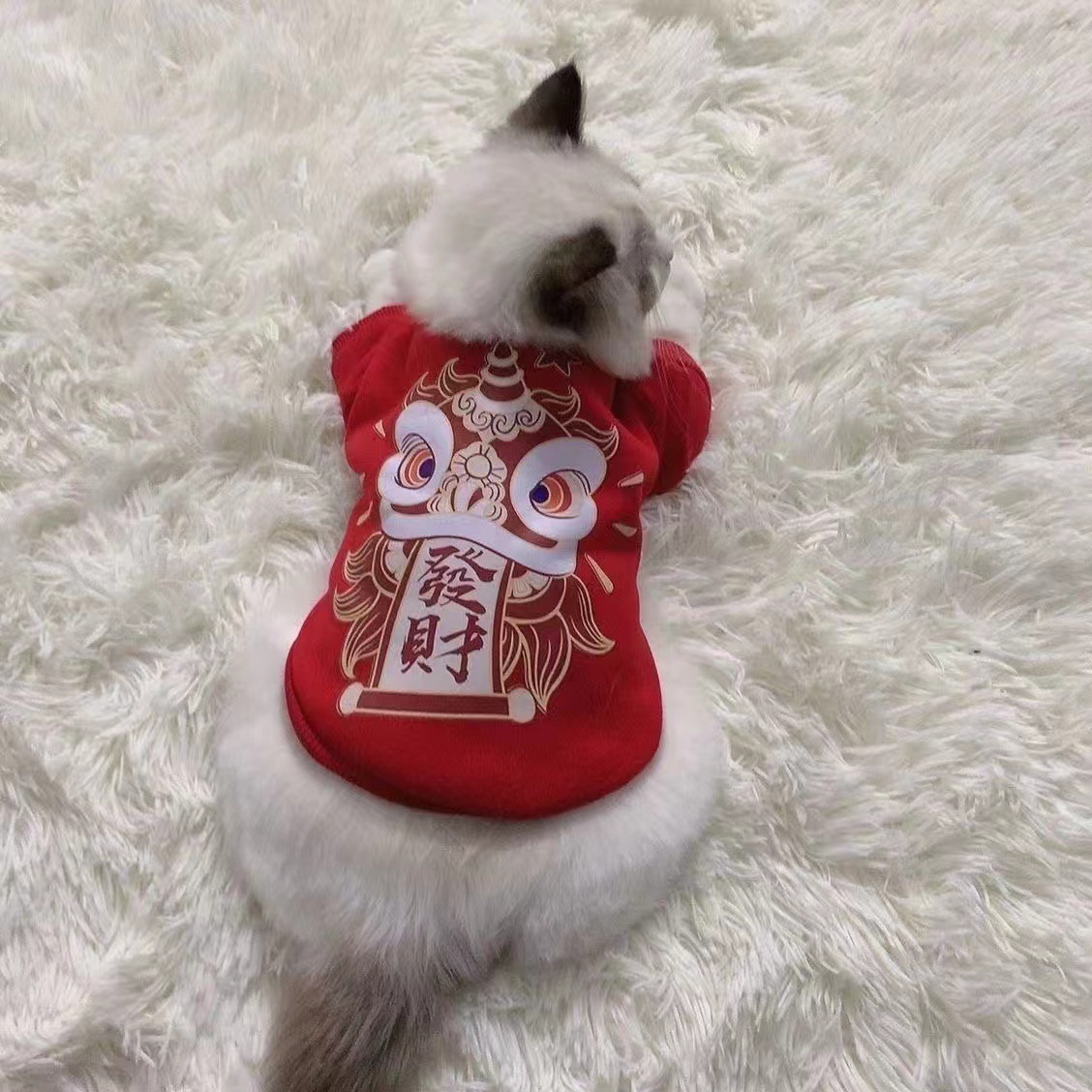 새해 고양이 옷 귀여운 가을과 겨울 얇은 꼭두각시 고양이 아기 머리 방지 개 옷 제조 업체 세대