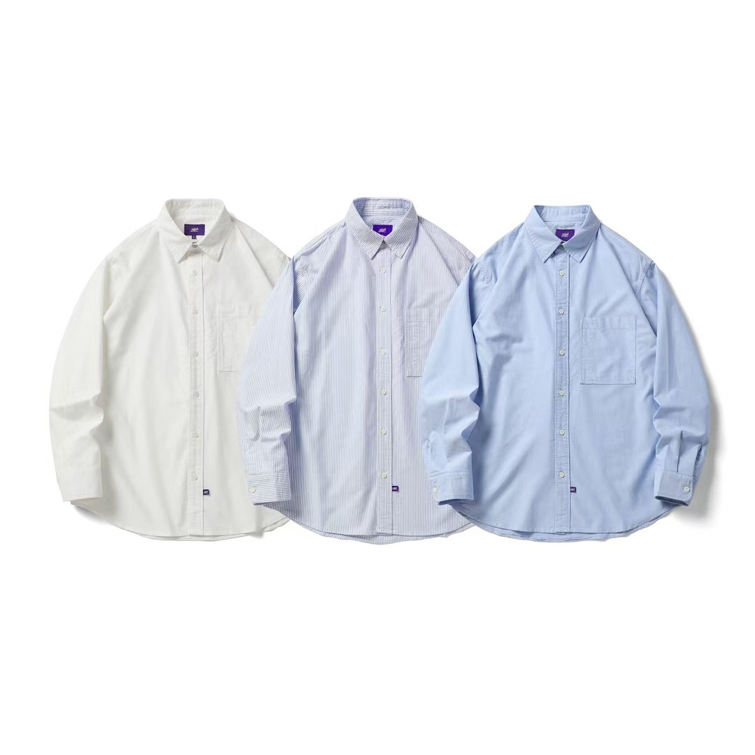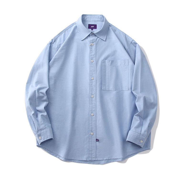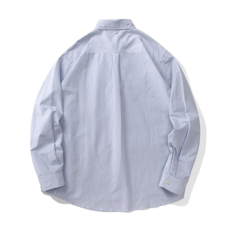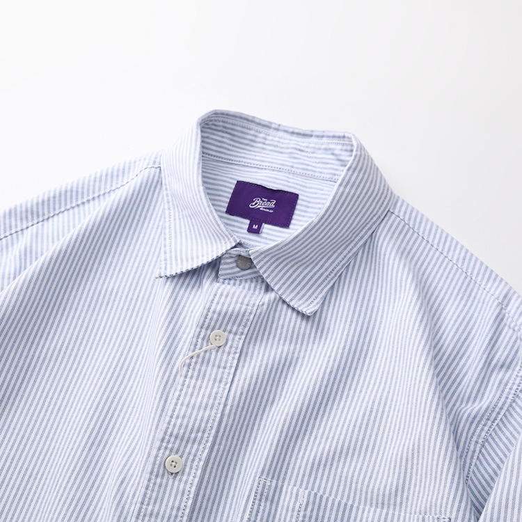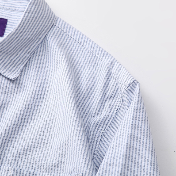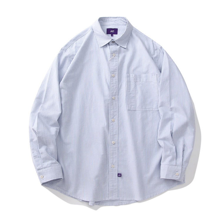 일본 도시 소년 순면 옥스포드 느슨한 보라색 라벨 샤웬 르 단색 수직 줄무늬 긴 소매 셔츠 남자의 순면스토어 가기