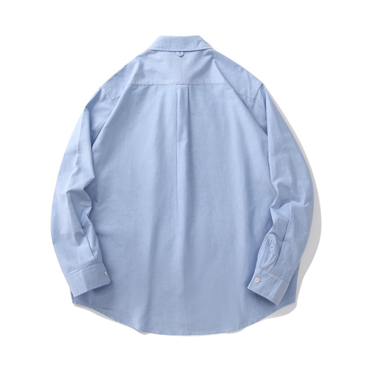 일본 도시 소년 순면 옥스포드 느슨한 보라색 라벨 샤웬 르 단색 수직 줄무늬 긴 소매 셔츠 남자의 순면
